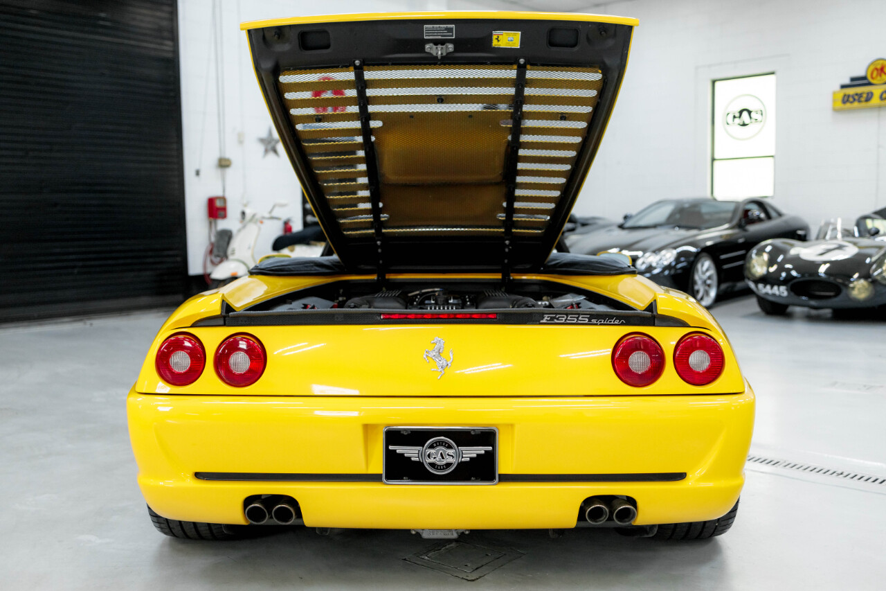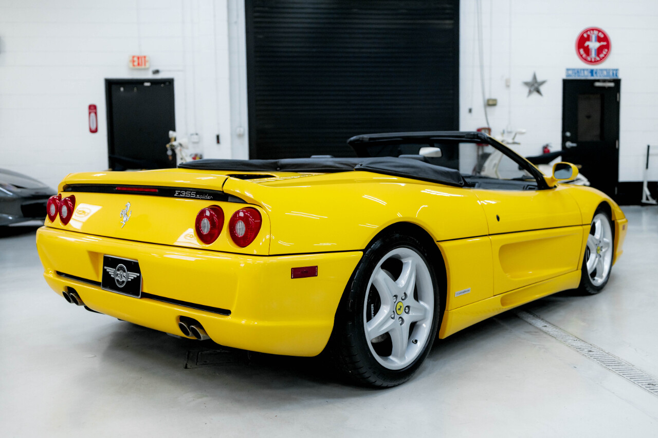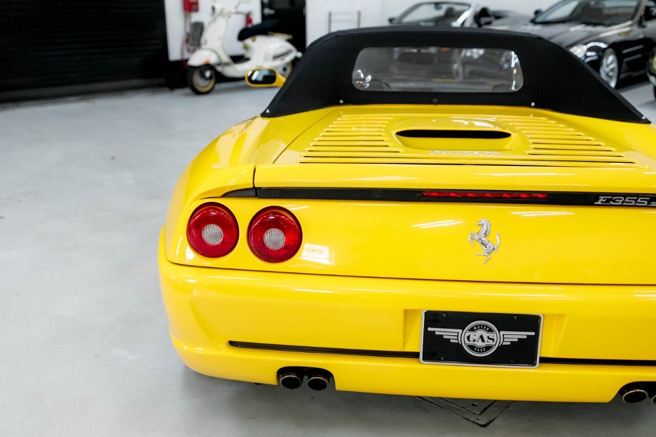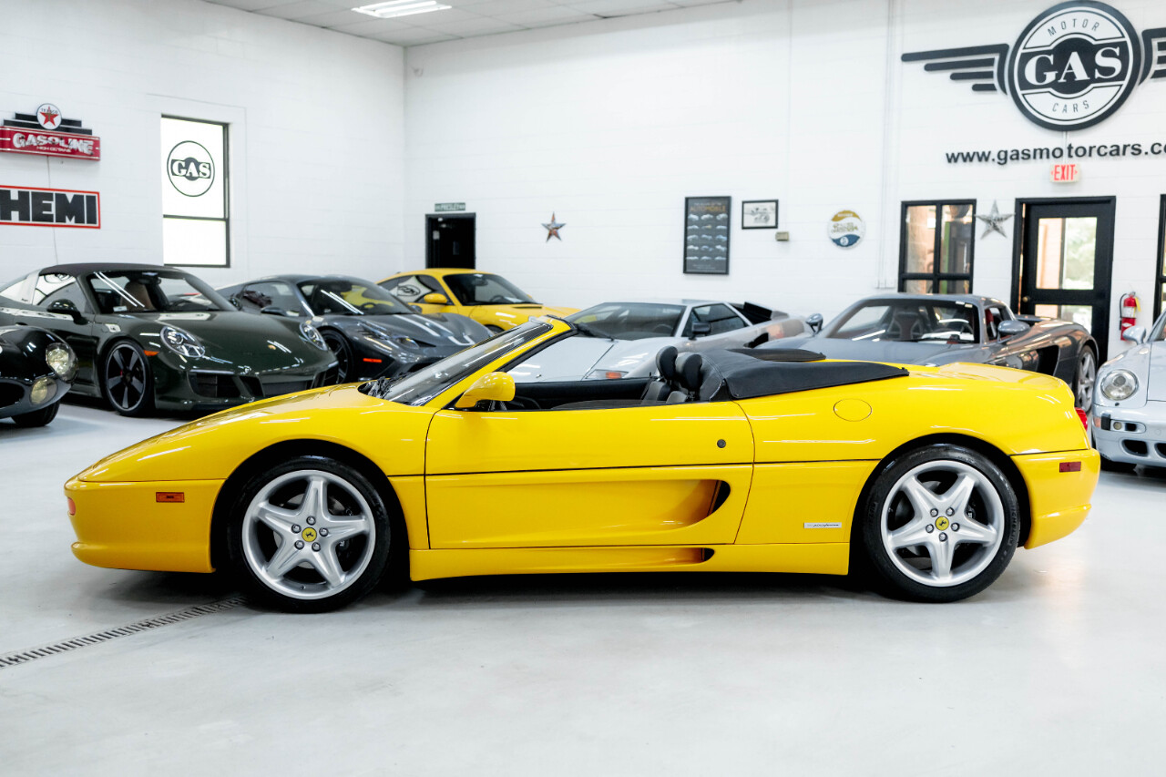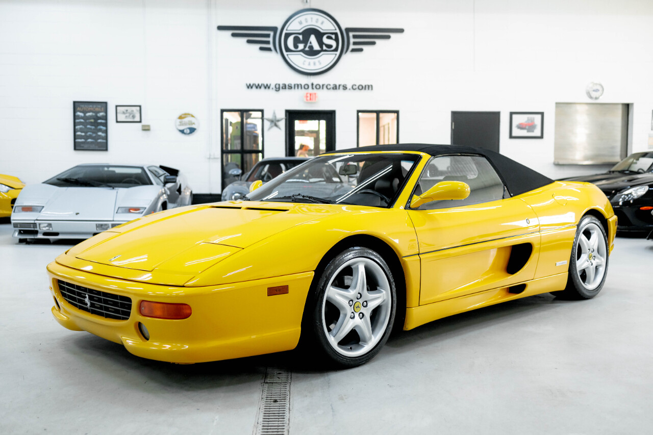 FULL HIGH RESOLUTION PHOTOS AND DETAILED DESCRIPTION ON YOU HAVE A VEHICLE YOU ARE LOOKING TO SELL, PLEASE CALL US AT 770-769-1398WE SHOW VEHICLES BY APPOINTMENT ONLY. PLEASE CALL TO SCHEDULE AN APPOINTMENT IN ORDER TO VIEW A LISTING IN PERSON.NEW ARRIVAL! RECENT ENGINE OUT TIMING BELT SERVICE PERFORMED IN DECEMBER 2023! HIGHLY ORIGINAL, LOW-MILE FERRARI F355 SPIDER WITH A GATED 6 SPEED MANUAL IN AMAZING SHAPE!! NEW MICHILEN TIRES INSTALLED LESS THAN 500 MILES AGO! HAS PPF ON FRONT CLIP AND HIGH IMPACT AREAS! ALWAYS SERVICED ON TIME, BEAUTIFUL CAR INSIDE AND OUT. RUNS AND DRIVES AMAZING! COMES WITH BOOKS, MANUALS, ORIGINAL TOOL KIT, CAR COVER, SERVICE RECORDS, AND ORIGINAL WINDOW STICKER!EXTERIOR IS FINISHED INGIALLO MODENA WITHBLACKLEATHER INTERIOR.FACTORY OPTIONS AND FEATURES INCLUDE:3.5L 5V V8 ENGINE6-SPEED GATED MANUAL TRANSMISSIONREAR WHEEL DRIVEUPGRADED SONY HEAD UNITBLACK POWER-ASSISTED SOFT TOPPOWER WINDOWS18 5 SPOKE MAGNESIUM WHEELSPOP UP HEADLAMPSPOWER RACK AND PINION STEERING SYSTEMTUNED FREE FLOW EXHAUSTLIMITED SLIP DIFFERENTIALFOUR WHEEL VENTILATED DISC BRAKESAND MORE.GAS MOTORCARS IS A FAMILY OWNED AND OPERATED CAR DEALERSHIP LOCATED IN MARIETTA, GA. WE ONLY SELL VEHICLES OF THE HIGHEST QUALITY. WE SHIP VEHICLES WORLDWIDE AT THE BUYER'S EXPENSE. WE TAKE CONSIGNMENTS AS WELL AS TRADES.WE SHOW VEHICLES BY APPOINTMENT ONLY.PLEASE CALL AHEAD TO SCHEDULE A DATE AND TIME IN ORDER TO VIEW A LISTING IN PERSON.CONNECT WITH US ON INSTAGRAM @GASMOTORCARSIt is the customers sole responsibility to verify the existence and condition of any equipment listed. Neither the dealership nor DealerCarSearch is responsible for misprints on prices or equipment. It is the customers sole responsibility to verify the accuracy of the prices with the dealer, including the pricing for all added accessories. Visit Gas Motorcars online at to see more pictures of this vehicle or call us at770-769-1398 today to schedule your test drive.
