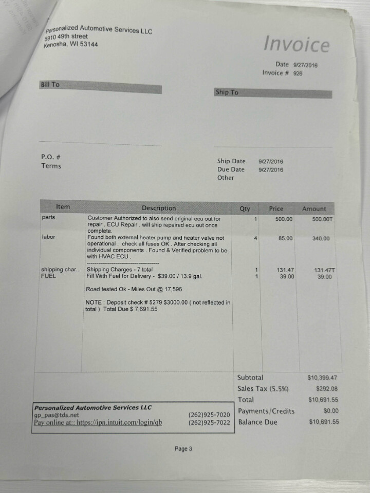 Deposit: We require a $500 deposit within 48 hours of winning the auction. Please call to make arrangements for payment.