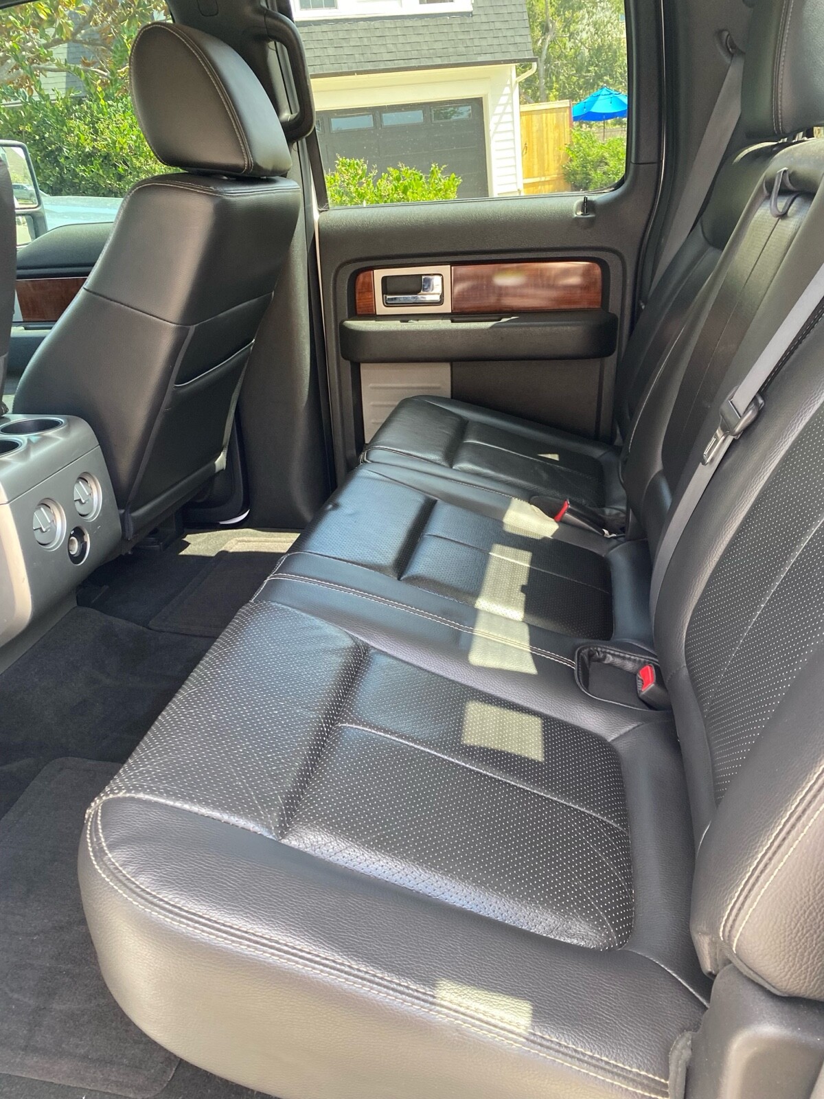 INTERIOR: (Lariat Preferred Package 508A) Heated/ventilated Black leather Trimmed Captain Chairs, Backup Camera, Dual AC, Power windows/seats, Remote Keyless Entry, Tow Package, BOSE Sound System, SYNC, Bluetooth, Towing Mirrors