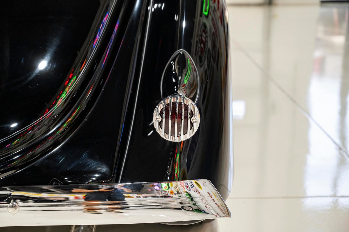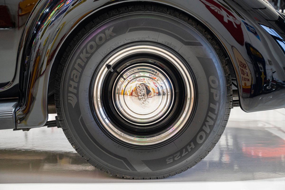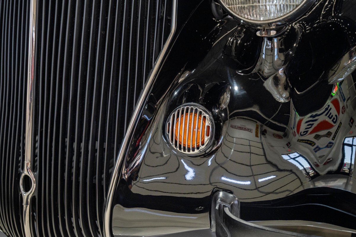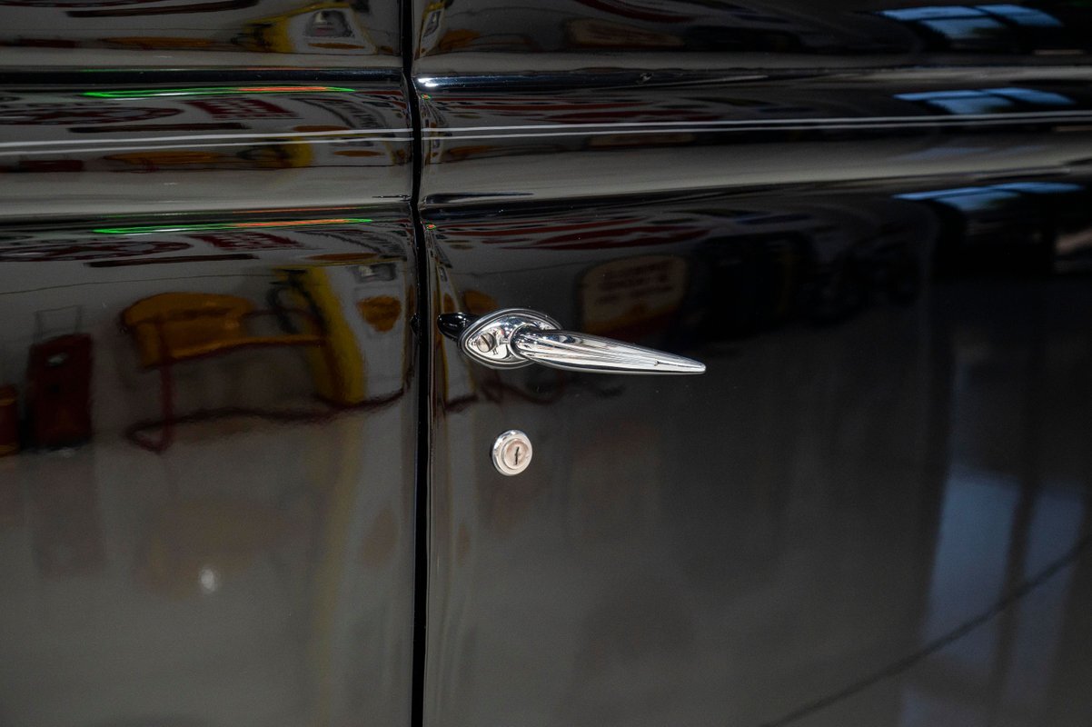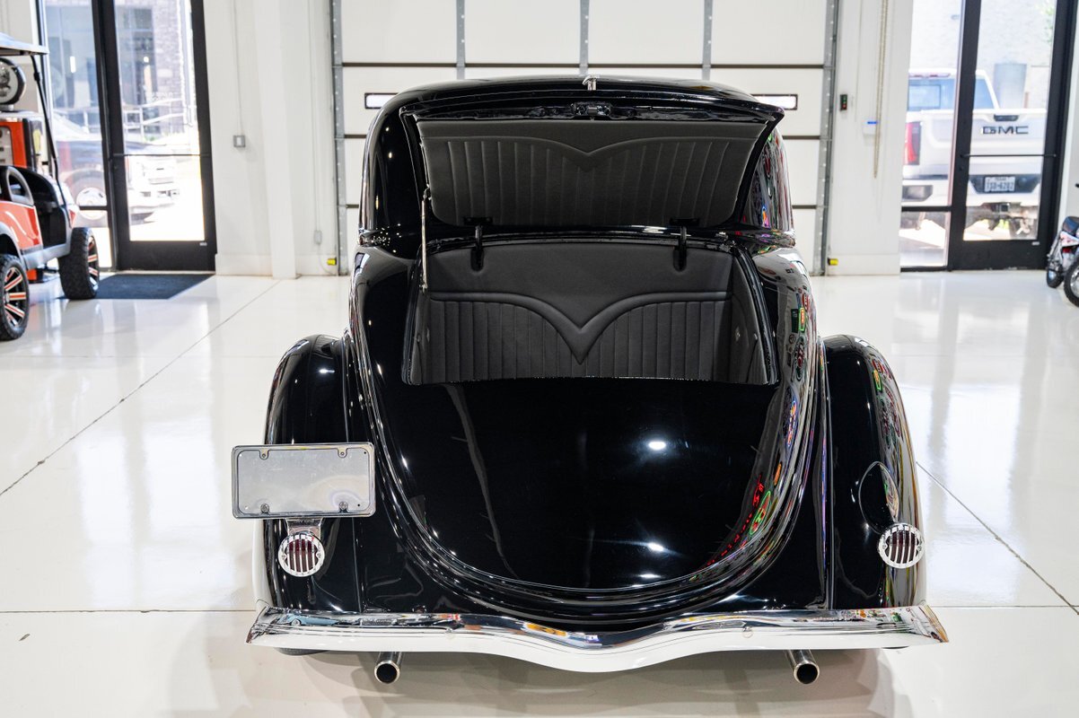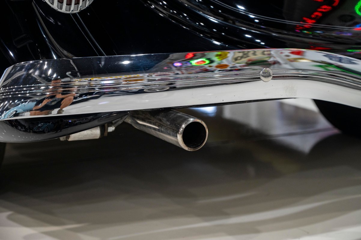 Finished in classic black exterior with new gray leather seats this recent restoration features tastefull styling throughout. Showcasing this build is a smooth-running 350 Chevy V-8, automatic, rack & pinion steering, and a host of engine details that are hallmarks of the best street rods. The care in restoration is evident everywhere, from the chromed alternator, polished valve covers, overflow tank and master cylinder to the chromed steering column with a "banjo" steering wheel. Topping it all off are modern VDO gauges, and steel wheels with early Ford hubcaps to complete the modern retro look.
