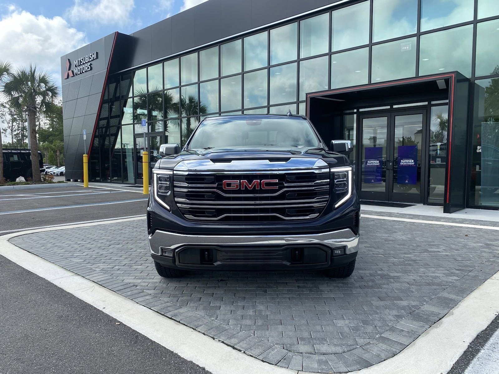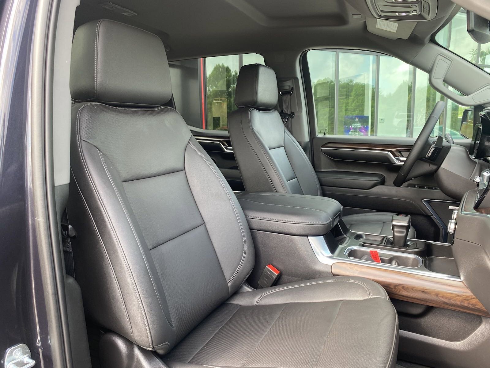 Sierra 1500 SLT, 4D Crew Cab, EcoTec3 5.3L V8, 10-Speed Automatic, 4WD, Titanium Rush Metallic, Jet Black Leather, 10-Way Power Driver Seat Adjuster w/Lumbar, 10-Way Power Passenger Seat Adjuster w/Lumbar, 120-Volt Bed Mounted Power Outlet, 120-Volt Instrument Panel Power Outlet, 170 Amp Alternator, 2 Charge/Data USB Ports, 2 Charge/Data USB Ports Inside Center Console, 2 Type-C Charge-Only Rear USB Ports, 20" Polished Aluminum Wheels, 3.23 Rear Axle Ratio, 4-Wheel Disc Brakes, 6 Speakers, 6-Speaker Audio System Feature, ABS brakes, Air Conditioning, All-Weather Floor Liner (LPO), Alloy wheels, AM/FM radio, Apple CarPlay/Android Auto, Auto High-beam Headlights, Auto-dimming door mirrors, Auto-dimming Rear-View mirror, Auto-Locking Rear Differential, Automatic Emergency Braking, Automatic temperature control, Auxiliary External Transmission Oil Cooler, Brake assist, Buckle to Drive, Bumpers: chrome, Chrome Header & Chrome Grille Insert Bars, Chrome Wheel To Wheel Assist Steps, Color-Keyed Carpeting Floor Covering, Compass, Deep-Tinted Glass, Delay-off headlights, Driver door bin, Driver Memory, Driver vanity mirror, Dual Exhaust System, Dual front impact airbags, Dual front side impact airbags, Electric Rear-Window Defogger, Electrical Steering Column Lock, Electronic Precision Shift, Electronic Stability Control, Emergency communication system: OnStar and GMC connected services capable, Floor-Mounted Center Console, Following Distance Indicator, Forward Collision Alert, Front 40/20/40 Split-Bench Seat, Front anti-roll bar, Front Bucket Seats, Front Center Armrest w/Storage, Front dual zone A/C, Front fog lights, Front Frame-Mounted Black Recovery Hooks, Front Pedestrian Braking, Front Rainsensing Wipers, Front reading lights, Front wheel independent suspension, Fully automatic headlights, GMC Connected Access Capable, HD Rear Vision Camera, Heated door mirrors, Heated Driver & Front Outboard Passenger Seating, Heated front seats, Heated steering wheel, Heavy-Duty Air Filter, High Capacity Suspension Package, Hill Descent Control, Hitch Guidance, Illuminated entry, IntelliBeam Automatic High Beam On/Off, Keyless Open & Start, Lane Keep Assist w/Lane Departure Warning, LED Cargo Area Lighting, Low tire pressure warning, Manual Tilt-Wheel & Telescoping Steering Column, Memory seat, Navigation System, Not Equipped w/Steering Column Lock, Occupant sensing airbag, Off-Road Suspension, OnStar & GMC Connected Services Capable, Outside temperature display, Overhead airbag, Overhead console, Panic alarm, Passenger door bin, Passenger vanity mirror, Perf Leather-Appointed Front Outboard Seat Trim, Perimeter Lighting, Power Door Locks, Power door mirrors, Power driver seat, Power Front Passenger Windows w/Express Up/Down, Power Front Windows w/Driver Express Up/Down, Power passenger seat, Power Rake & Telescoping Steering Column, Power Rear Windows w/Express Down, Power steering, Power windows, Preferred Equipment Group 4SA, Premium audio system: GMC Infotainment System, Premium Bose 7-Speaker Sound System, Push Button Start, Radio data system, Radio: Premium GMC Infotainment Audio System, Rain sensing wipers, Rear reading lights, Rear seat center armrest, Rear step bumper, Rear Wheelhouse Liners, Rear window defroster, Remote keyless entry, Remote Vehicle Starter System, Security system, SiriusXM w/360L, SLT Convenience Package, SLT Premium Package, Speed control, Speed-sensing steering, Split folding rear seat, Spray-On Pickup Bed Liner w/GMC Logo, Standard Suspension Package, Steering Wheel Audio Controls, Steering wheel mounted audio controls, Tachometer, Telescoping steering wheel, Theft Deterrent System (Unauthorized Entry), Tilt steering wheel, Traction control, Trailering Package, Trip computer, Variably intermittent wipers, Ventilated Driver & Front Passenger Seats, Voltmeter, Wi-Fi Hotspot Capable, Wireless Charging, Wireless Phone Projection, X31 Hard Badge, X31 Off-Road & Protection Package, X31 Off-Road Package, Sierra 15
