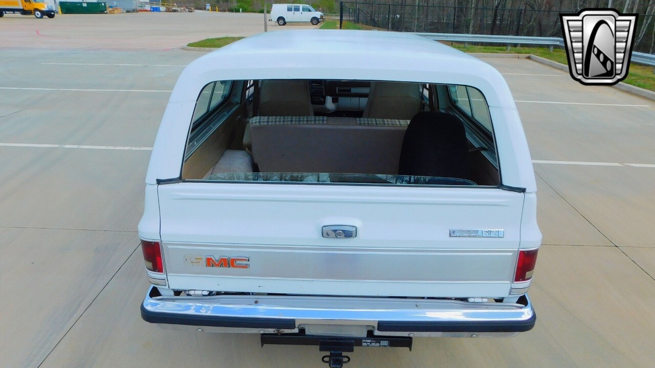 Check out this 1982 GMC Jimmy Diesel! From the outside, this GMC Jimmy catches the eye with its clean white exterior that offsets the tan cloth interior, giving it a classic yet stylish appeal.