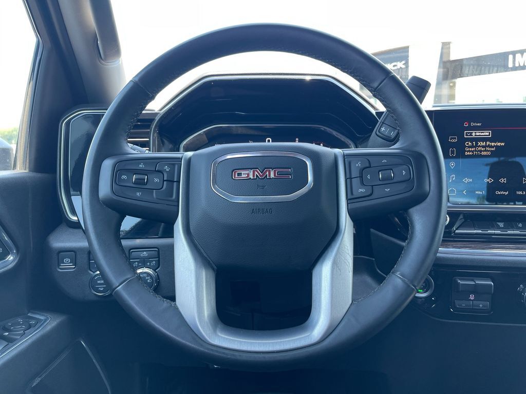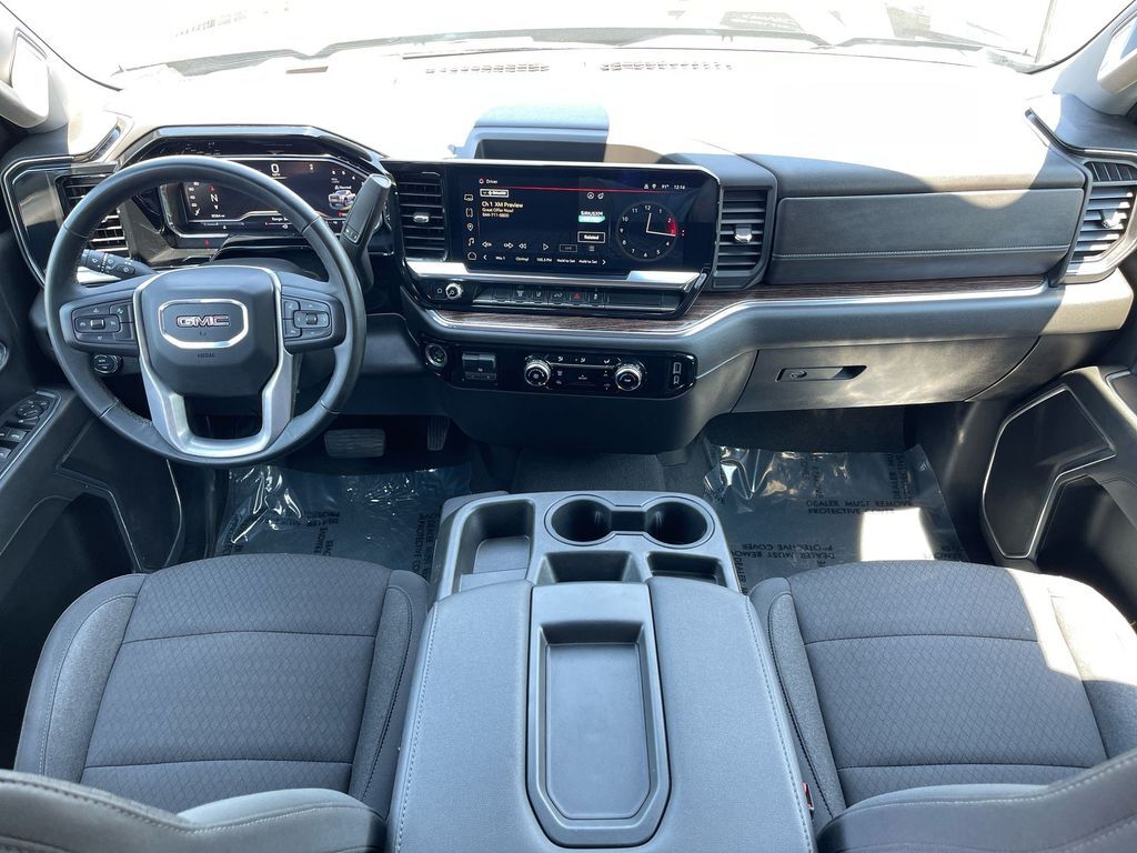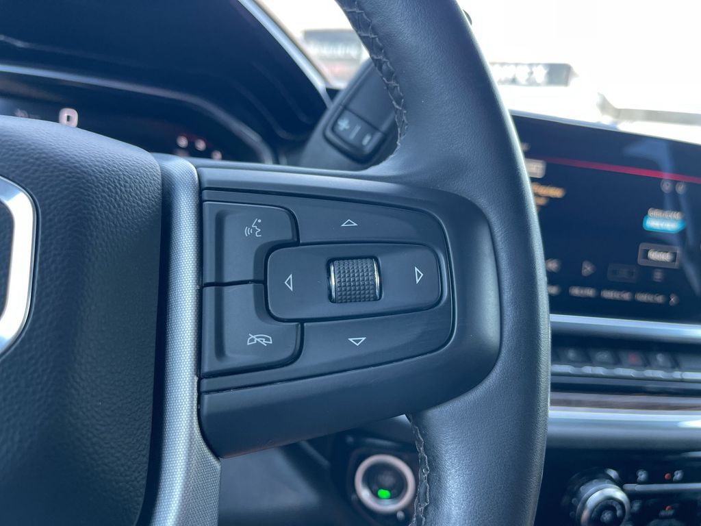 THIS VEHICLE INCLUDES THE FOLLOWING FEATURES AND OPTIONS: Suspension Package, 10-Speed Automatic, 4WD, Jet Black w/Cloth Seat Trim, 17 Machined Aluminum Wheels, 2 Charge/Data USB Ports, 2-Speed Electronic Shift Transfer Case, 3.73 Rear Axle Ratio, 4-Way Manual Driver Seat Adjuster, 4-Way Manual Passenger Seat Adjuster, 4-Wheel Disc Brakes, 6 Speakers, 6-Speaker Audio System Feature, ABS brakes, Air Conditioning, Alloy wheels, AM/FM radio: SiriusXM with 360L, Auto High-beam Headlights, Automatic Emergency Braking, Brake assist, Buckle to Drive, Bumpers: chrome, Chrome Surround Grille w/Chrome Insert Bars, Cloth Seat Trim, Compass, Cruise Control, Deep-Tinted Glass, Delay-off headlights, Driver door bin, Driver vanity mirror, Dual front impact airbags, Dual front side impact airbags, Electronic Stability Control, Following Distance Indicator, Forward Collision Alert, Front 40/20/40 Split-Bench Seats, Front anti-roll bar, Front Center Armrest w/Storage, Front Pedestrian Braking, Front reading lights, Front wheel independent suspension, Fully automatic headlights, GMC Connected Access Capable, Heated door mirrors, Heavy-Duty 80 Amp Battery, Illuminated entry, Integrated Trailer Brake Controller, IntelliBeam Automatic High Beam On/Off, Keyless Open & Start, Lane Departure Warning System, Low tire pressure warning, Manual Tilt Wheel Steering Column, Occupant sensing airbag, OnStar & GMC Connected Services Capable, Outside temperature display, Overhead airbag, Overhead console, Panic alarm, Passenger door bin, Passenger vanity mirror, Pickup Box, Power door mirrors, Power steering, Power windows, Push Button Start, Radio: AM/FM w/Premium GMC Infotainment System, Rear reading lights, Rear step bumper, Remote keyless entry, SiriusXM w/360L, Split folding rear seat, Steering Wheel Audio Controls, Steering wheel mounted audio controls, Tachometer, Tilt steering wheel, Traction control, Trip computer, Turn signal indicator mirrors, Variably intermittent wipers, Voltmeter, and Wireless Phone Projection.