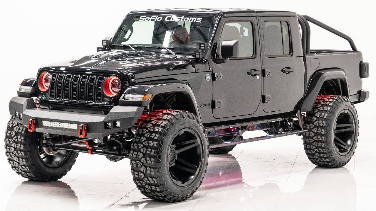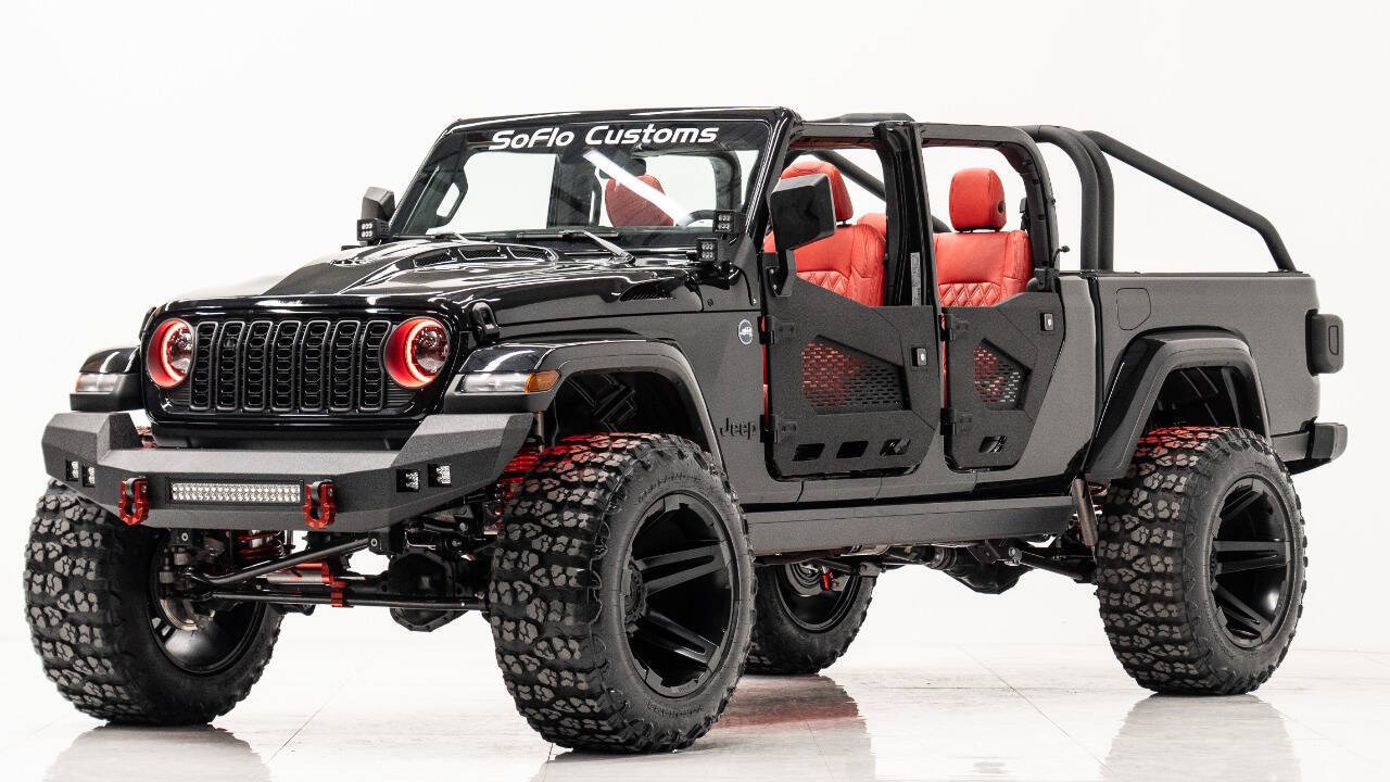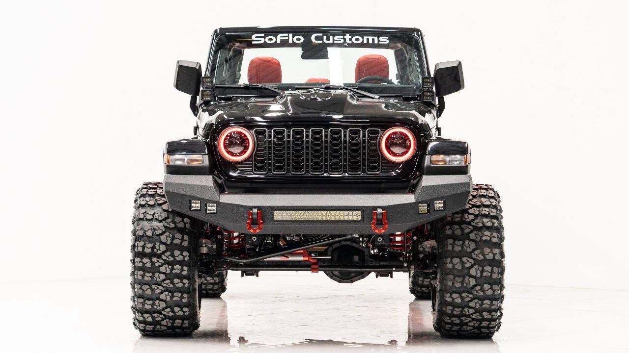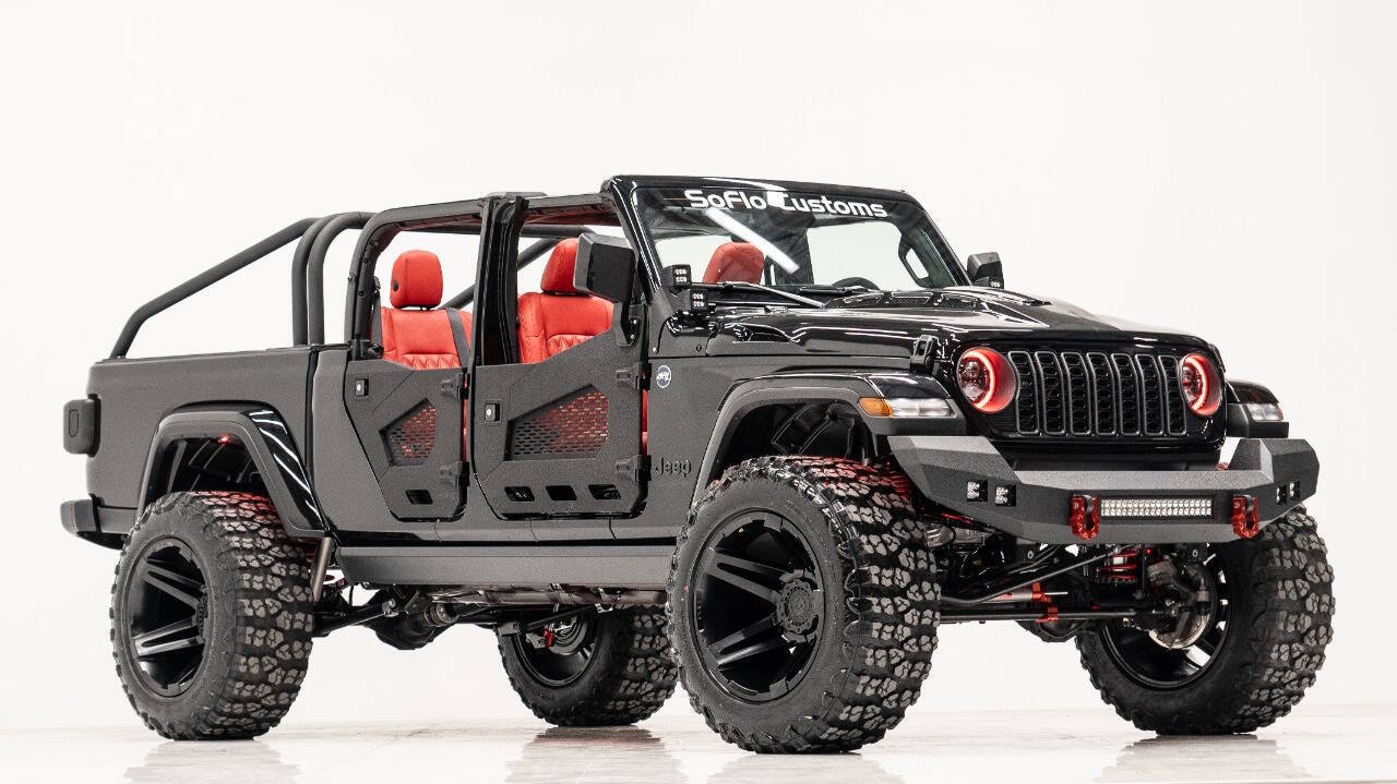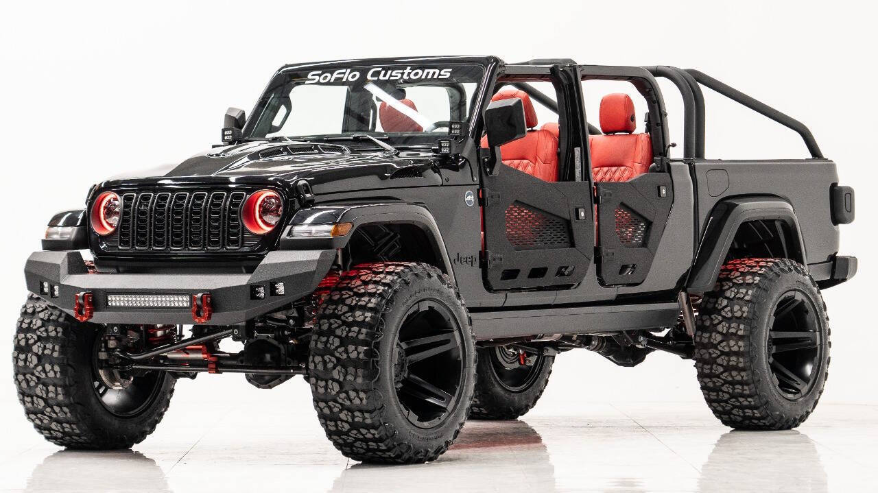 YEAR: 2024 TOP: Hardtop COLOR: High Gloss Black TRIM: SoFlo Custom LIFT: 4” TIRES: 38” RIMS: 22 Black Sfj HOOD: Predator Hood GRILL: Front Steel Bumper SIDESTEPS: Power Running Boards HEADLIGHTS: Halo SPECIAL FEATURES: Aluminum Rollcage Covered with Off Road Armor WEATHERPROOF INTERIOR: Red WHAT MAKES THIS TRUCK SPECIAL: Your Jeep Gladiator has arrived in style - featuring 22 Apoc bronze rims and red weatherproof interior. CALL US OR COME SEE THESE CUSTOM TRUCKS IN PERSON Location 1: 1430 W Broward, BLVD Fort Lauderdale, FL 33312 855-873-7632 Location 2: 2720 Okeechobee BLVD West Palm Beach, FL 33406 855-873-7632 NEW E-PURCHASE SYSTEM - Customers never have to leave the comfort of their home couch to purchase a SoFlo Jeeps or Apocalypse 6x6 truck. We offer online payment, financing and video walkarounds. We ship our trucks worldwide to any and every location. Have a trade-in? Not a problem at all, as WE ACCEPT TRADE-INS NATIONWIDE AND YOU NEVER PAY TO SHIP IT. We make buying and receiving your dream truck beyond simple.