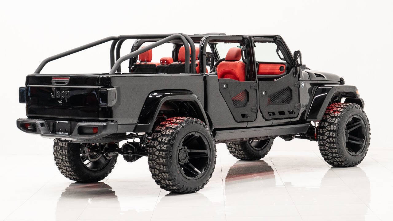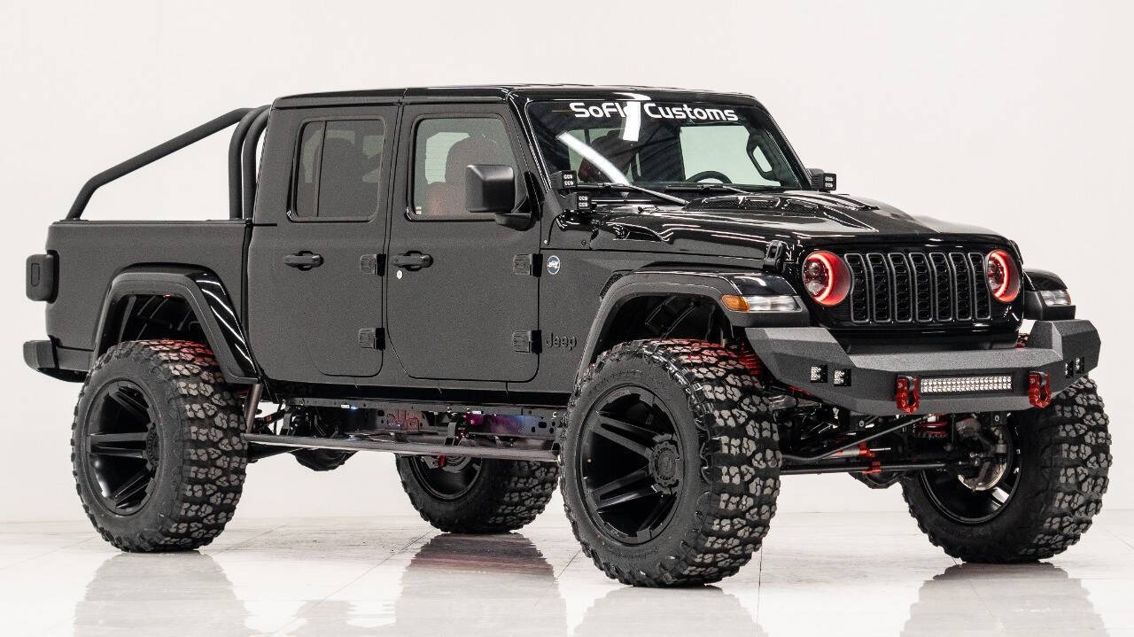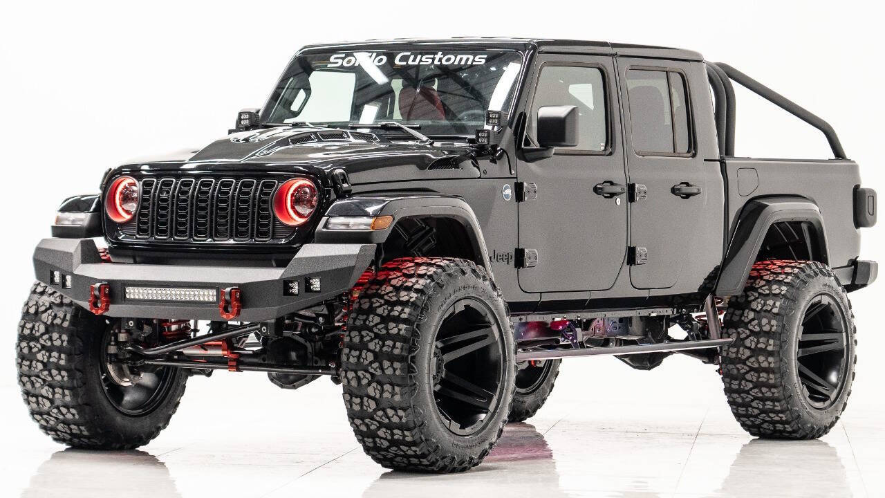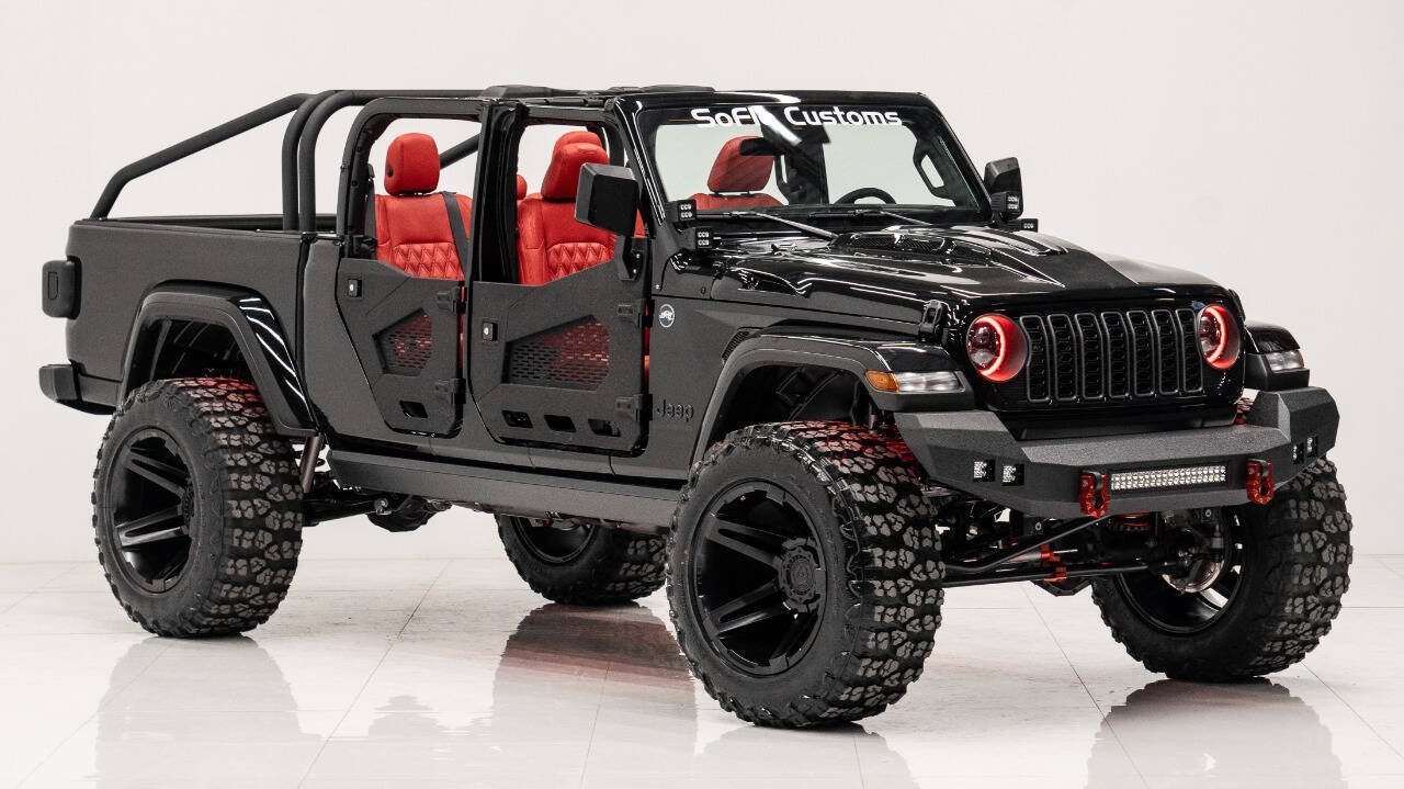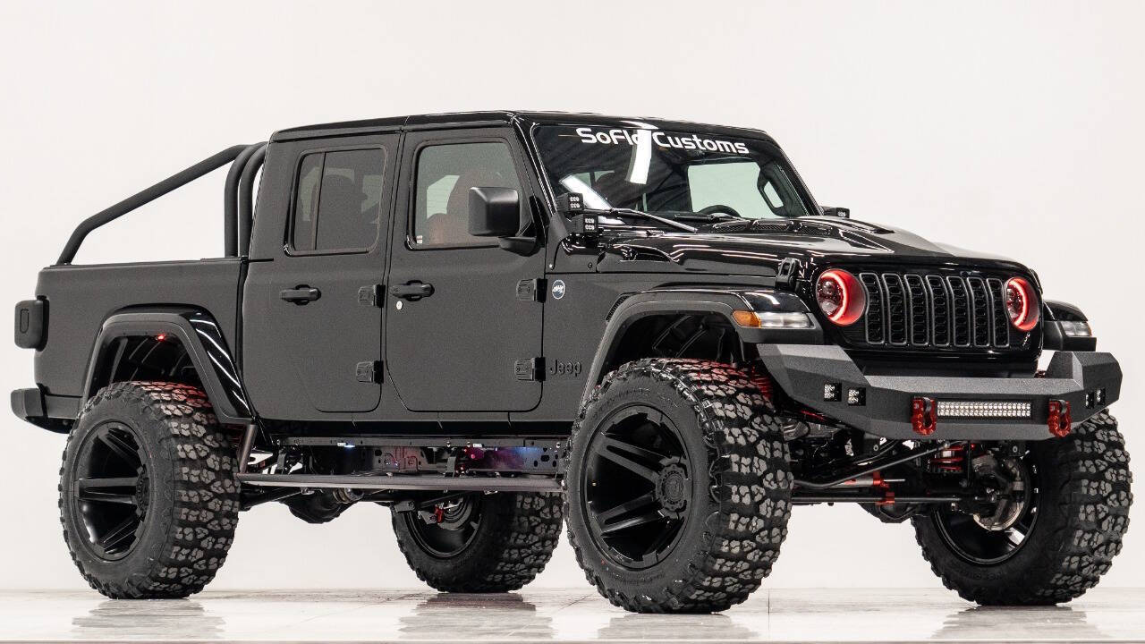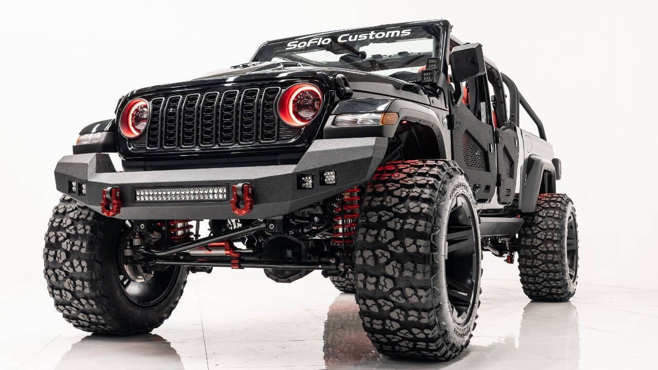YEAR: 2024 TOP: Hardtop COLOR: High Gloss Black TRIM: SoFlo Custom LIFT: 4” TIRES: 38” RIMS: 22 Black Sfj HOOD: Predator Hood GRILL: Front Steel Bumper SIDESTEPS: Power Running Boards HEADLIGHTS: Halo SPECIAL FEATURES: Aluminum Rollcage Covered with Off Road Armor WEATHERPROOF INTERIOR: Red WHAT MAKES THIS TRUCK SPECIAL: Your Jeep Gladiator has arrived in style - featuring 22 Apoc bronze rims and red weatherproof interior. CALL US OR COME SEE THESE CUSTOM TRUCKS IN PERSON Location 1: 1430 W Broward, BLVD Fort Lauderdale, FL 33312 855-873-7632 Location 2: 2720 Okeechobee BLVD West Palm Beach, FL 33406 855-873-7632 NEW E-PURCHASE SYSTEM - Customers never have to leave the comfort of their home couch to purchase a SoFlo Jeeps or Apocalypse 6x6 truck. We offer online payment, financing and video walkarounds. We ship our trucks worldwide to any and every location. Have a trade-in? Not a problem at all, as WE ACCEPT TRADE-INS NATIONWIDE AND YOU NEVER PAY TO SHIP IT. We make buying and receiving your dream truck beyond simple.