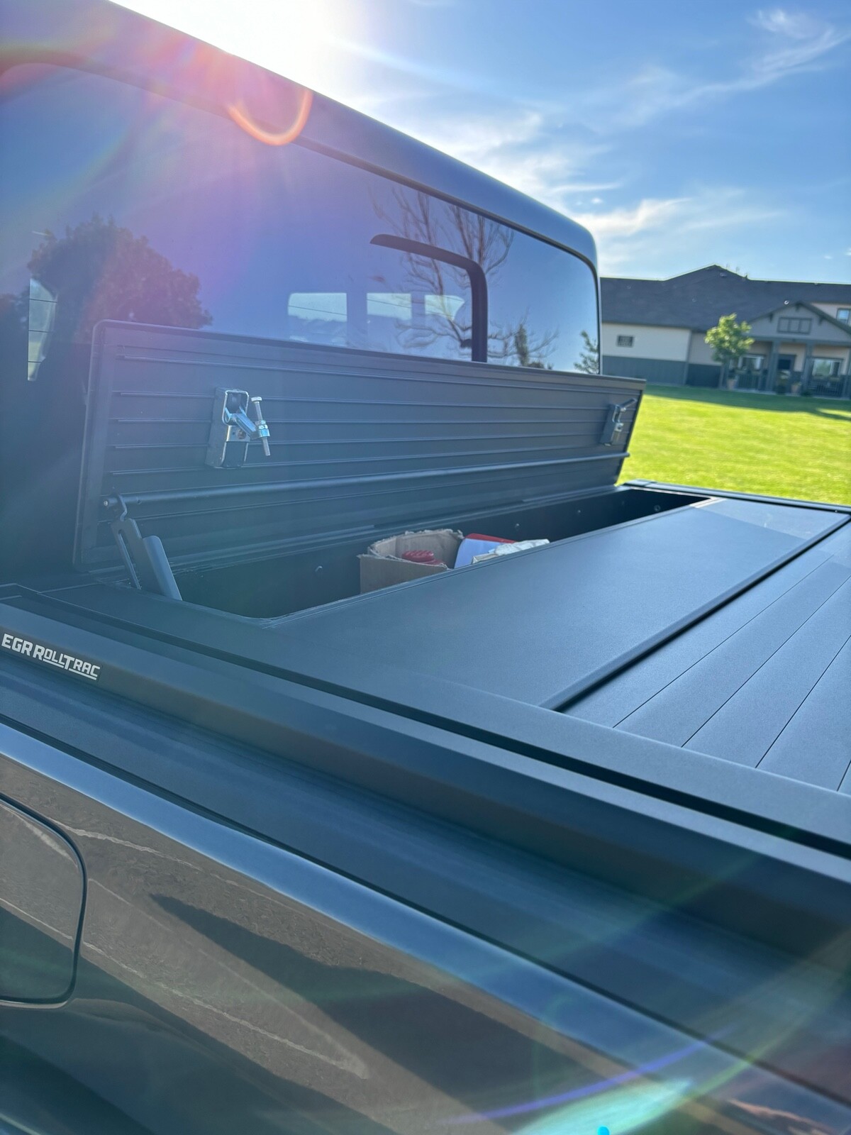 EGR Electronic Bed cover with track system and tool box storage in front