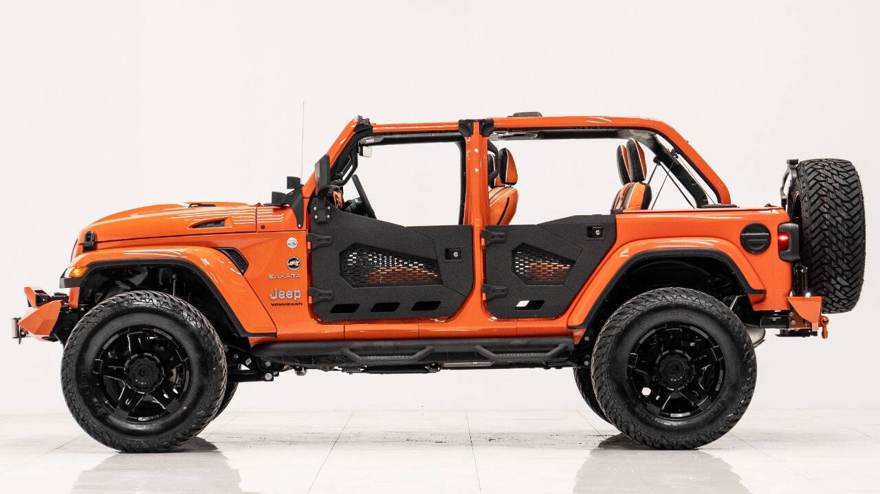 YEAR: 2023 COLOR: High Gloss Punkin' (Rare Color) TRIM: Sahara LIFT: 3.5” TIRES: 37” Fortune RIMS: 20” Black SFJ HOOD: Raider GRILL: Colormatched Stubby Bumper with Punkin' Color Match SIDESTEPS: Steel HEADLIGHTS: Color Changing Halo SPECIAL FEATURES: Hardtop, LED Cube Lights, Rear Steel Color Matched Bumper WEATHERPROOF INTERIOR: Cheetos (Black with Orange Inserts, White Stitch) WHAT MAKES THIS TRUCK SPECIAL: The high gloss orange exterior blends amazingly with the Cheetos interior to create a stunner. The color-matching front and rear bumper add an extra layer of style. CALL US OR COME SEE THESE CUSTOM TRUCKS IN PERSON Location 1: 1430 W Broward, BLVD Fort Lauderdale, FL 33312 855-873-7632 Location 2: 2720 Okeechobee BLVD West Palm Beach, FL 33406 855-873-7632 NEW E-PURCHASE SYSTEM - Customers never have to leave the comfort of their home couch to purchase a SoFlo Jeeps or Apocalypse 6x6 truck. We offer online payment, financing and video walkarounds. We ship our trucks worldwide to any and every location. Have a trade-in? Not a problem at all, as WE ACCEPT TRADE-INS NATIONWIDE AND YOU NEVER PAY TO SHIP IT. We make buying and receiving your dream truck beyond simple. ****ALL PIPE DOORS ARE EXTRA AND NOT INCLUDED IN PRICE OF THE TRUCK****