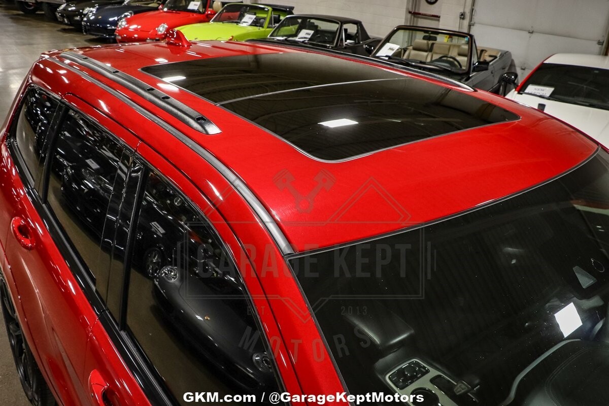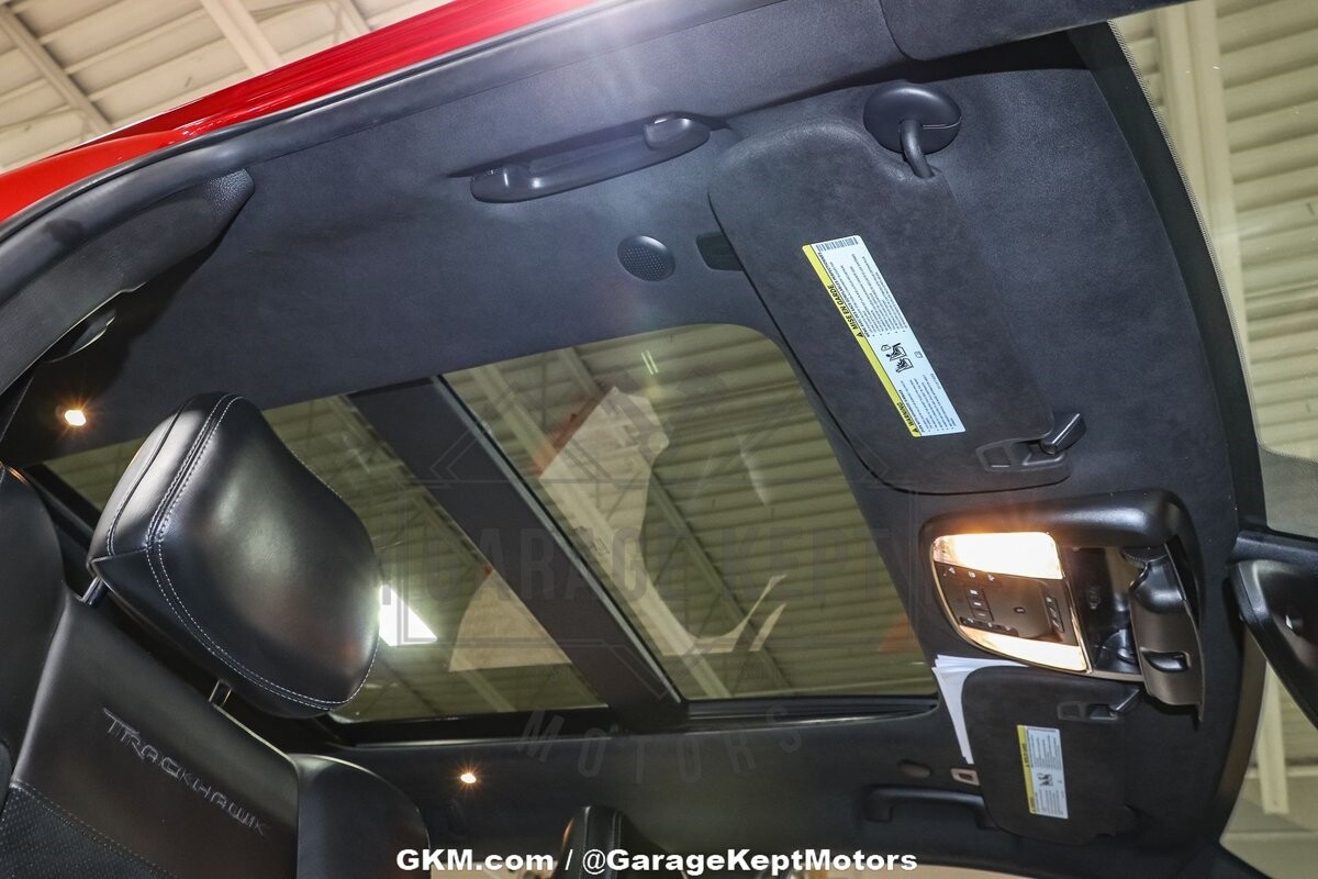 Step inside the Trackhawk, and you'll find a world of refined elegance. The dual-pane panoramic roof bathes the meticulously crafted alcantara interior in natural light, creating a luxurious ambiance. Every detail is thoughtfully designed to elevate the driving experience, blending comfort and style seamlessly. Whether you're embarking on a cross-country journey or navigating the urban jungle, the Trackhawk offers an unparalleled level of sophistication.
