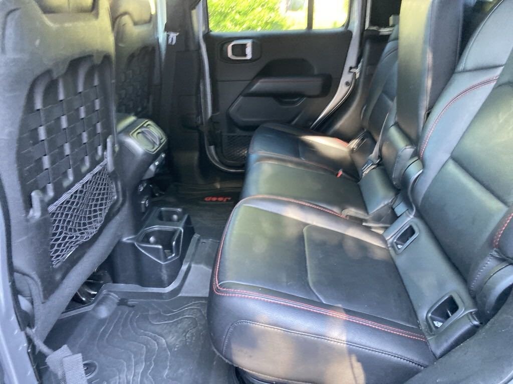 Certification Program Details: Southern Certified Clean CARFAX. Certified. Billet Silver Metallic Clearcoat 2020 Jeep Gladiator Rubicon 4WD 8-Speed Automatic 3.6L V6 24V VVT AWD/4WD, ALLOY WHEELS, BACKUP CAMERA, BLUETOOTH, HEAT PACKAGE, LEATHER SEATS, NAVIGATION SYSTEM, POWER PACKAGE, PREMIUM PACKAGE, KEYLESS ENTRY, NAVIGATION, APPLE ANDROID CARPLAY, PUSH BUTTON START, 1-Year SiriusXM Guardian Trial, 4-Wheel Disc Brakes, 5-Year SiriusXM Traffic Service, 5-Year SiriusXM Travel Link Service, 8 Speakers, 8.4 Radio & Premium Audio Group, 97 mph Maximum Speed Calibration, ABS brakes, Air Conditioning, Alpine Premium Audio System, AM/FM radio: SiriusXM, Apple CarPlay/Android Auto, Auto-Dimming Rear-View Mirror, Automatic temperature control, Blind Spot & Cross Path Detection, Brake assist, Compass, Delay-off headlights, Driver door bin, Driver vanity mirror, Dual front impact airbags, Electronic Stability Control, Emergency/Assistance Call, For Details, Visit , Front anti-roll bar, Front dual zone A/C, Front fog lights, Fully automatic headlights, HD Radio, Heated door mirrors, Illuminated entry, Leather steering wheel, Low tire pressure warning, Navigation System, Occupant sensing airbag, Panic alarm, ParkView Rear Back-Up Camera, Performance Suspension, Power door mirrors, Power steering, Power windows, Radio: Uconnect 4C Nav w/8.4 Display, Rear anti-roll bar, Remote keyless entry, Security system, SiriusXM Traffic Plus, SiriusXM Travel Link, Steering wheel mounted audio controls, Tachometer, Telescoping steering wheel, Tilt steering wheel, Traction control.