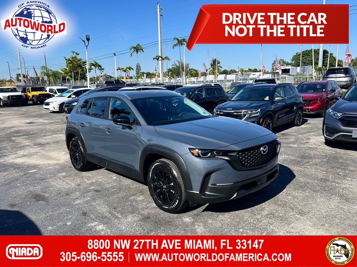 Treat your family to our 2024 Mazda CX-50 2.5 S Preferred AWD that's bold - stylish - and up for fun in Polymetal Gray Metallic! Motivated by a 2.5 Liter SKYACTIV-G 4 Cylinder supplying 187hp to a 6 Speed Automatic transmission with a manual-shift mode for more fun. You can also take advantage of dedicated Sport and Snow modes in this All Wheel Drive SUV - which returns nearly 29mpg on the highway. You'll be moving in style with our Mazda CX-50's LED lighting - heated power mirrors - a power liftgate - rain-sensing wipers - alloy wheels - a roof-mounted spoiler - and bright dual exhaust outlets. Climb inside our 2.5 S Preferred cabin that puts comfort and versatility first with heated cloth/leatherette front seats - eight-way power for the driver - a leather-wrapped steering wheel - dual-zone automatic climate control - and advanced keyless access/ignition. Set your favorite soundtrack on the eight-speaker audio system - and you're ready to connect with a 10.25-inch central display - a Commander controller - Android Auto - voice recognition - navigation - wireless Apple CarPlay - WiFi compatibility - Bluetooth - and HD Radio. Safer travels await - thanks to intelligent Mazda features such as a rearview camera - automatic emergency braking - adaptive cruise control - lane-keeping assistance - a driver attention monitor - blind-spot monitoring - and more. Drive our Mazda CX-50 2.5 S Preferred and discover the world for yourself! Save this Page and Call for Availability. We Know You Will Enjoy Your Test Drive Towards Ownership! This vehicle has a branded title and was DMV inspected in Florida. It is in excellent condition - and everything works perfectly - we have test driven it several times and checked to make sure all the options and features work as they should. It is priced thousands below its J.D. Power retail value based on advertised trim - miles - and options. Our vehicles go through a 151-Point Inspection and this vehicle includes a 6 Month 6 -000 Miles in-house warranty*. It is ready to go for local - nationwide - or international shipping. At Autoworld you will save thousands without sacrificing quality. You can now afford a newer model year - higher trim level - and even lower miles than what you were expecting in your price range. For more than 30 years customers worldwide agree that vehicles from Autoworld of America offer the best value and quality. $$$ DRIVE THE CAR - NOT THE TITLE - SAVE THOUSANDS $$$