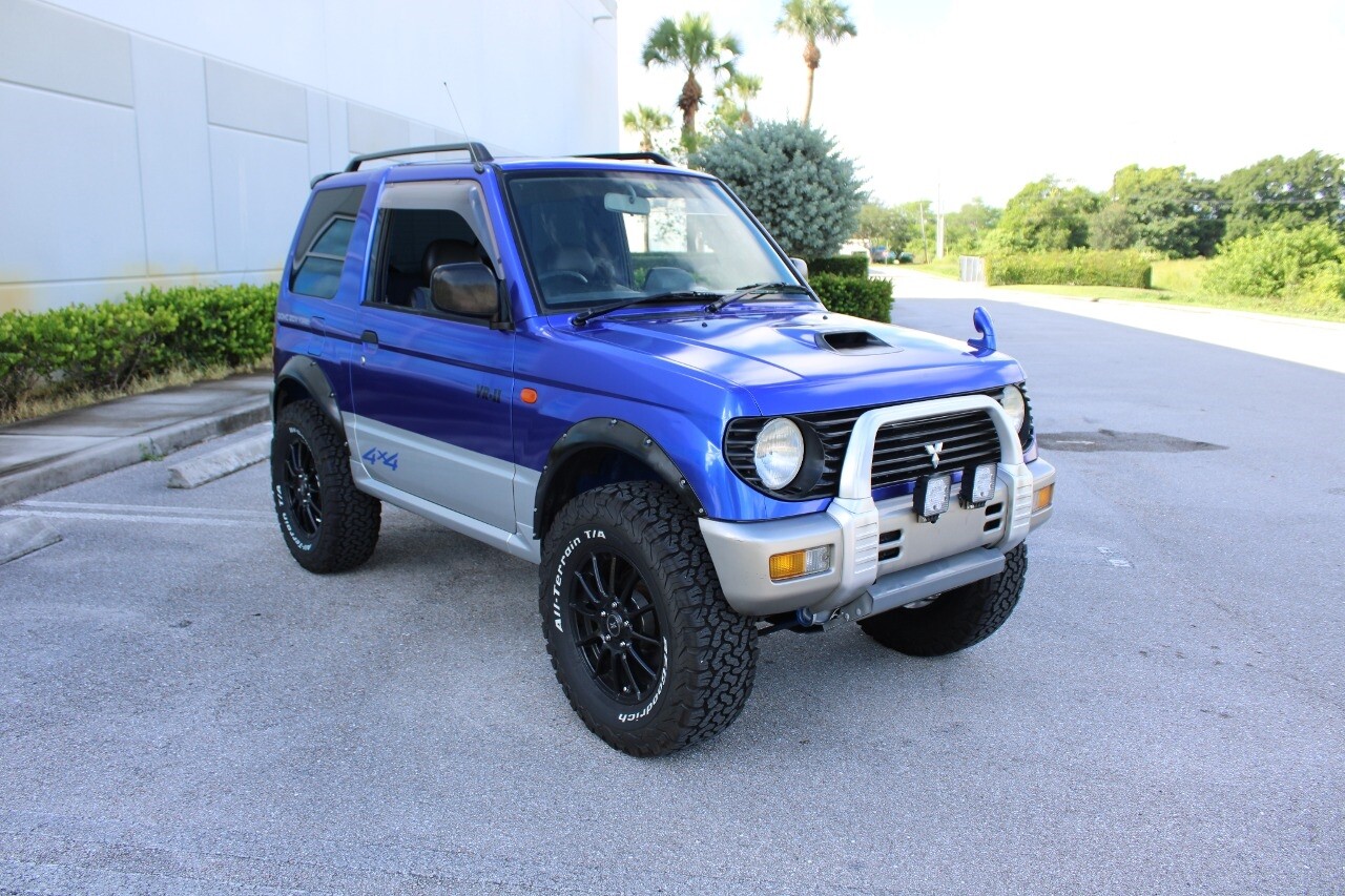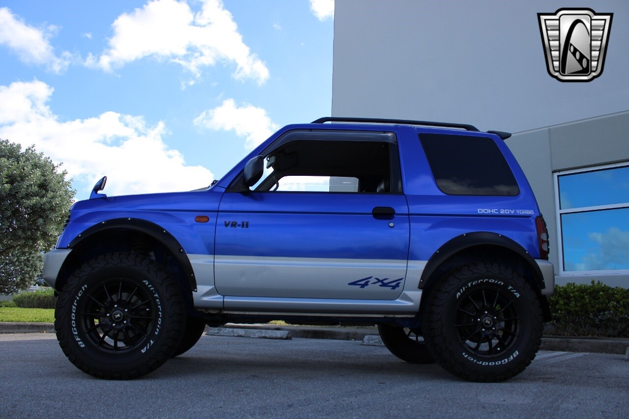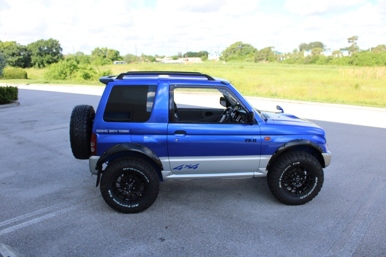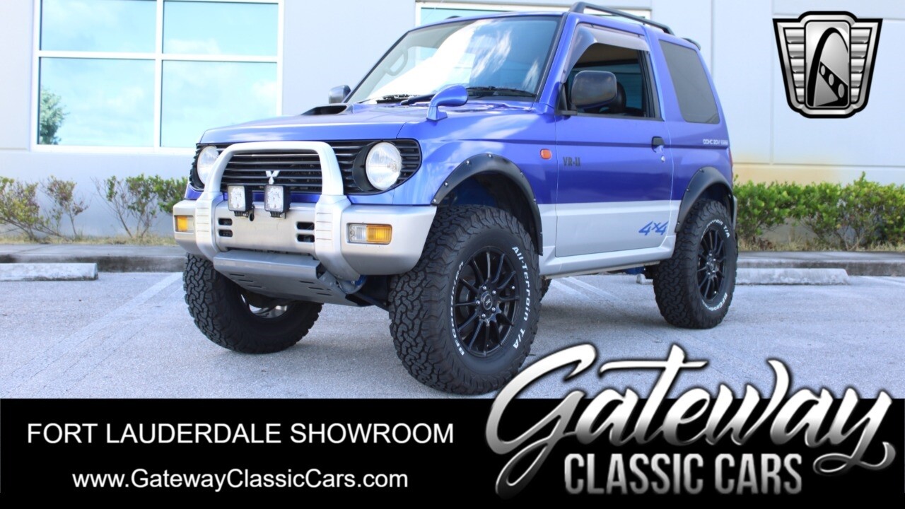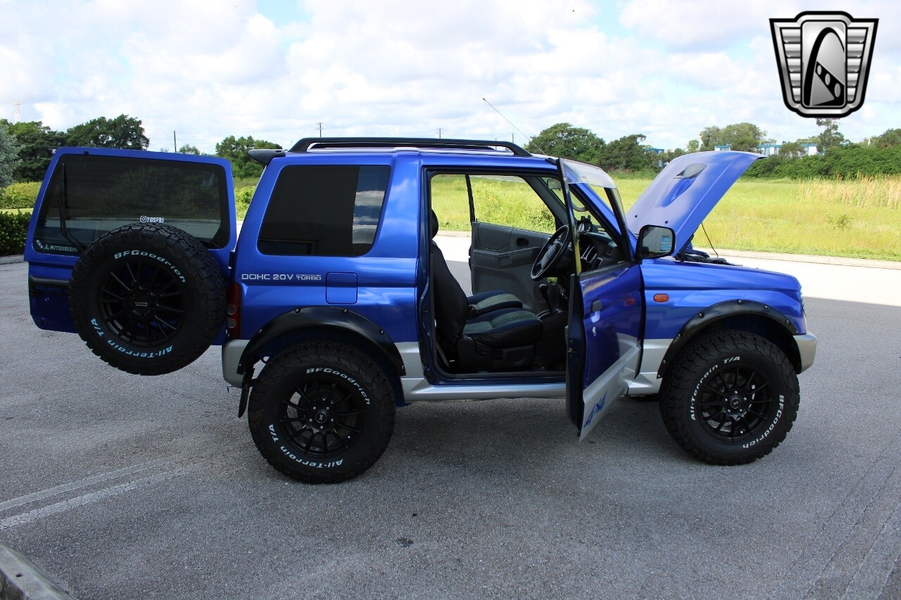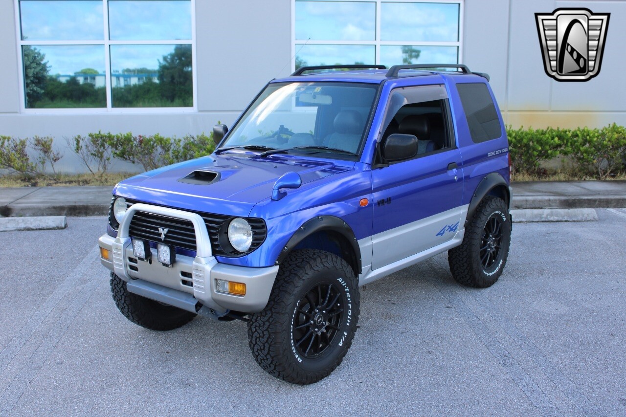 Introducing the 1996 Mitsubishi Pajero Mini BR2, a compact SUV that combines practicality with a touch of adventure. This vehicle boasts a striking blue exterior that is sure to turn heads wherever you go. Step inside, and you'll find a comfortable gray cloth interior that provides a cozy and inviting atmosphere for both driver and passengers.