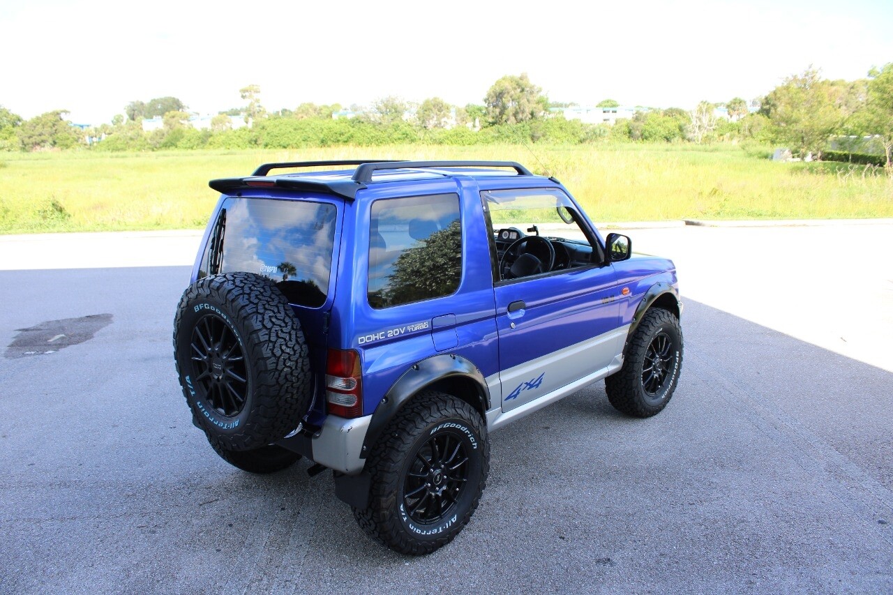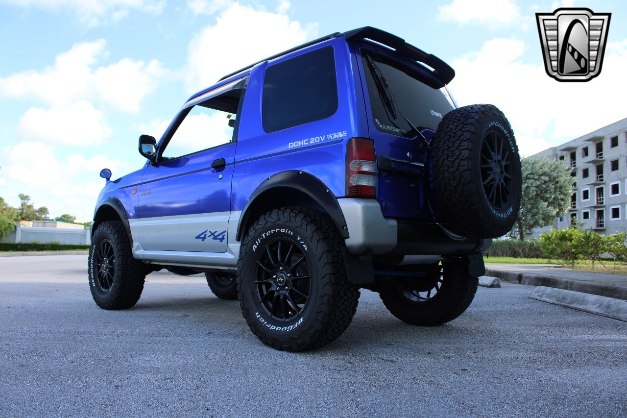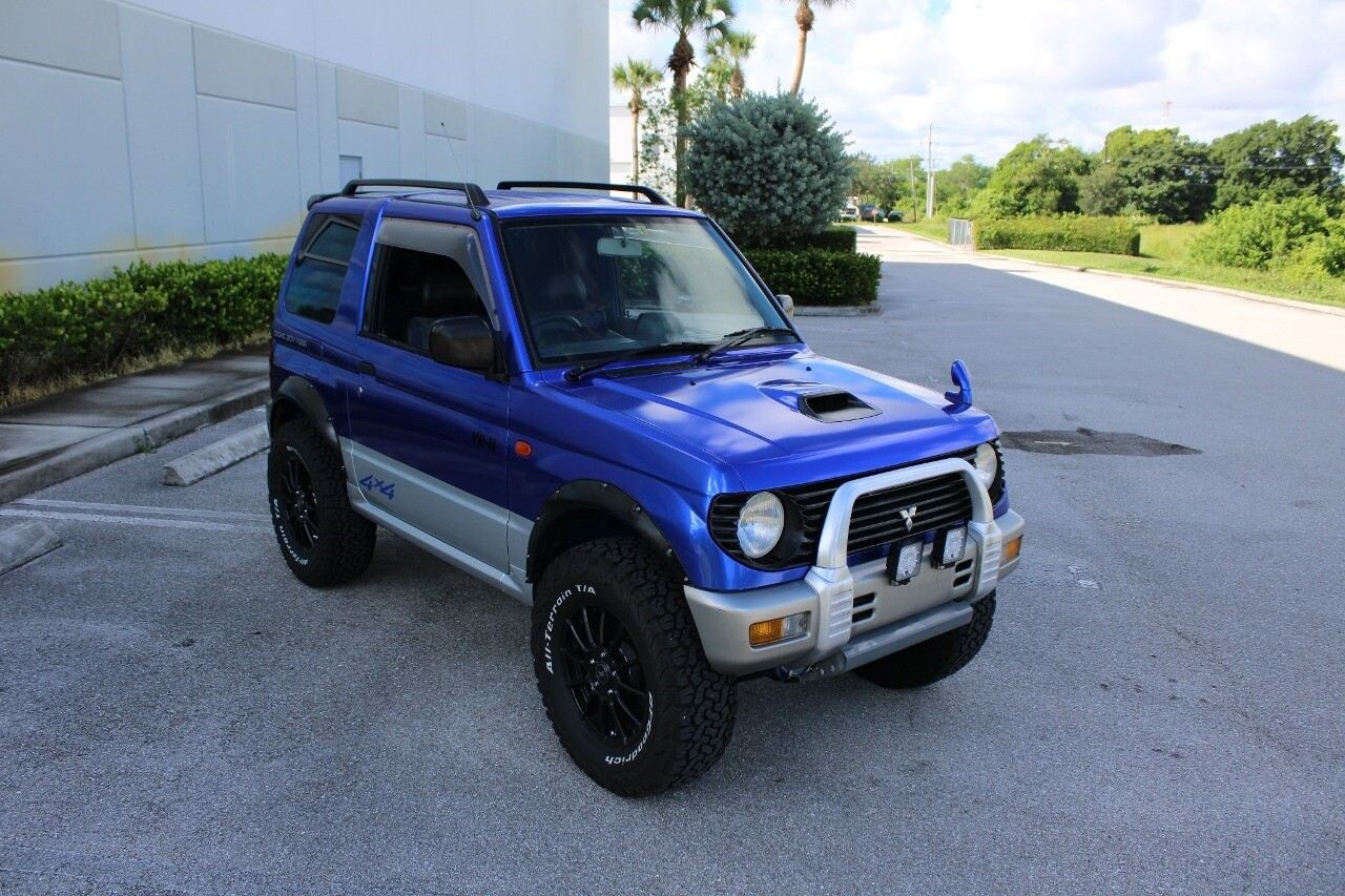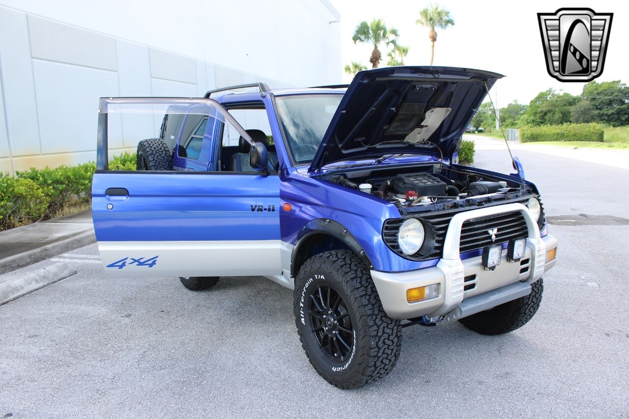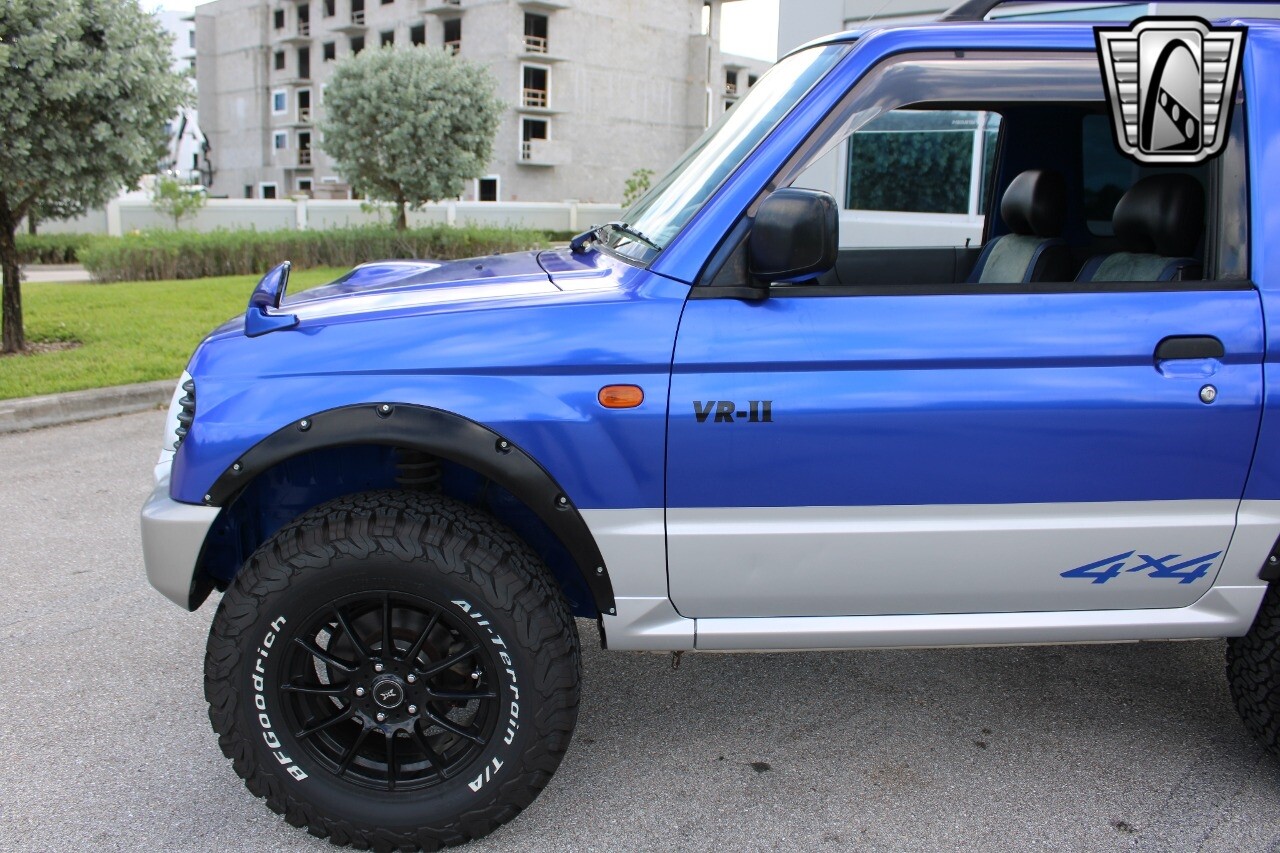 Introducing the 1996 Mitsubishi Pajero Mini BR2, a compact SUV that combines practicality with a touch of adventure. This vehicle boasts a striking blue exterior that is sure to turn heads wherever you go. Step inside, and you'll find a comfortable gray cloth interior that provides a cozy and inviting atmosphere for both driver and passengers.