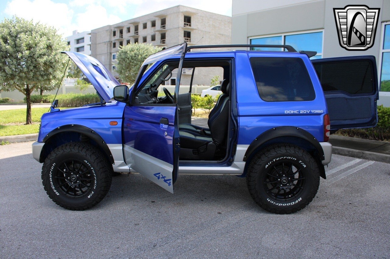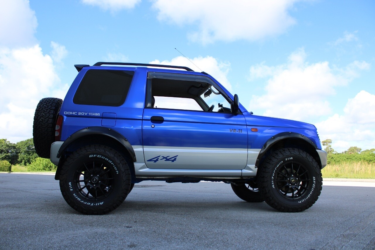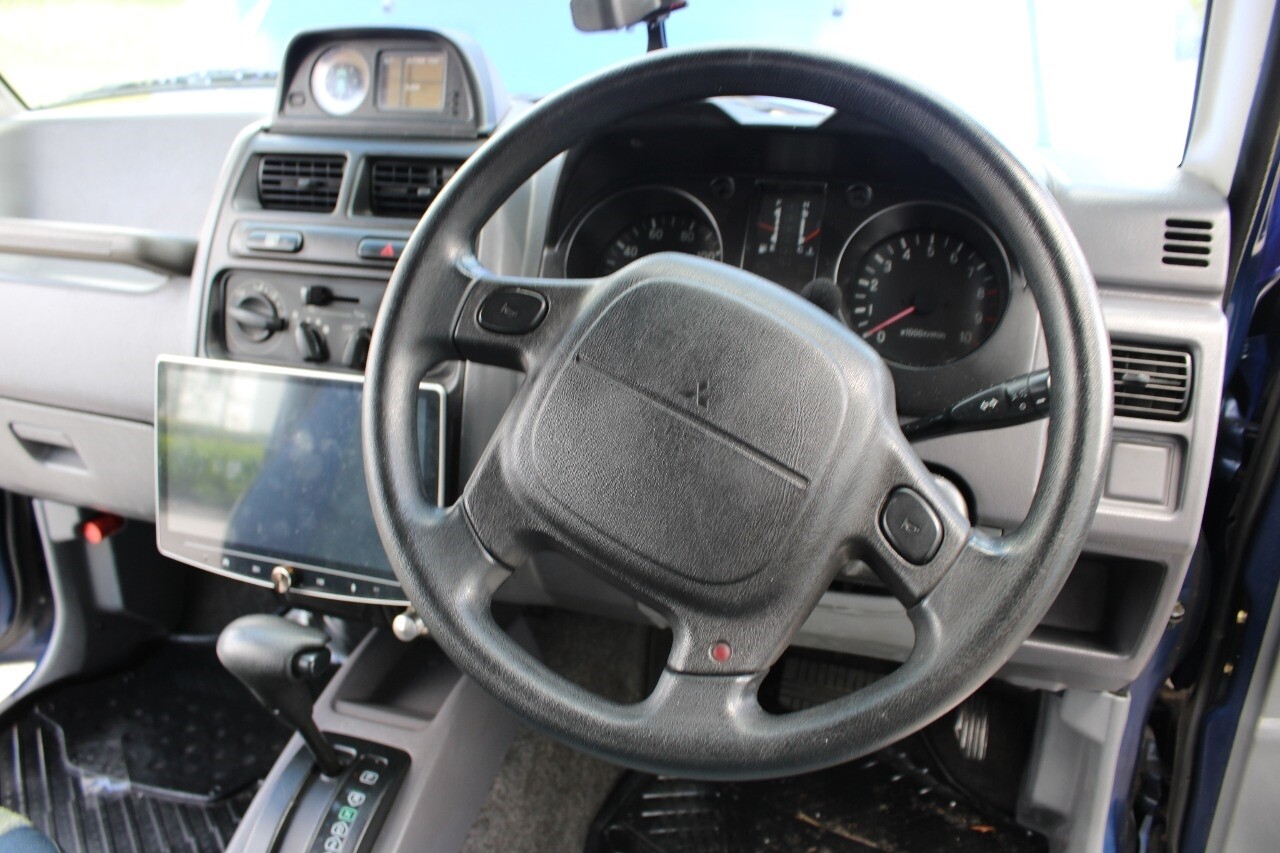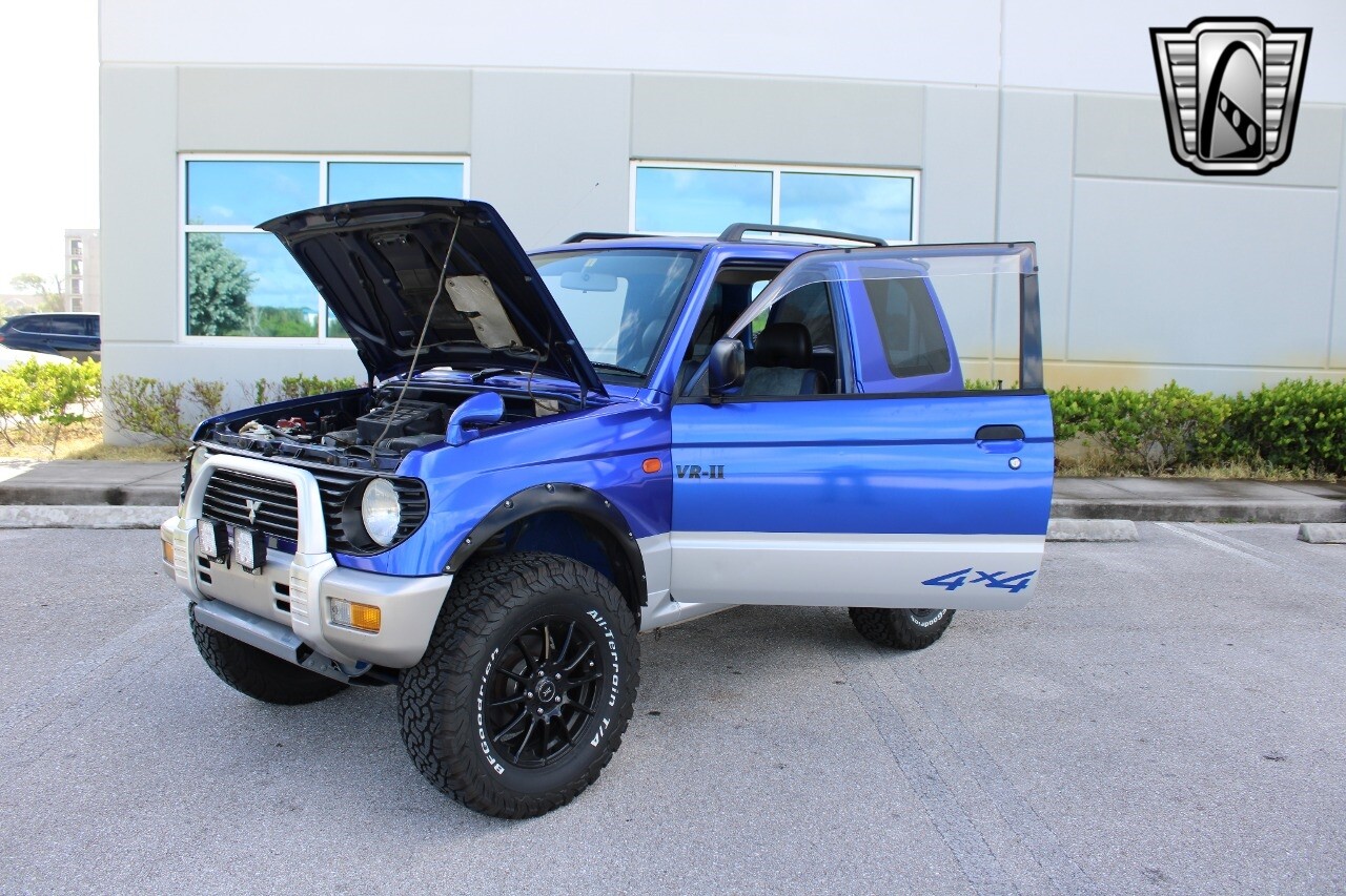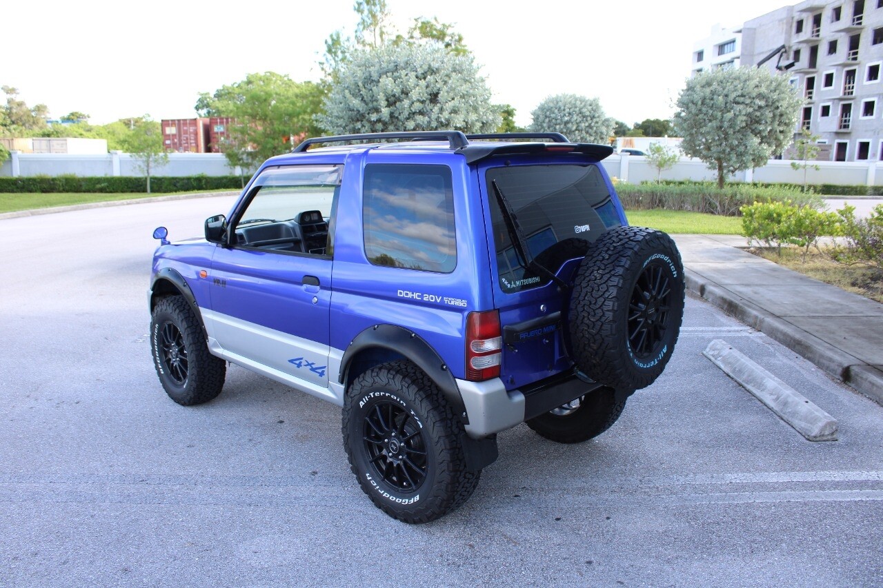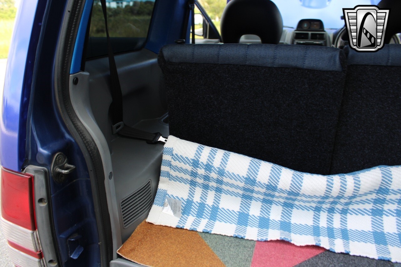 Introducing the 1996 Mitsubishi Pajero Mini BR2, a compact SUV that combines practicality with a touch of adventure. This vehicle boasts a striking blue exterior that is sure to turn heads wherever you go. Step inside, and you'll find a comfortable gray cloth interior that provides a cozy and inviting atmosphere for both driver and passengers.