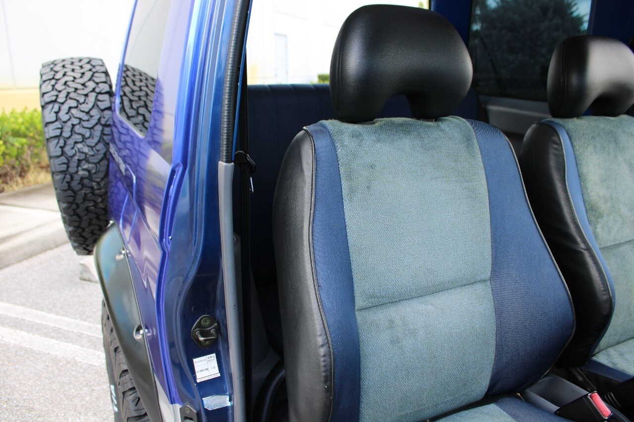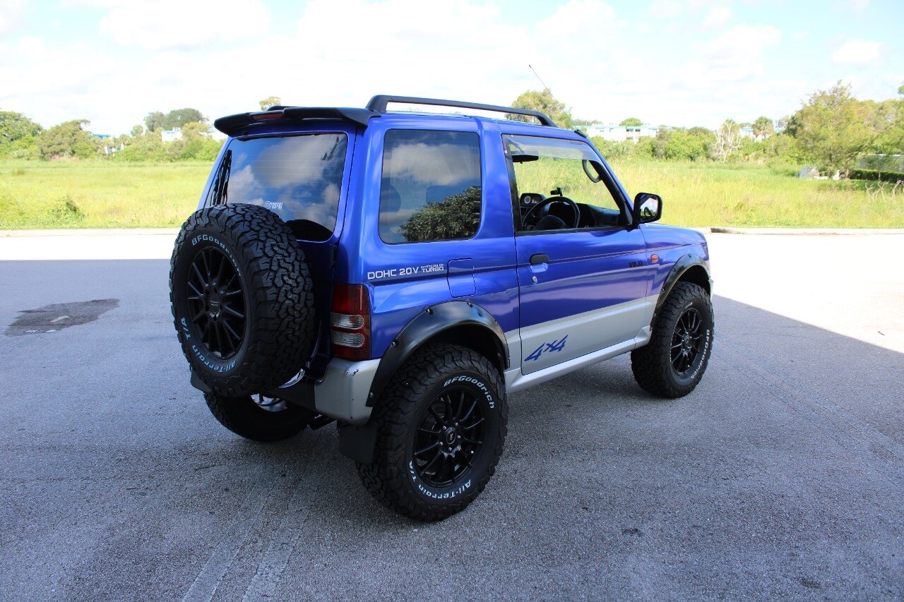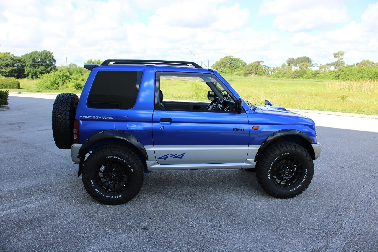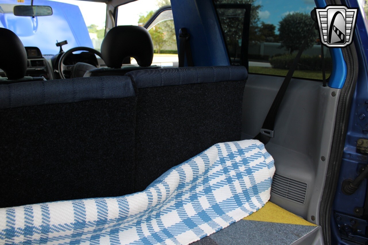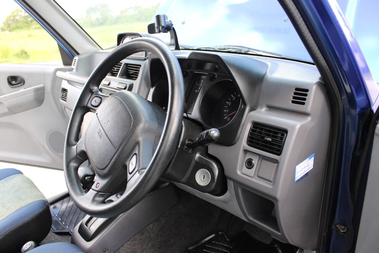 Introducing the 1996 Mitsubishi Pajero Mini BR2, a compact SUV that combines practicality with a touch of adventure. This vehicle boasts a striking blue exterior that is sure to turn heads wherever you go. Step inside, and you'll find a comfortable gray cloth interior that provides a cozy and inviting atmosphere for both driver and passengers.