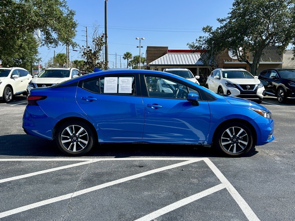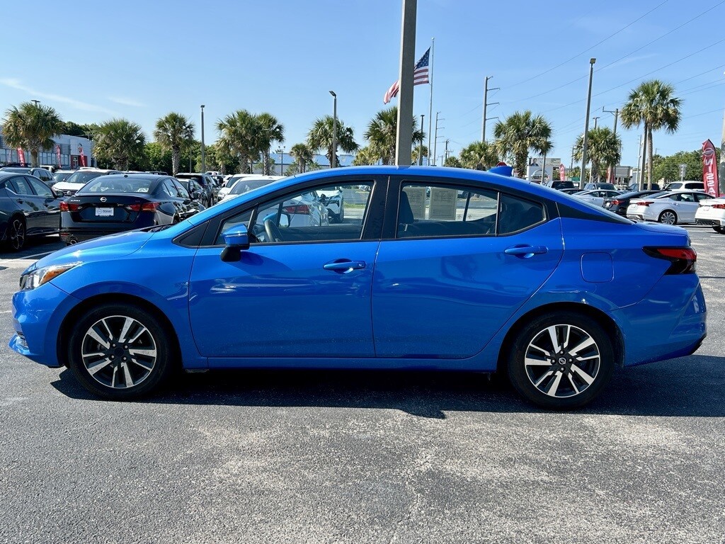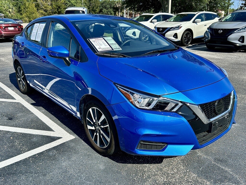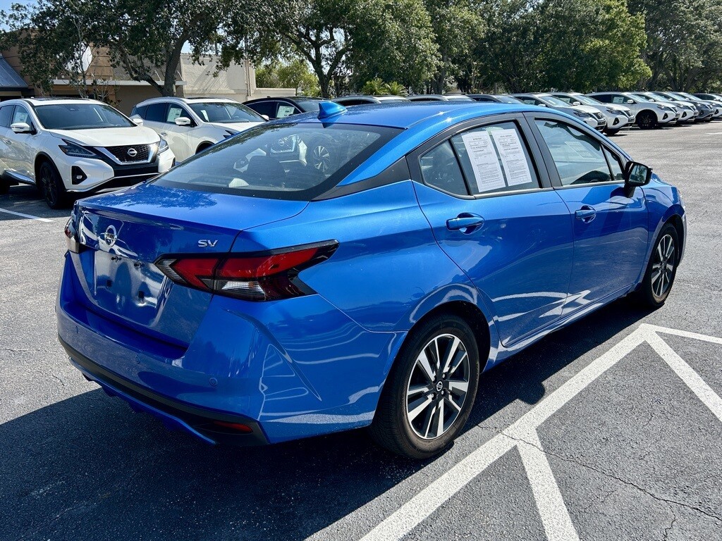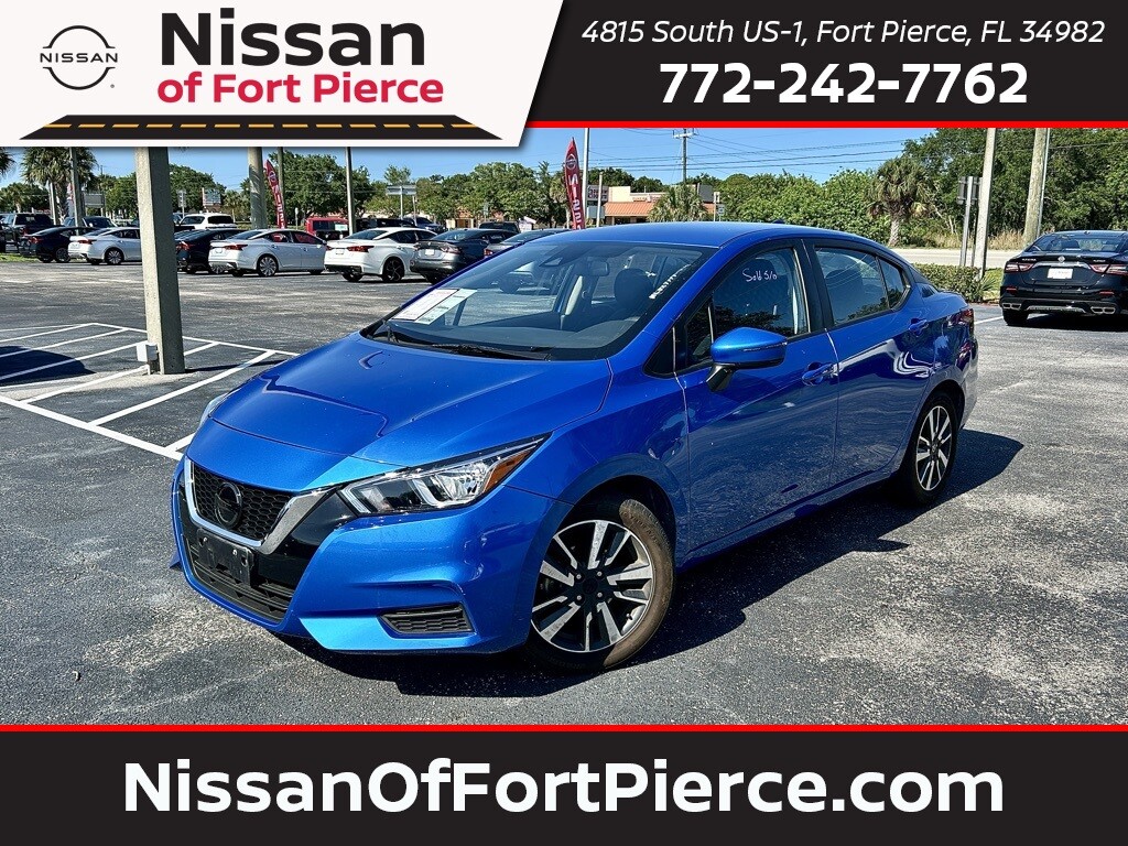 2021 Nissan Versa 4D Sedan Electric Blue Metallic CVT 1.6 SV CARFAX One-Owner. Priced below KBB Fair Purchase Price! Odometer is 4448 miles below market average! FWD 1.6L 4-Cylinder DOHC 16V