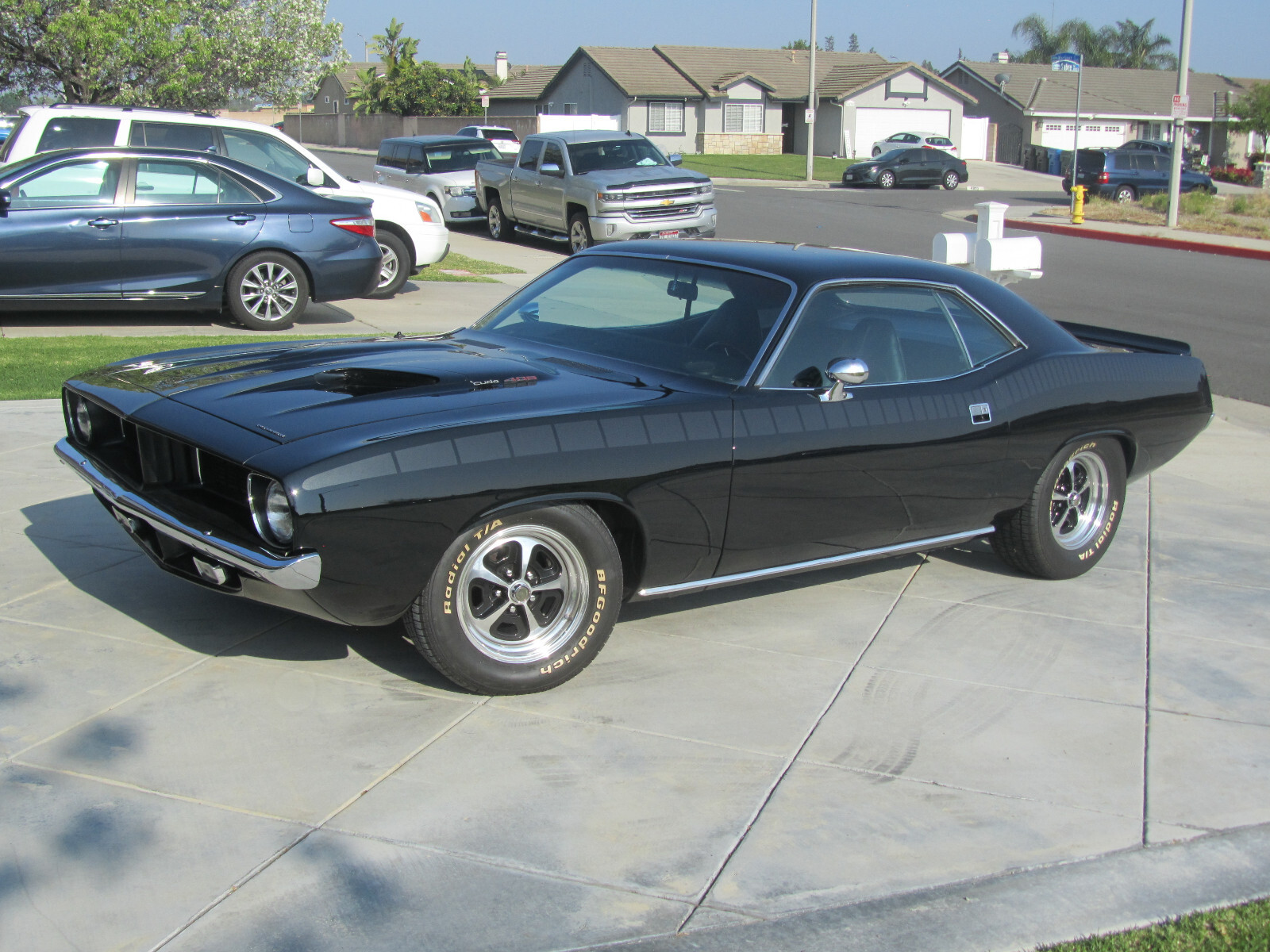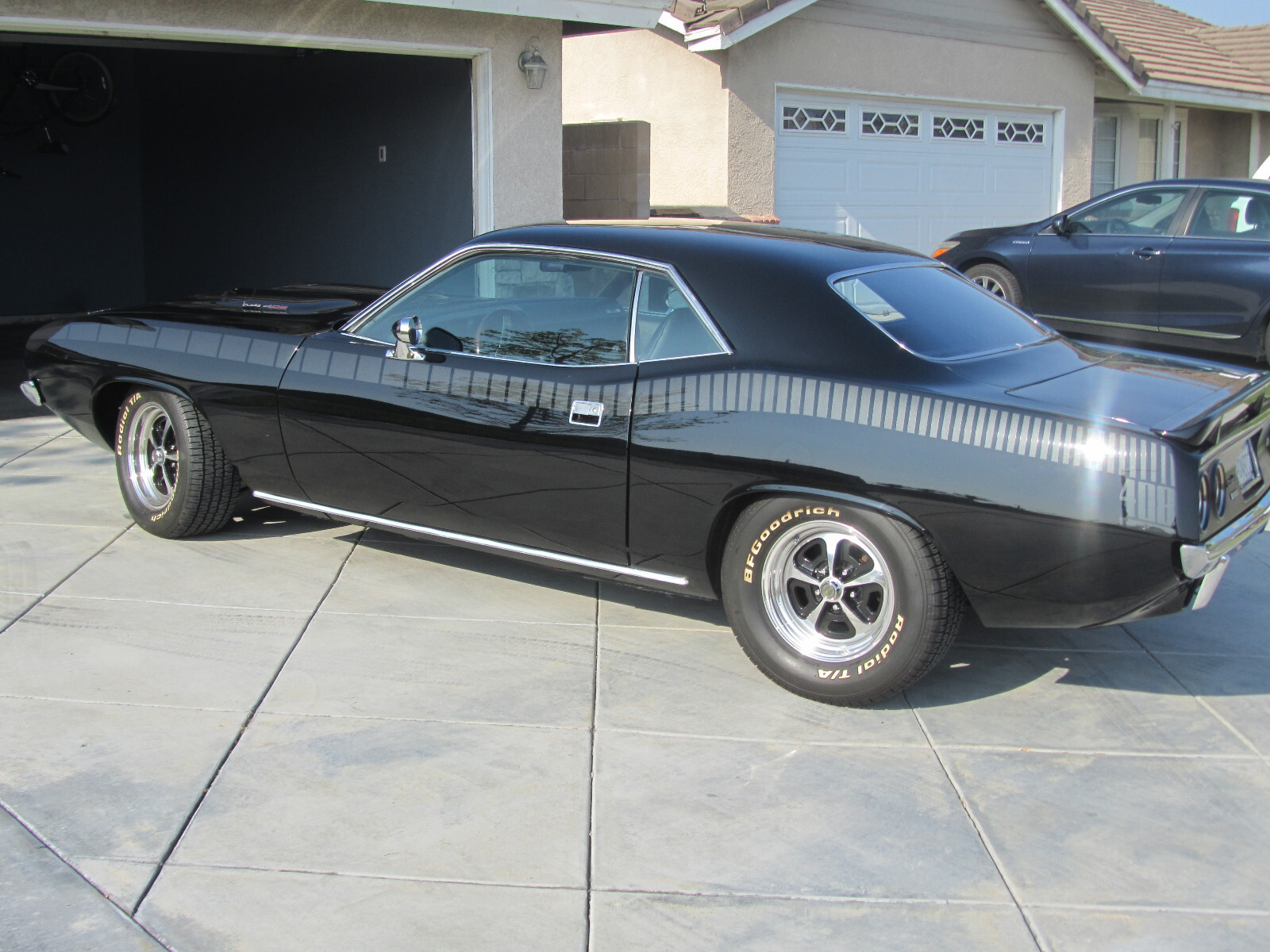 You are viewing a beautiful 1973 Plymouth Cuda custom. The car was born with a 340 engine and has since been modified to a 408 stroker with self-tuning EFI. The original 3 speed automatic transmission has been replaced with 700R4 4 speed with overdrive transmission. In the engine bay you find an aluminum radiator with dual electric high output fans for cooling, a March performance style track serpertine drive, headers, K&N air filter, and vintage air conditioning. The battery has been relocated to the rear trunk to help clean up the engine bay. The chassis has Hotchkis performance sports suspension, 8 3/4 rear end with Eaton Posi 3.73, new drive shaft, front and rear disc brakes, the fuel tank has been replaced with a 18 gal fuel tank with EFI pump, custom 3" dual exhaust with electronic cut outs, and American Racing "Magnum VN500 2 pc rims front 15X7 and rear 15X8 . Exterior is painted black with custom painted AAR style striping in Mercades "platinum black" (no decals). Front and rear side markers delete, dual rallye hood scoops have been made functional, custom hood emblems calling out the "408" front grill painted black with chrome molding inserts and power antenna. Interior has seen an all new wiring harness, Dakota Digital custom guages, custom black carpet, custom black leather seats, custom interior panels have been wrapped in black leather, the woodgrain dash bezel and center console have been replaced with carbon overlay, USB ports added inside the center console compartment, GT3 retro steering wheel (dark walnut) and a Kenwood custom sound system with 6 speakers, subwoofer and amplifier. The original miles reading before guage swap was 98700 and the car has 3540 miles on the engine build.https://www.instagram.com/stories/highlights/17936184020647382/https://www.instagram.com/stories/highlights/17985789952610942/You’re encouraged to see the vehicle prior to placing a offer. The vehicle is sold "As-IS" The buyer is responsible for pick up or shipping. $500 deposit is required within 48 hours. Full payment is required for balance within 7 days after listing closes. Bank transfer preferred. Cashier’s check will need to clear before vehicle is released. No trade offer please. I reserve the right to close this listing as I will list it locally too. For further questions you can contact me at 626-482-2989 or snoopy63rc@aol.comThank you for your consideration