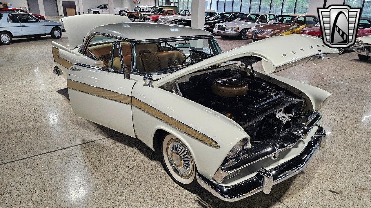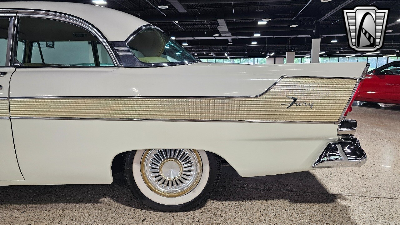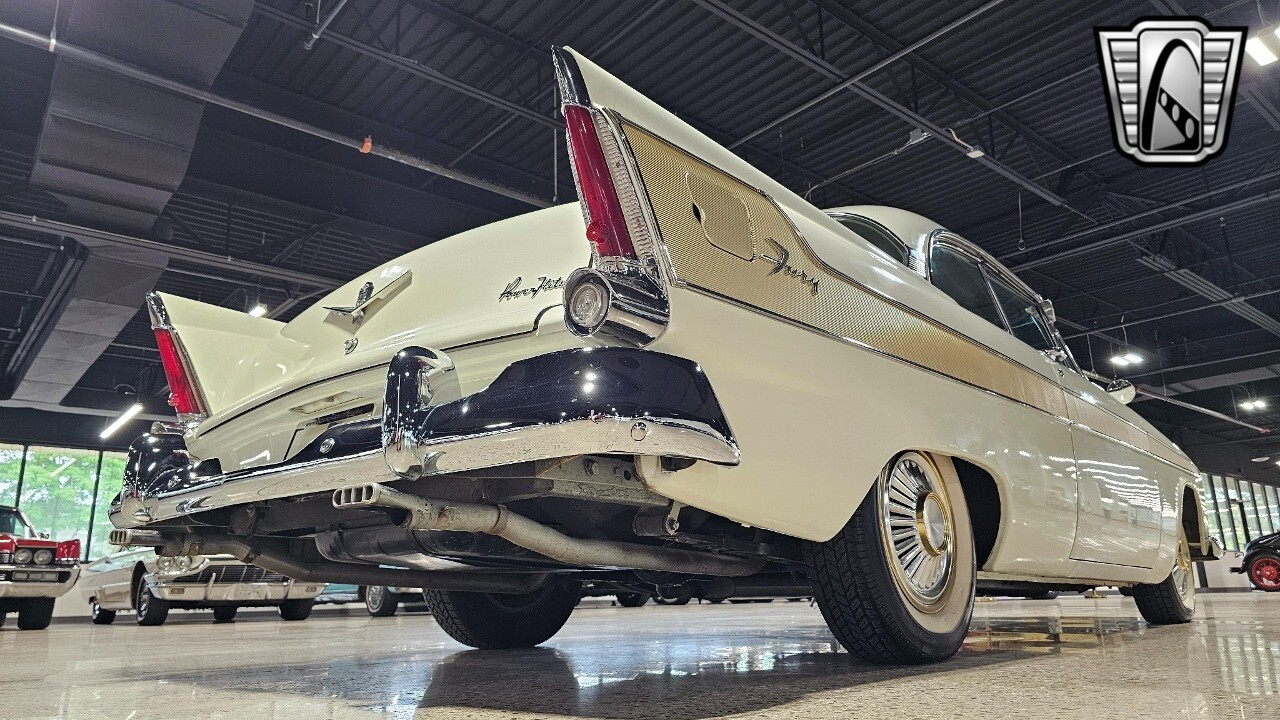 Gateway Classic Cars of Detroit is excited to present this 1956 Plymouth Fury! This iconic car boasts a commanding presence with its sleek White exterior and striking Gold side trim, epitomizing classic elegance and style. Powered by a potent 303CID V8 engine paired with an automatic transmission, this Fury delivers a thrilling driving experience that enthusiasts crave. What sets this Fury apart from other cars is its highly sought-after push button transmission, a rare feature that enhances its allure among collectors and aficionados alike. Don't let this opportunity slip away to own a piece of automotive history. Seize the chance to experience the nostalgia and power of this 1956 Plymouth Fury!