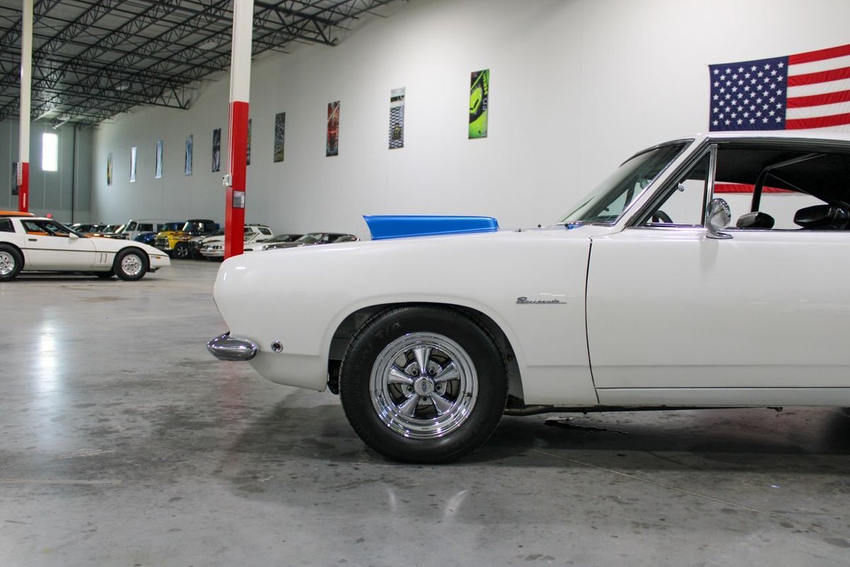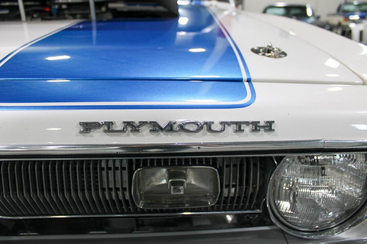 The 1968 Plymouth Barracuda presented here is a meticulously preserved example with an astonishingly low mileage of just 14,000 miles. Its body remains uncut, retaining its original factory lines and contours, making it a rare find in today's collector car market. The exterior has been meticulously restored and finished in a striking two-tone paint scheme of pearl white with metallic blue, applied expertly to both the upper and lower surfaces of the car. Adding to its authenticity, the Barracuda includes its original bumper jack, a testament to the care and attention given to preserving its historical accuracy.
