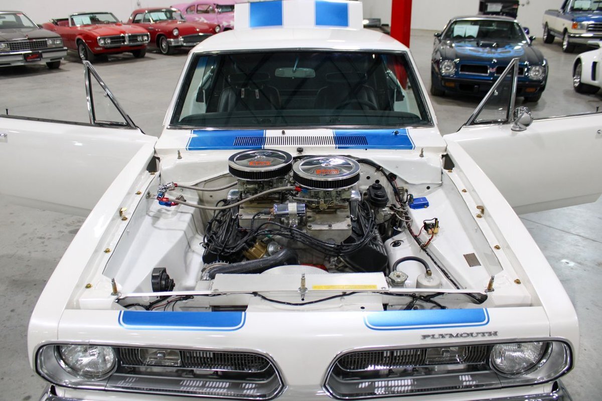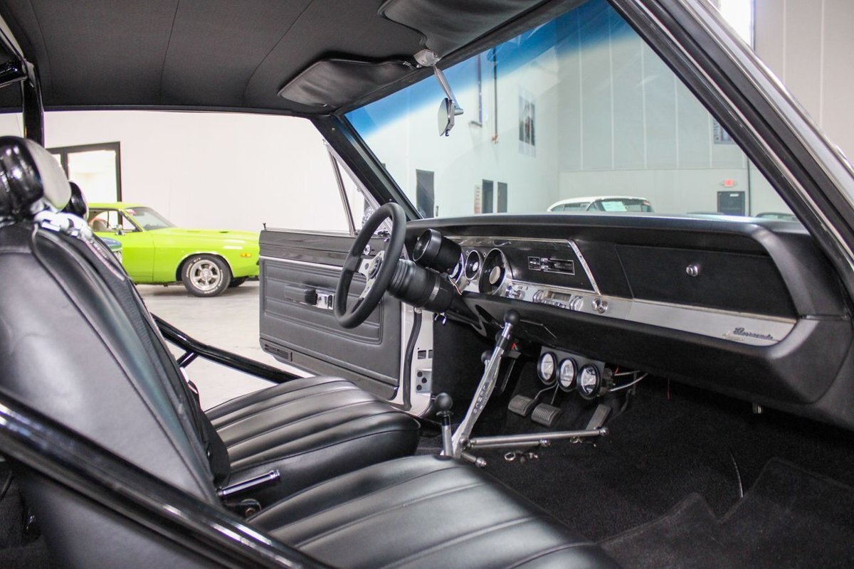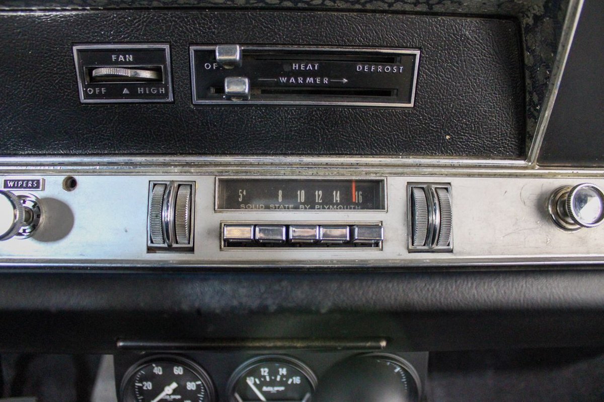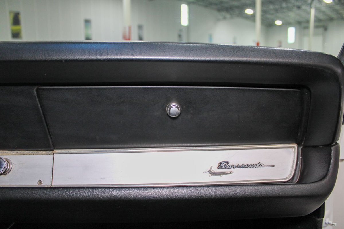 Inside, the Barracuda's interior has been completely revitalized with all-new upholstery, including fresh carpet and panels. Despite the focus on performance and aesthetics, functionality remains a priority, with all lights and wipers in full working order. Notably, the decision to omit the heater box underscores the owner's dedication to enhancing performance and reducing unnecessary weight, further aligning this Barracuda with its heritage as a potent muscle car of its era.