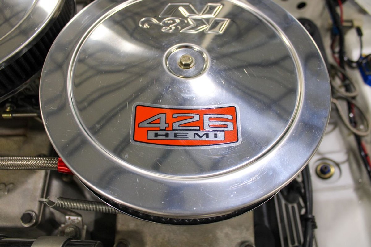 Under the hood, this Barracuda is equipped with a formidable 426 cubic inch cast iron block engine, paired with aluminum heads. It features a correct cross-ram intake manifold and carburetors, delivering the kind of high-performance power and torque that defines classic muscle cars. Power is transferred to the wheels through a robust 4-speed Lenco transmission and a 4.10 Dana rear end, ensuring exhilarating acceleration and a thrilling driving experience. Upgraded Wilwood disc brakes on all four corners provide modern stopping power, enhancing safety and control, while Avco shocks contribute to improved handling dynamics.