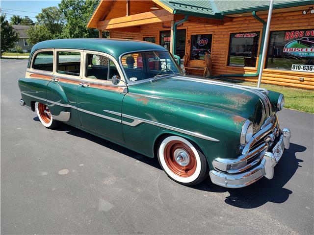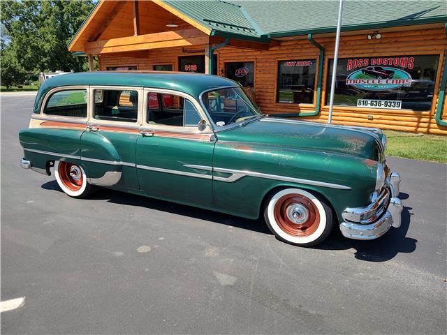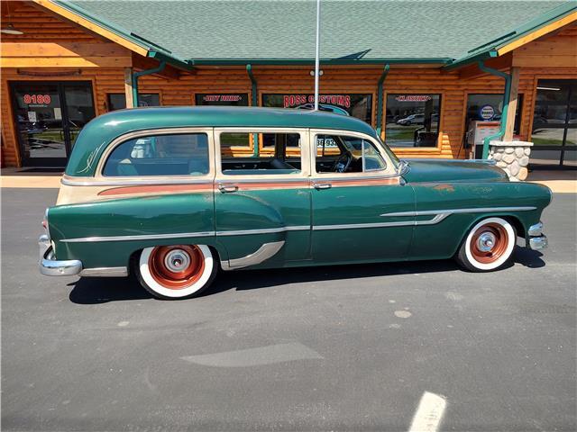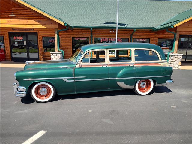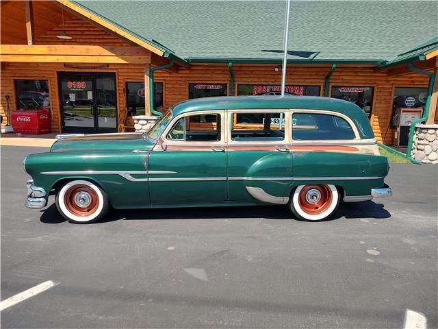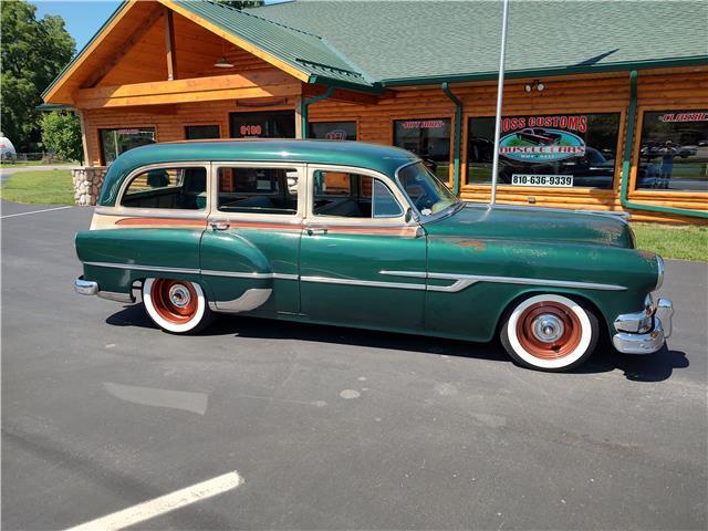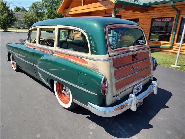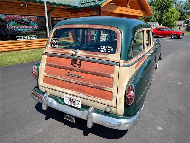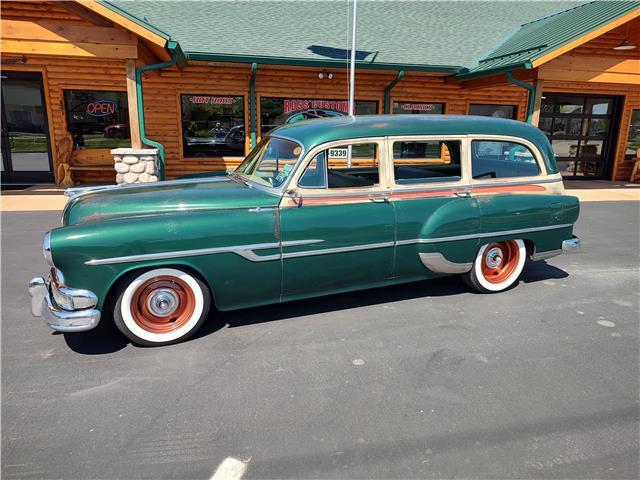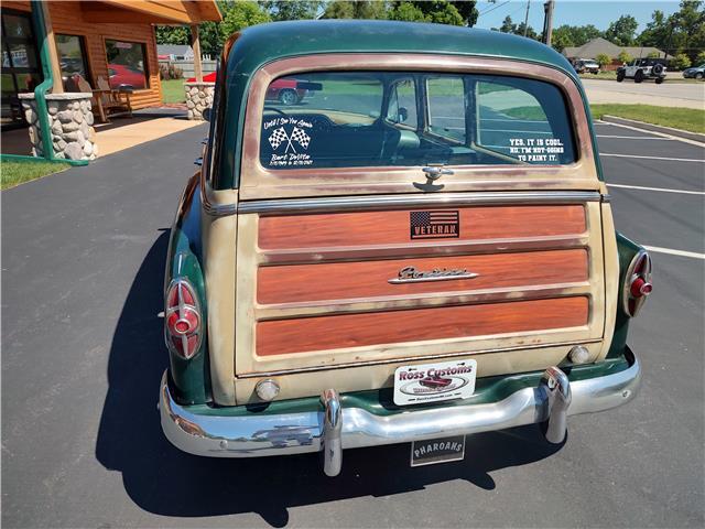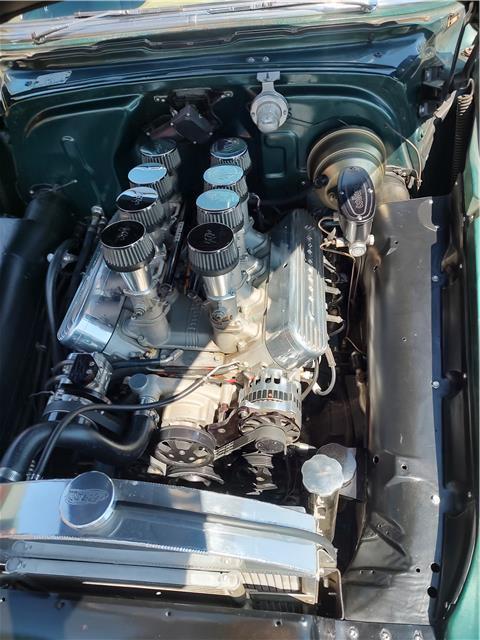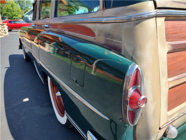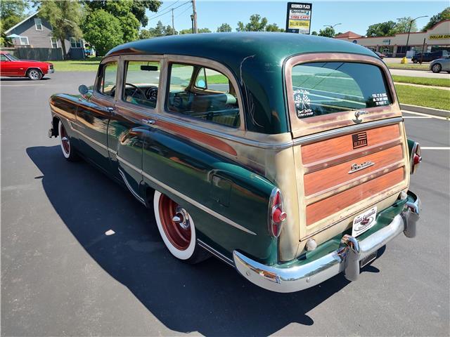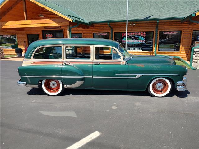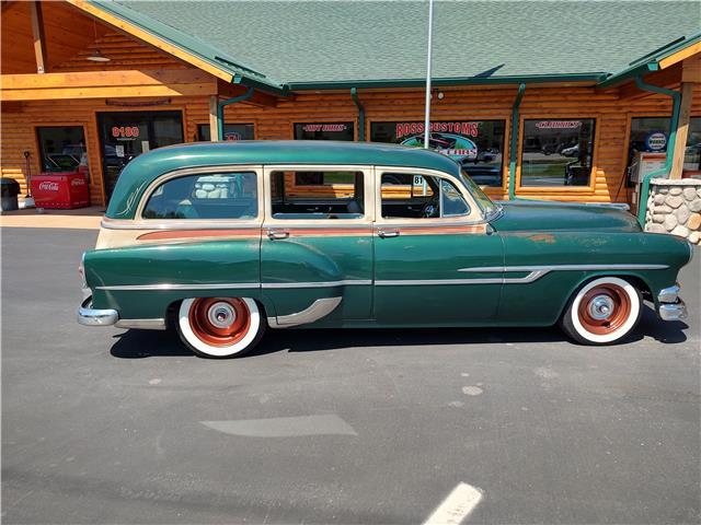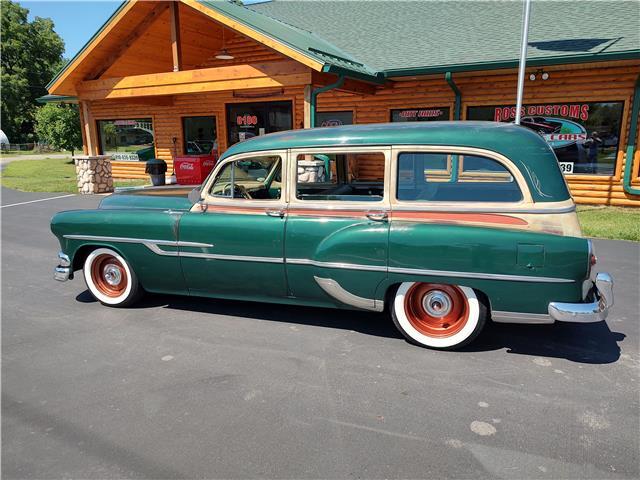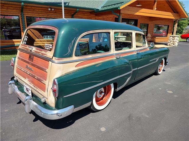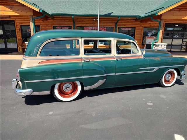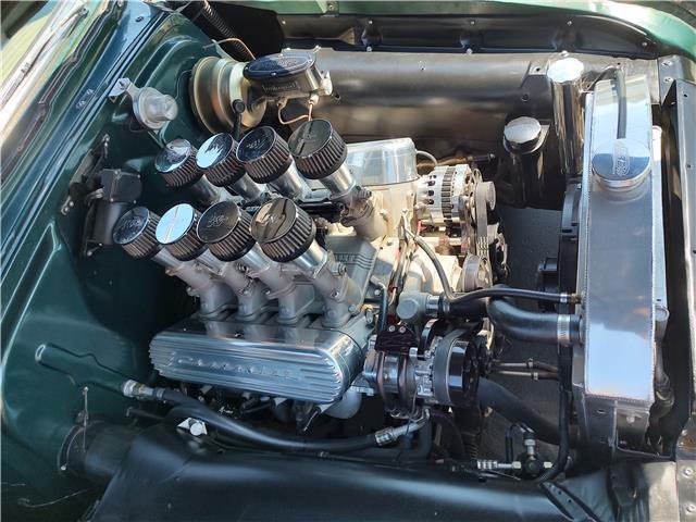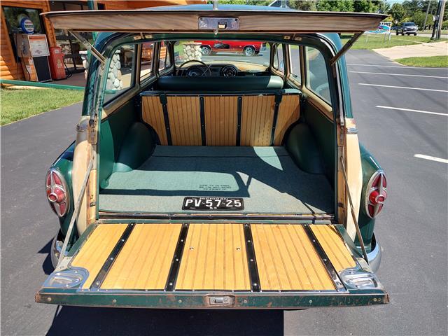 New 2 tone green custom leather interior, dash has been refinished, all dash trim is original in excellent condition, new wiring throughout, factory gauges have been reworked to work properly with the updated drive line, very nice done AC and heat controls - looks factory, AC vents nicely mounted under dash, nicely updated with IDIDIT tilt steering column with column shift; which works correctly with the 4L80E trans, recondited original steering wheel, upper dash and garnish moldings have been refinished to its factory appearing wood grain, new headliner and visors, rear cargo area stainless moldings have been re-polished, new wood; also has carpet mat, new custom door panels with factory stainless moldings front and rear, new arm rest; as well as rear side molding and wheel house covers, front and rear seats have been redone; rear seat folds down, front and rear seat belts, removable Bluetooth speaker box which is done to match, new carpet and custom floor mats, original sill plates in excellent condition.