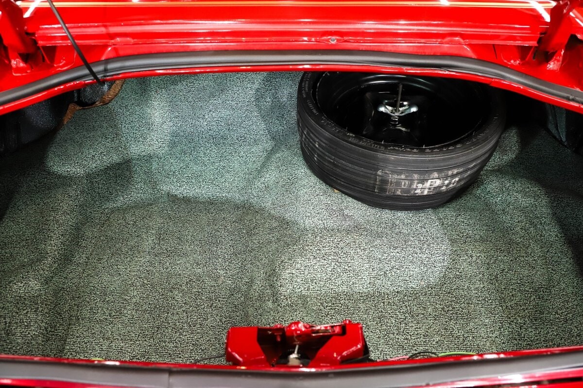 TRUNK COMPARTMENT: Everything is impressive on this car including the trunk compartment. Lift the lid and you'll notice it's pristine originality instantly. The bottom of the lid and jamb have factory original paint, stickers and weatherstrip. Trunk light works. It's original insulated mat still looks new; underneath is mint factory original spatter finish paint. The space saver spare tire and jack appear to be original and possibly never removed from the trunk. This is as close as you will find to a perfect factory original trunk from 1978!