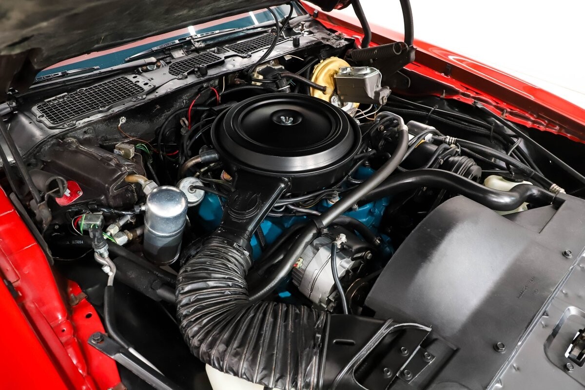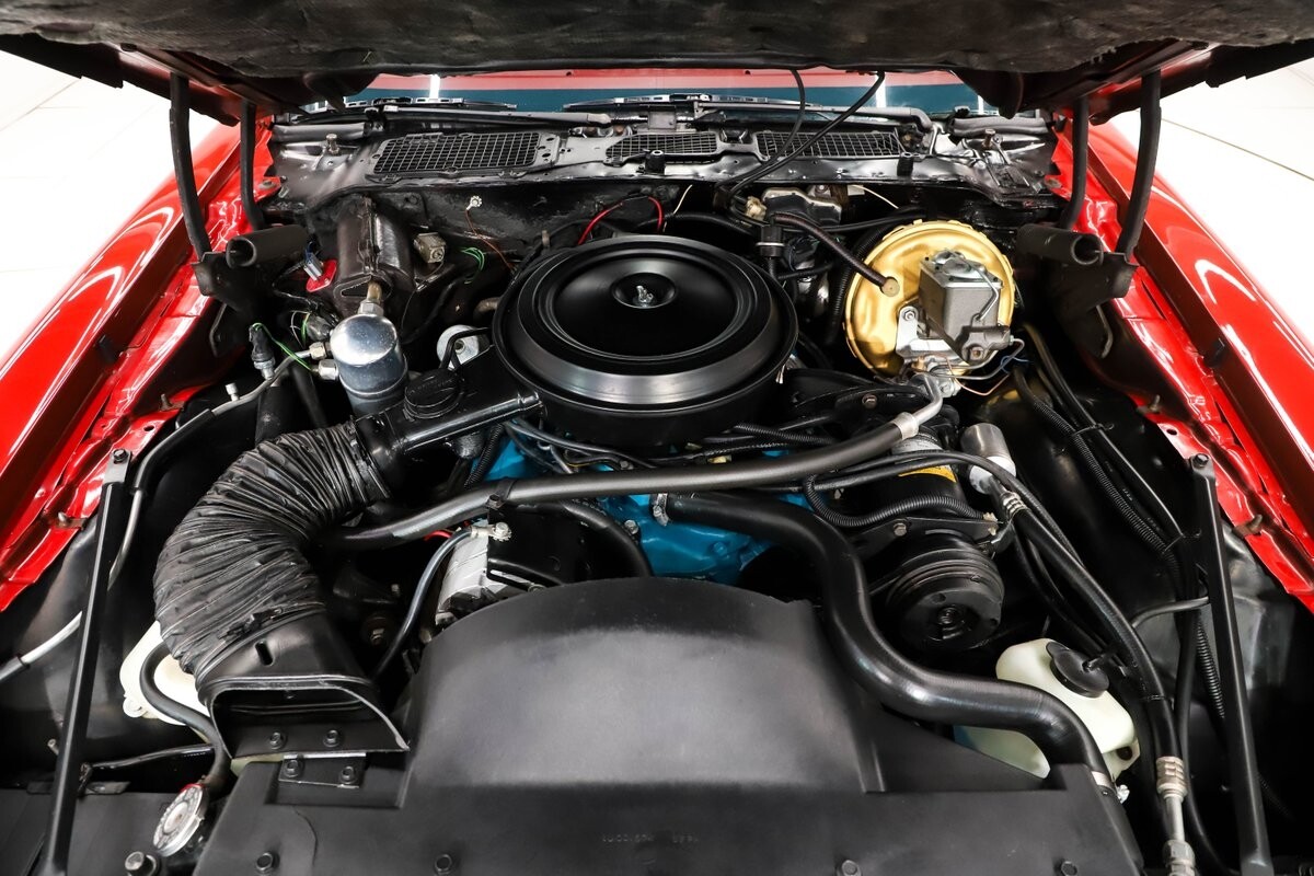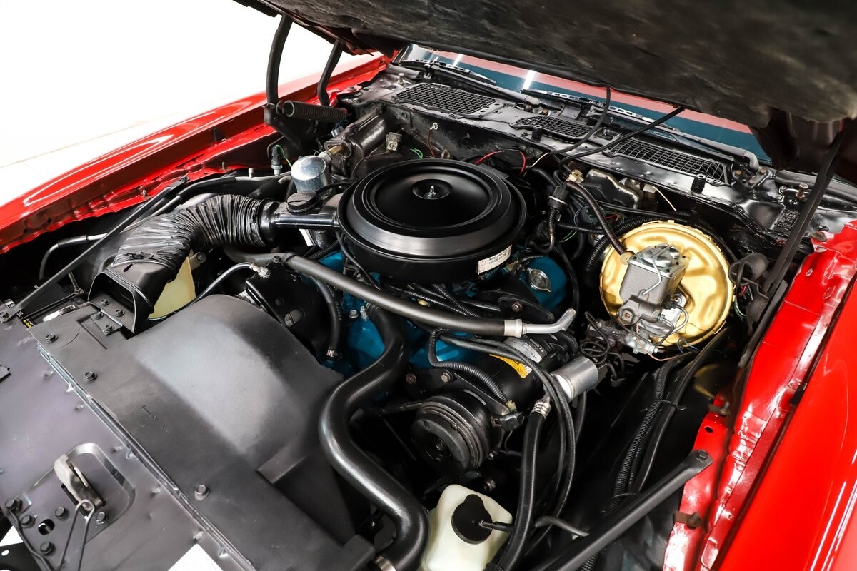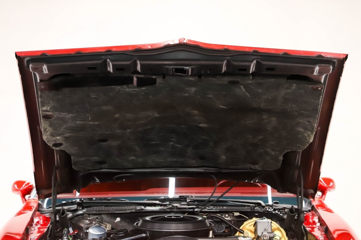 ENGINE COMPARTMENT: The engine compartment is very similar to the interior as far as originality is concerned! It is very original with some very careful detailing and maintenance. It is showroom fresh! Pontiac used Chevy 350 motors, this one is the original with all its original manifolds, carb, valve covers, air cleaner etc. It is equipped with air conditioning from the factory along with power steering and brakes. The alternator has been replaced, the original radiator has been rebuilt, original master cylinder was rebuilt. but is also original to the car. All the hoses and wires appear to be routed the way the factory would. The backs of the headlights and a/c box are raw fiberglass, hood insulation is mint, horns and squirters are hooked up, etc. It is right, no disappointments here!