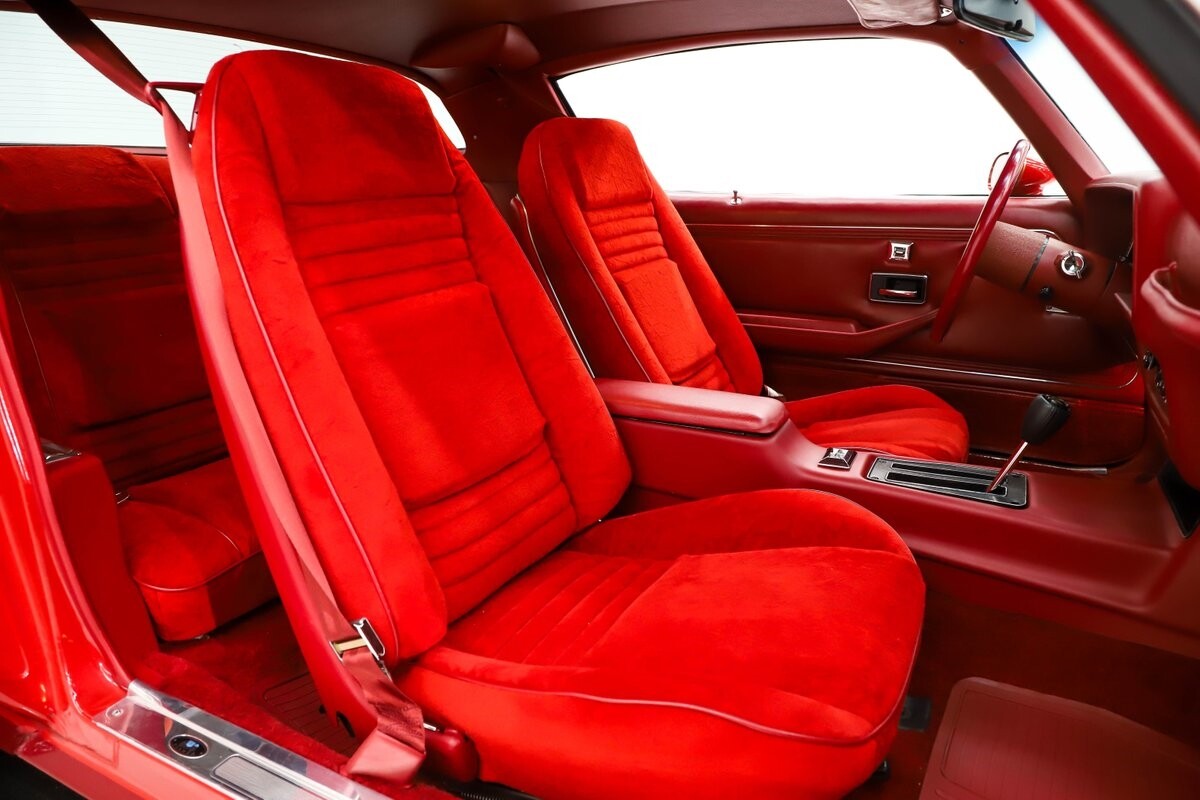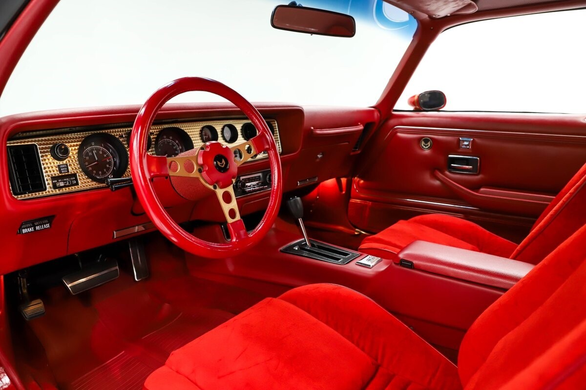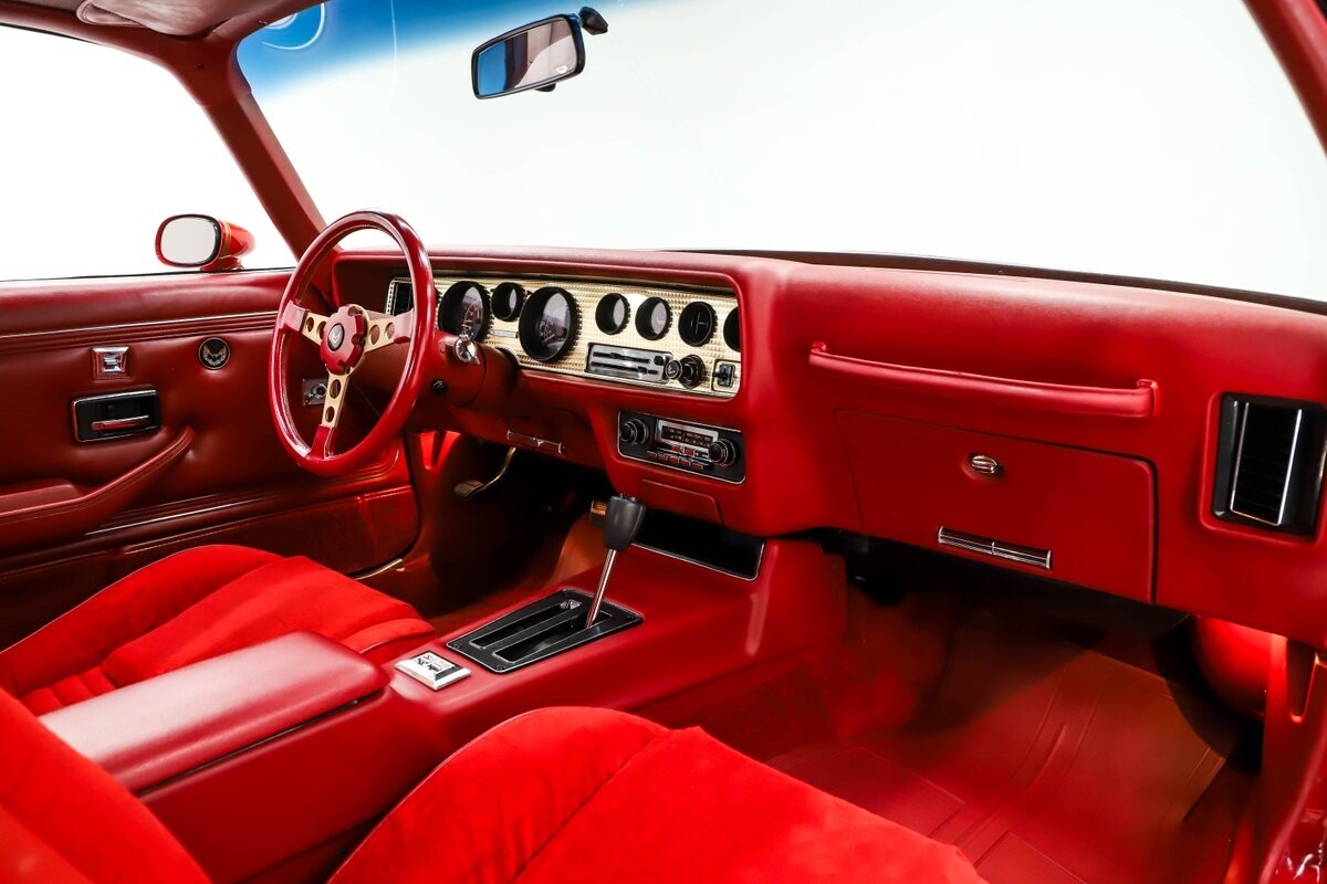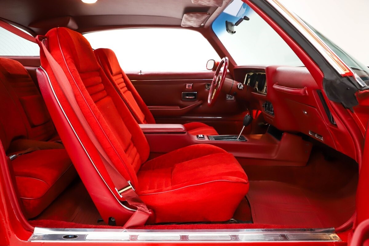 INTERIOR: The unique Redbird interior features include carmine red color, gold machine turned dash bezel and a red formula wheel with gold spokes. It is loaded with factory options like deluxe cloth interior, power windows, power door locks, rear defroster, tilt column, AM-FM stereo and rally gauges. As I'm in our showroom writing this description a customer came up and started talking with me about the car. I mentioned it's originality and cracked the door so they can take a look at the interior. The first thing that came out of his mouth was "it still smells new"! I think that descriptive pretty much sums up this entire interior. It is nothing short of amazing, it's as close to brand new as you will find and it's original! Sit inside and you will be instantly transformed back to 1978 when this car rolled off the showroom floor. The headliner does not sag, dash area is pristine, the seats show zero wear! The door panels are mint, the carpet is even spotless! The steering wheel, center console and shifter, plastic trim are pristine! The cigarette lighter has never been used. It is as close to perfection as you will ever find for a vehicle that's over 40 years old! It's totally amazing!