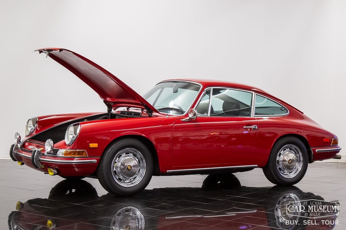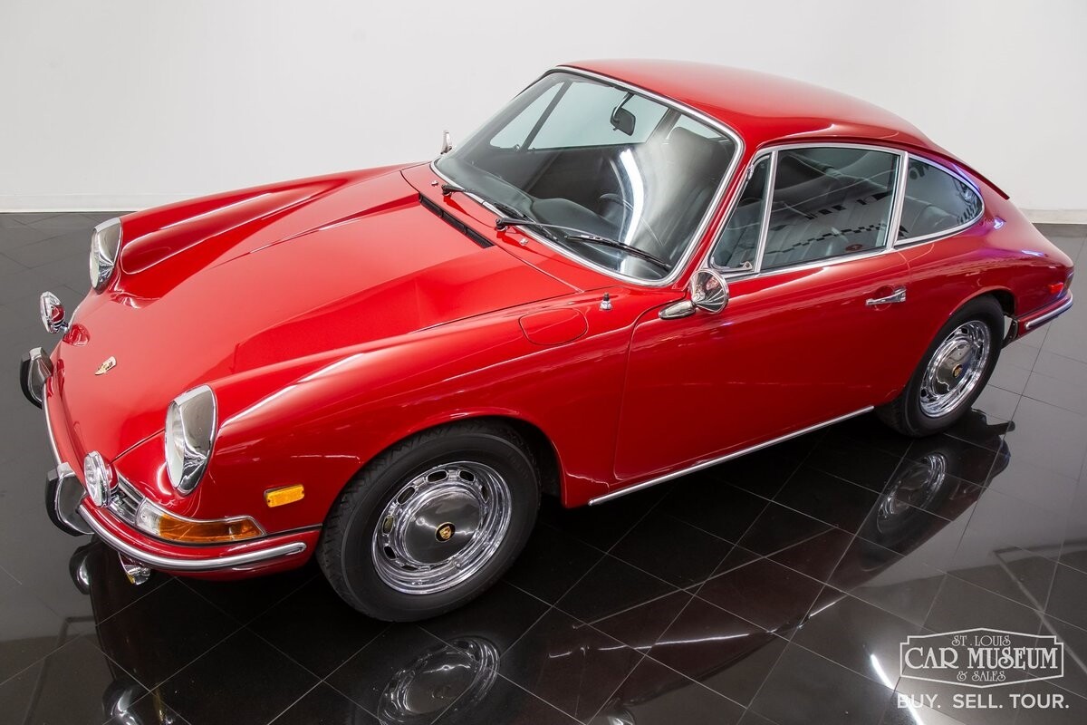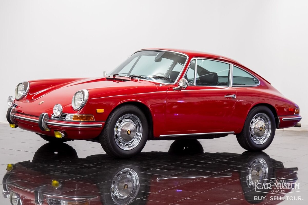 Offered here is a beautifully survived 1968 Porsche 911 Coupe finished in Ruby Red over Black Leatherette interior. It comes fitted with its original numbers matching 2.0L Horizontal 6 cylinder with correct Weber 40IDA carburetion and 5-speed synchromesh transmission to produce 130 horsepower and 128 ft. lbs. of torque at 6,100 rpm! Options and features on this example include headrest seats, dual outside mirrors, 15" chrome ventilated steel wheels with colored wheel crests, Pirelli Cinturato 185/70VR15 radial tires, all tinted Sekurit window glass, yellow Hella fog lamps, driving lights added in the horn grills, front 3-point belts & rear lap belts, carpeted floor mats, passenger vanity mirror, Blaupunkt AM/FM pushbutton radio (presently in-op), and VDO instrumentation.