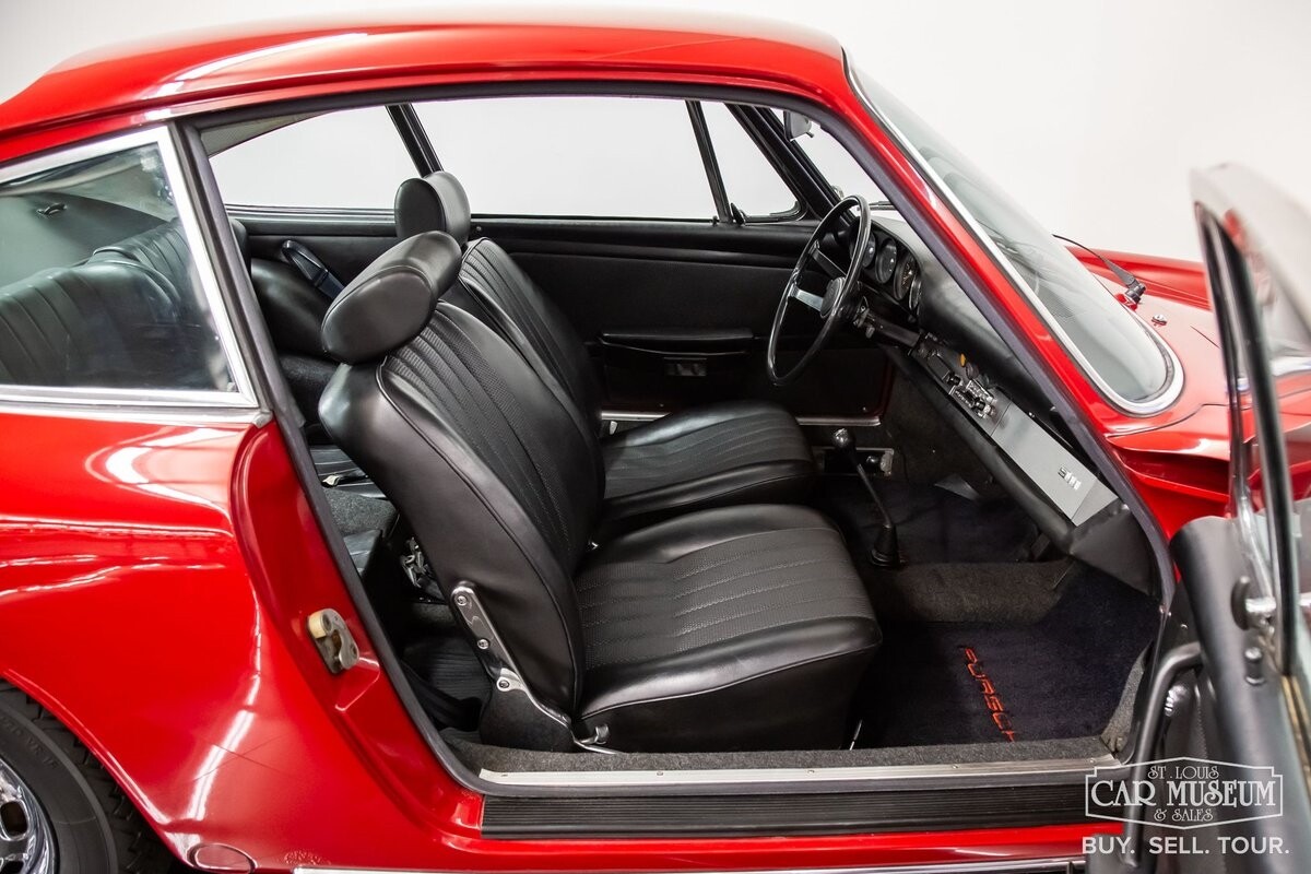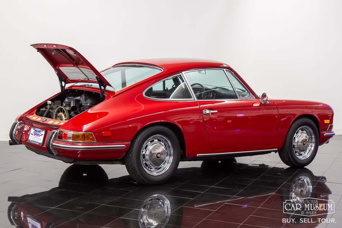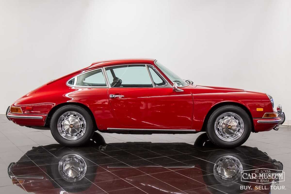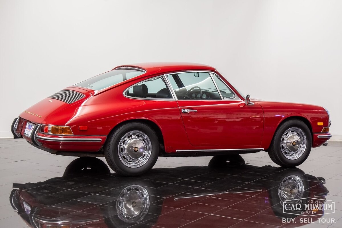 Offered here is a beautifully survived 1968 Porsche 911 Coupe finished in Ruby Red over Black Leatherette interior. It comes fitted with its original numbers matching 2.0L Horizontal 6 cylinder with correct Weber 40IDA carburetion and 5-speed synchromesh transmission to produce 130 horsepower and 128 ft. lbs. of torque at 6,100 rpm! Options and features on this example include headrest seats, dual outside mirrors, 15" chrome ventilated steel wheels with colored wheel crests, Pirelli Cinturato 185/70VR15 radial tires, all tinted Sekurit window glass, yellow Hella fog lamps, driving lights added in the horn grills, front 3-point belts & rear lap belts, carpeted floor mats, passenger vanity mirror, Blaupunkt AM/FM pushbutton radio (presently in-op), and VDO instrumentation.