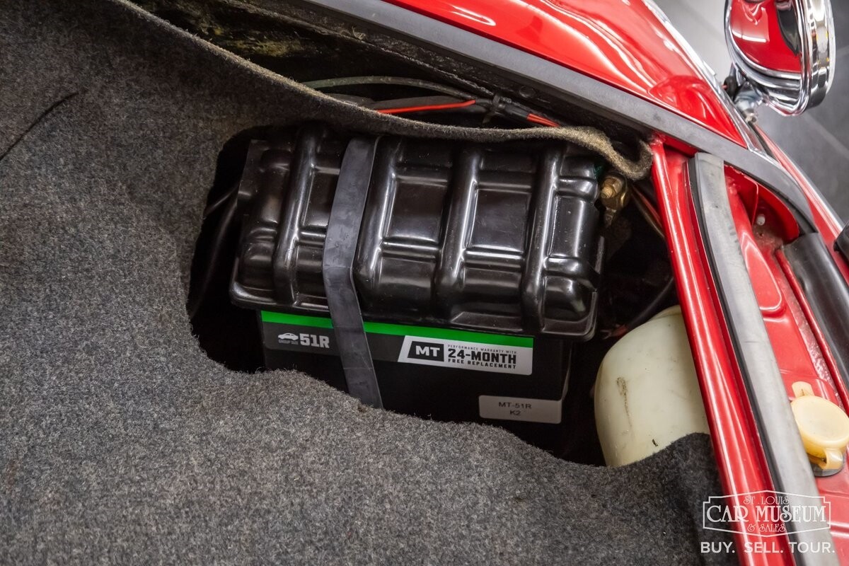 This example was discovered parked in a garage largely unused from a Michigan estate. It has a documented history showing original single ownership from April 1968 until August 1985, then trading hands between two dealers through 1986, then sold to it most recent owner who recently deceased. Said to have been professionally repainted approximately 20-25 years ago from its factory Irish Green to its current shade of Ruby Red, the interior remains 100% original from the headliner to the carpet. The dash, door panels, sun visors, etc. all continue to show extremely well with only the mildest of patina. Sadly, since the owner of the car passed away, much of the history and accuracy of the 43k miles showing on the odometer cannot be verified. It would be serviced to include flushing the gas tank, installing new spark plugs, cleaning and adjusting the carburetors, and new tires installed to be drivable once again.