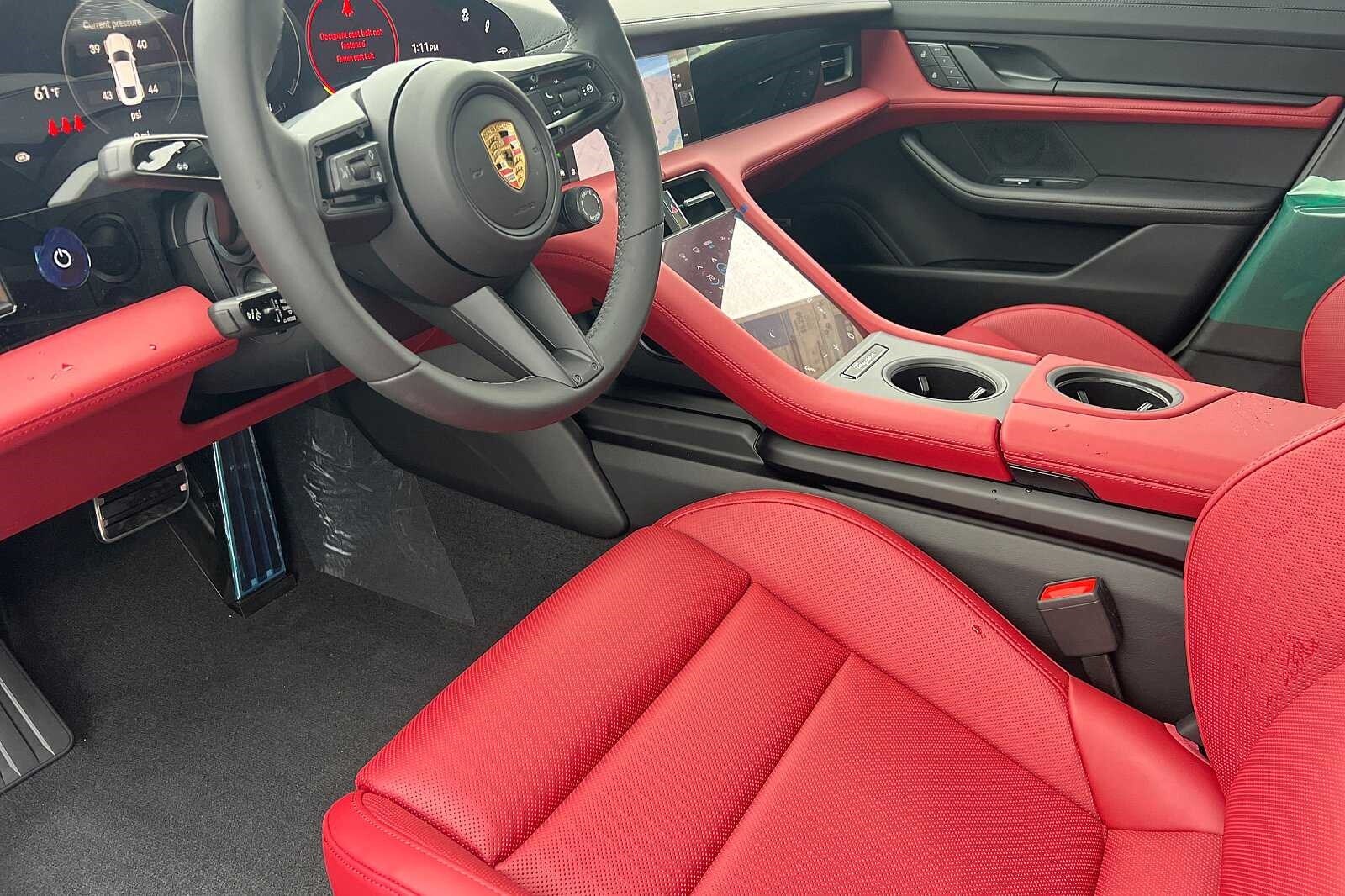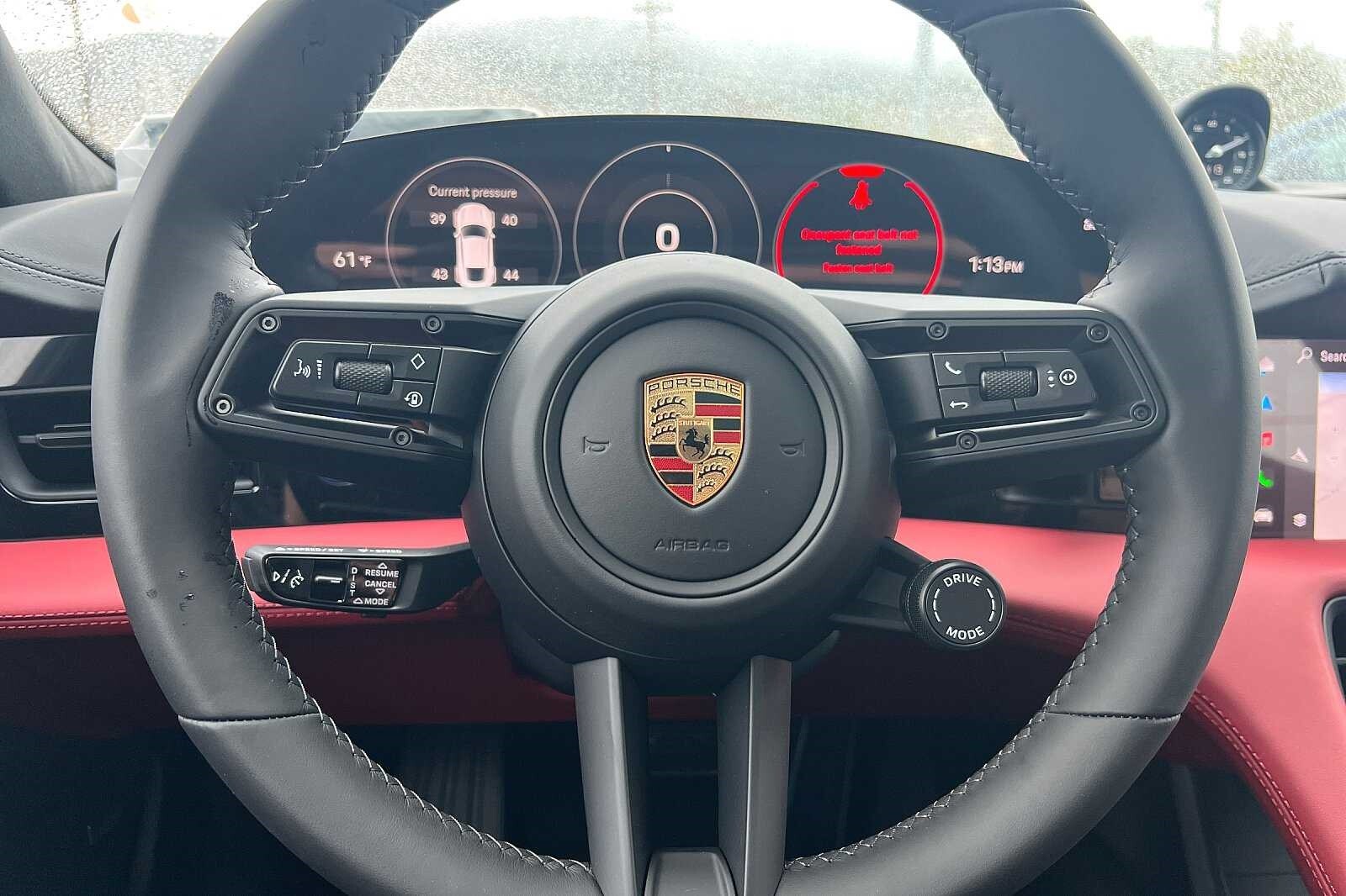 This Porsche San Luis Obispo 2024 White Porsche Taycan GTS AWD is well equipped and includes these features and benefits: Premium Package (P6U) (BOSE Surround Sound System, Fixed Panoramic Roof in Glass, Ionizer, Lane Change Assist (LCA), Power Folding Exterior Mirrors, Surround View, and Thermally & Noise Insulated Glass (VW5)), Storage Package, Porsche Approved Certified Pre-Owned Certified, 19.2 kW On-Board Charger, Mobile Charger Connect, On-Board 150 kW/400V DC Charger, Porsche InnoDrive w/ACC & ALK, Porsche Intelligent Range Manager, Rear 2+1 Seats, Rear Axle Steering, Wheels: 21 RS Spyder Design, 10 Speakers, 18-Way Adaptive Sport Seats Plus w/Comfort Memory, 4-Wheel Disc Brakes, ABS brakes, Adaptive suspension, Air Conditioning, Alloy wheels, Audio memory, Auto High-beam Headlights, Auto tilt-away steering wheel, Auto-dimming door mirrors, Auto-dimming Rear-View mirror, Auto-leveling suspension, Automatic temperature control, Brake assist, Bumpers: body-color, Compass, Delay-off headlights, Driver door bin, Driver vanity mirror, Dual front impact airbags, Dual front side impact airbags, Electronic Stability Control, Exterior Parking Camera Rear, Four wheel independent suspension, Front anti-roll bar, Front Bucket Seats, Front Center Armrest, Front dual zone A/C, Front reading lights, Fully automatic headlights, Garage door transmitter: HomeLink, Heated door mirrors, Heated front seats, Heated steering wheel, HVAC memory, Illuminated entry, Knee airbag, Low tire pressure warning, Memory seat, Navigation system: Porsche Communication Management (PCM), Occupant sensing airbag, Outside temperature display, Overhead airbag, Overhead console, Panic alarm, Passenger door bin, Passenger vanity mirror, Porsche Communication Management, Power door mirrors, Power driver seat, Power passenger seat, Power steering, Power windows, Race-Tex/Leather Seat Trim, Radio data system, Rain sensing wipers, Rear anti-roll bar, Rear fog lights, Rear reading lights, Rear seat center armrest, Rear side impact airbag, Rear window defroster, Remote keyless entry, Security system, Speed control, Speed-sensing steering, Split folding rear seat, Spoiler, Sport steering wheel, Steering wheel memory, Steering wheel mounted audio controls, Telescoping steering wheel, Tilt steering wheel, Traction control, Trip computer, and Variably intermittent wipers. 19.2 kW On-Board Charger, BOSE Surround Sound System, Fixed Panoramic Roof in Glass, Ionizer, Lane Change Assist (LCA), Mobile Charger Connect, On-Board 150 kW/400V DC Charger, Porsche InnoDrive w/ACC & ALK, Porsche Intelligent Range Manager, Power Folding Exterior Mirrors, Premium Package (P6U), Rear 2+1 Seats, Rear Axle Steering, Storage Package, Surround View, Thermally & Noise Insulated Glass (VW5), Wheels: 21 RS Spyder Design.