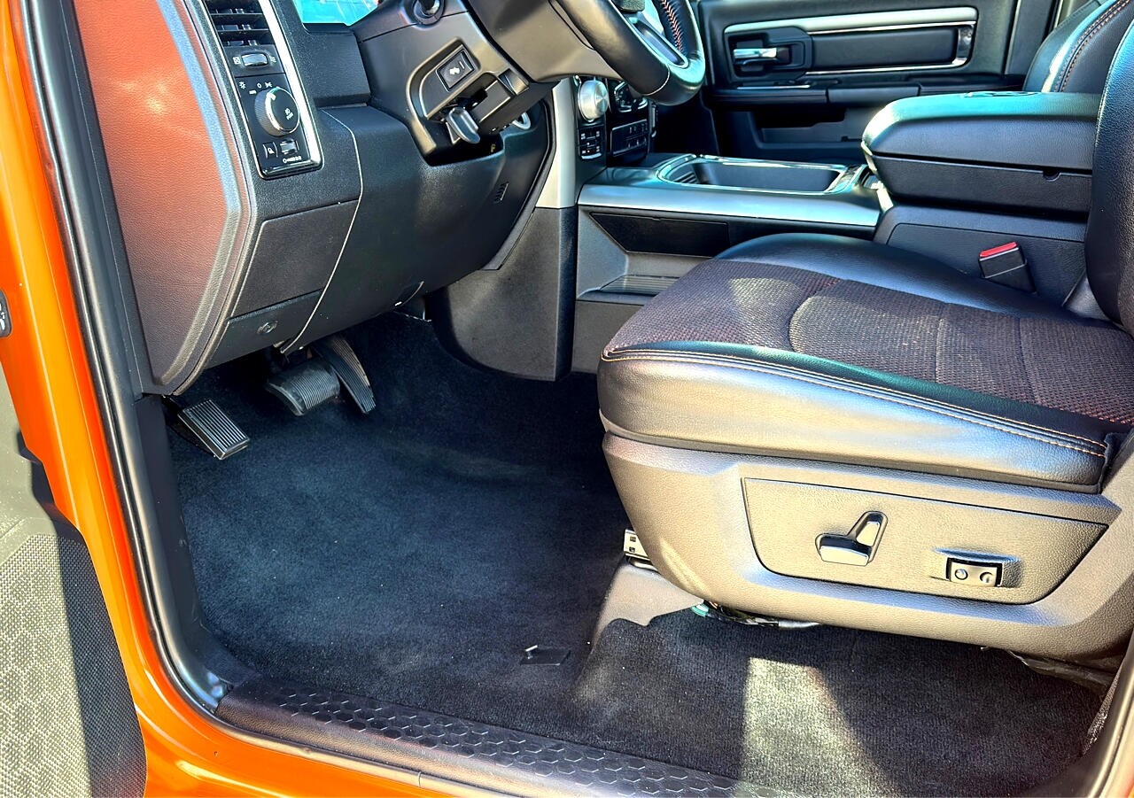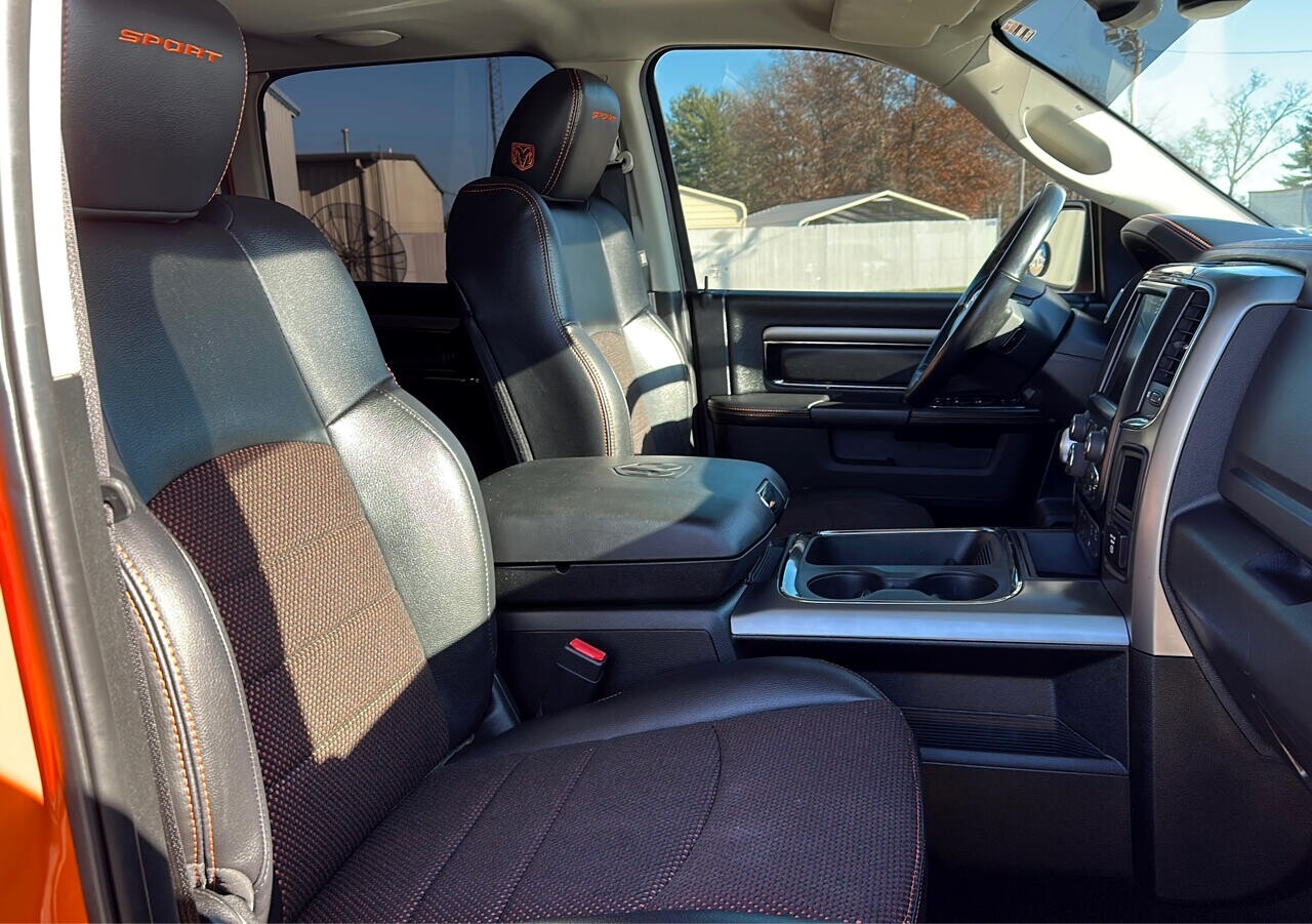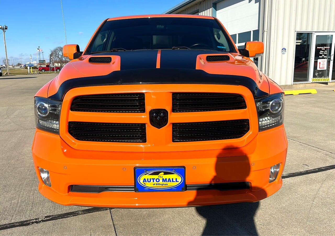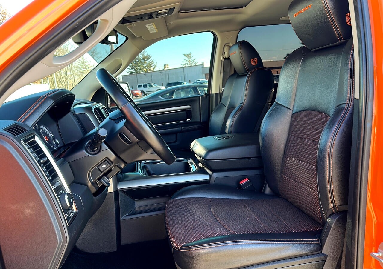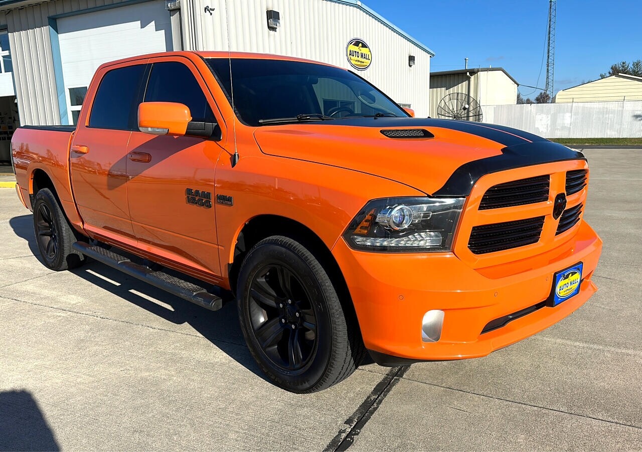 Get ready to turn heads in this vibrant Orange 2017 RAM 1500! This truck is not just for show, it's packed with power and performance. Imagine cruising down the road in the comfort of the leather steering wheel, with the wind in your hair thanks to the deep tinted glass. Plus, you can stay connected and entertained with the 8.4 touchscreen and streaming audio system.With its bold appearance featuring black side windows trim and a body-colored grille, this RAM 1500 demands attention wherever it goes. And don't worry about the details, because a detailed Carfax report is available for your peace of mind.Whether you're hauling cargo or taking a weekend adventure, this truck has you covered with its maximum payload capacity and towing equipment. And with features like cruise control, a rearview camera, and a power rear window, you'll be driving in style and convenience.Options include but are not limited to: Crew cab, Sport, 4X4, 5.7V8 engine, 8 speed automatic, universal garage door opener, remote keyless entry, air conditioning, cruise control, power driver seat, power windows, power locks, power sliding window, tilt steering, cruise control, tilt steering, 8.4 touchscreen, 20 inch wheels, remote start, Orange Sport package, Mopar Sport performance hood decal, Sport performance hood, front heated seats, heated steering wheel, 9 alpine speakers, anti spin differential rear axle, power sunroof, black tubular side steps, Uconnect, GPS navigation, parkview rear back up camera, poweradjustable pedals, Class IV hitch receiver, spray in bedliner and buckle up in the bucket seats, crank up the 6-speaker sound system, and hit the road in this impressive Orange RAM 1500 - the perfect blend of style and substance! WE HAVE FINANCING great rates with our partner Banks and Credit Unions!!! check out or great rates and extended terms to make your next vehicle affordable and within your budget. Please Check out our pre owned HAND PICKED CUSTOM Inventory! with our FREE!!! 4500 MILES OR 90 DAYS LIMITED POWERTRAIN WARRANTY on most vehicles (Ask for details and extended warranties we have availability.) Call us today for a test drive:866-715-1367 or toll free at 1866-715-1367. We carry many Makes/Models including but not limited to: Buick Cadillac Chevrolet Chrysler Dodge Ford GMC Hyundai Honda Jeep Lincoln Mazda Mercury Mitsubishi Nissan Pontiac Saturn Toyota and more!