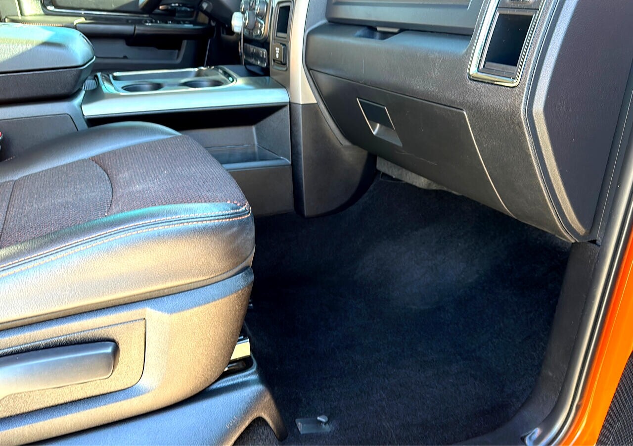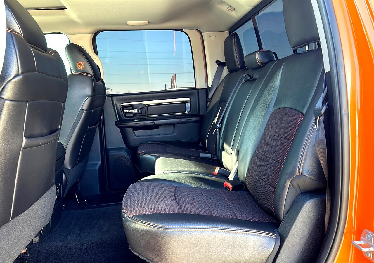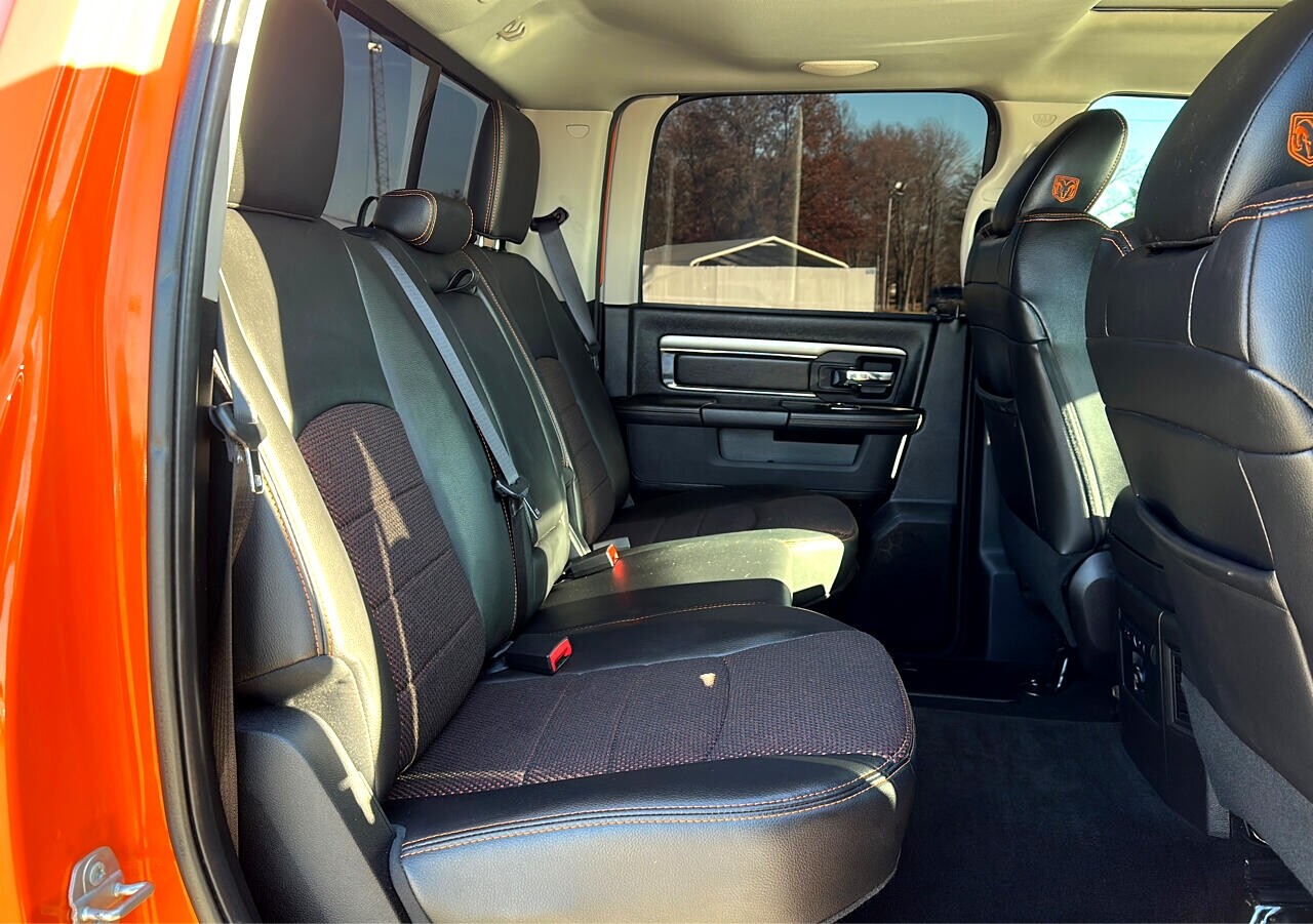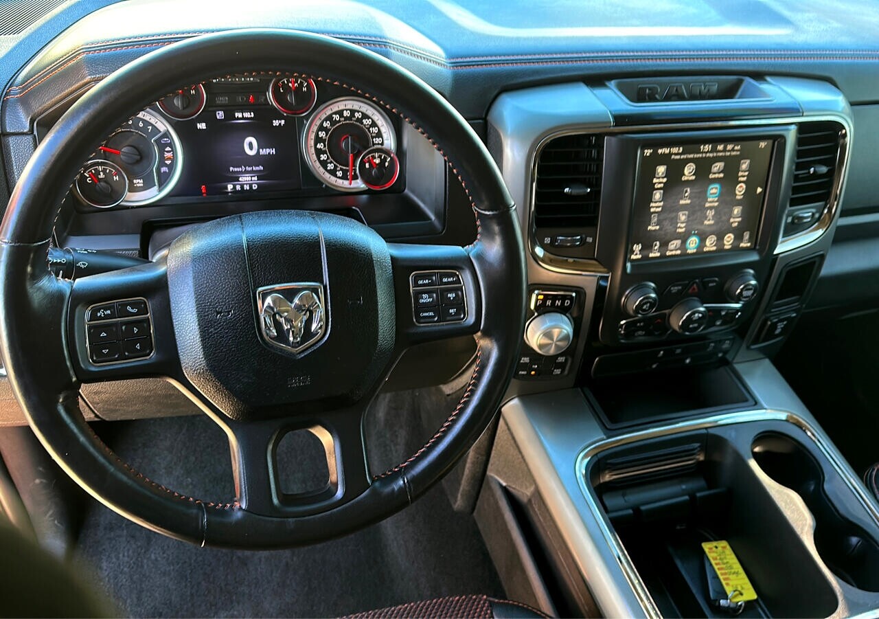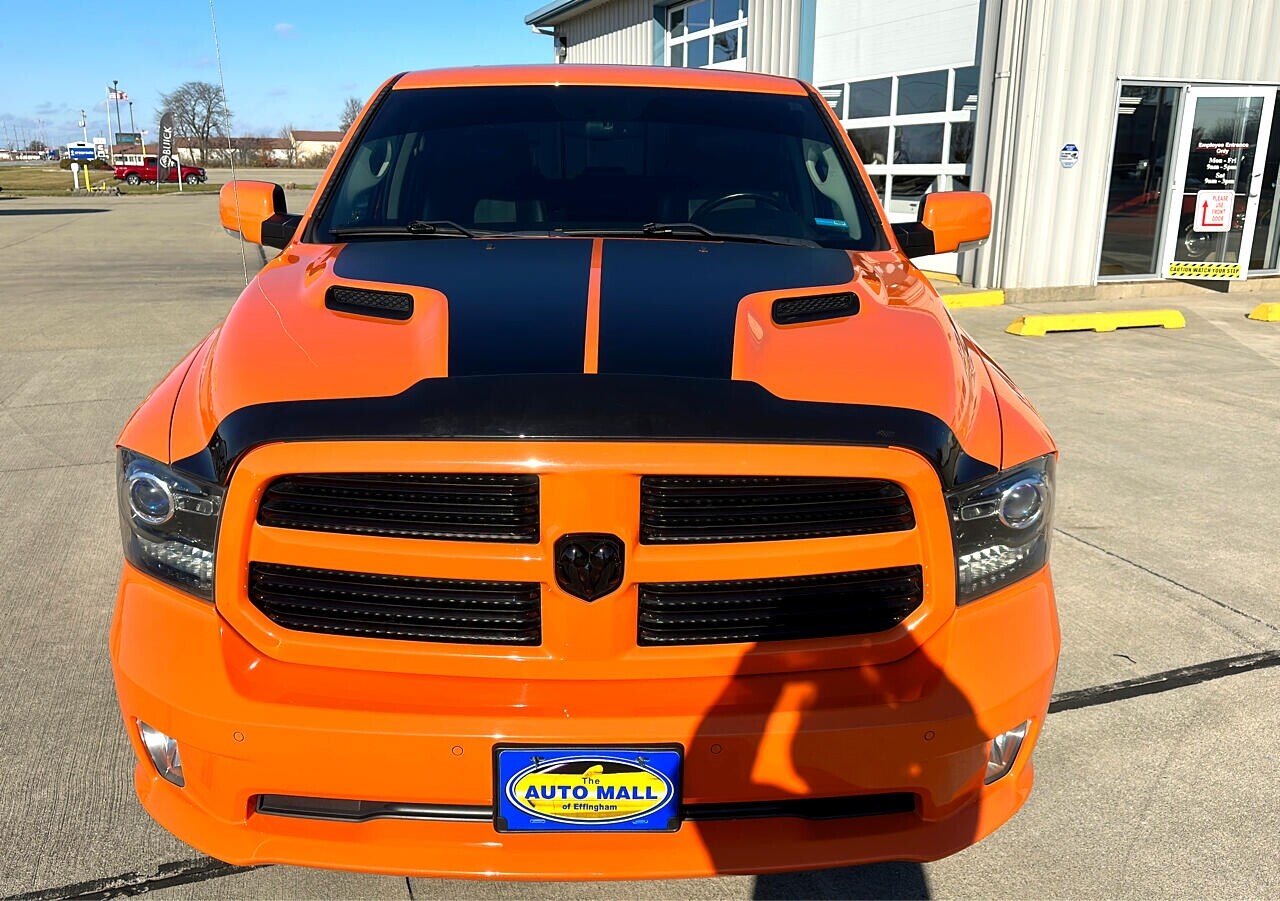 Get ready to turn heads in this vibrant Orange 2017 RAM 1500! This truck is not just for show, it's packed with power and performance. Imagine cruising down the road in the comfort of the leather steering wheel, with the wind in your hair thanks to the deep tinted glass. Plus, you can stay connected and entertained with the 8.4 touchscreen and streaming audio system.With its bold appearance featuring black side windows trim and a body-colored grille, this RAM 1500 demands attention wherever it goes. And don't worry about the details, because a detailed Carfax report is available for your peace of mind.Whether you're hauling cargo or taking a weekend adventure, this truck has you covered with its maximum payload capacity and towing equipment. And with features like cruise control, a rearview camera, and a power rear window, you'll be driving in style and convenience.Options include but are not limited to: Crew cab, Sport, 4X4, 5.7V8 engine, 8 speed automatic, universal garage door opener, remote keyless entry, air conditioning, cruise control, power driver seat, power windows, power locks, power sliding window, tilt steering, cruise control, tilt steering, 8.4 touchscreen, 20 inch wheels, remote start, Orange Sport package, Mopar Sport performance hood decal, Sport performance hood, front heated seats, heated steering wheel, 9 alpine speakers, anti spin differential rear axle, power sunroof, black tubular side steps, Uconnect, GPS navigation, parkview rear back up camera, poweradjustable pedals, Class IV hitch receiver, spray in bedliner and buckle up in the bucket seats, crank up the 6-speaker sound system, and hit the road in this impressive Orange RAM 1500 - the perfect blend of style and substance! WE HAVE FINANCING great rates with our partner Banks and Credit Unions!!! check out or great rates and extended terms to make your next vehicle affordable and within your budget. Please Check out our pre owned HAND PICKED CUSTOM Inventory! with our FREE!!! 4500 MILES OR 90 DAYS LIMITED POWERTRAIN WARRANTY on most vehicles (Ask for details and extended warranties we have availability.) Call us today for a test drive:866-715-1367 or toll free at 1866-715-1367. We carry many Makes/Models including but not limited to: Buick Cadillac Chevrolet Chrysler Dodge Ford GMC Hyundai Honda Jeep Lincoln Mazda Mercury Mitsubishi Nissan Pontiac Saturn Toyota and more!