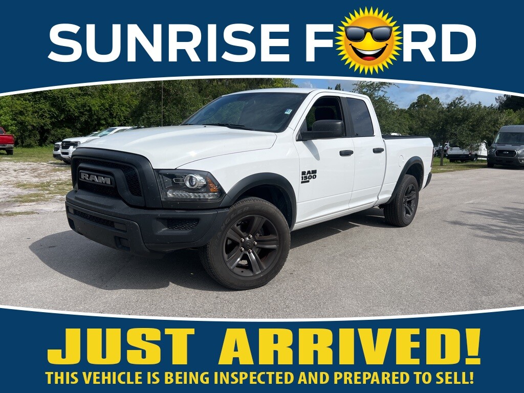 2022 Ram 1500 Classic 4D Quad Cab Bright White Clearcoat 8-Speed Automatic Warlock Clean CARFAX. Recent Arrival! CARFAX One-Owner. Priced below KBB Fair Purchase Price! 4x4 Flat Black Badge, B-Pillar Black Out, Bi-Function Halogen Projector Headlamps, Black Exterior Truck Badging, Black Grille w/RAM Lettering, Black Headlamp Filler Panel, Black Powder Coated Front Bumper, Black Powder Coated Rear Bumper, Black RAM Head Tailgate Badge, Black Wheel Flares, Front Wheel Well Liners, ParkSense Rear Park Assist System, Quick Order Package 29F Warlock, Raised Ride Height, Rear Extra HD Shock Absorbers, Semi-Gloss Black Hub, Sport Tail Lamps, Warlock, Warlock Interior Accents, Wheels: 20 x 9 Semi-Gloss Black Aluminum. 4WD 3.6L V6 24V VVT