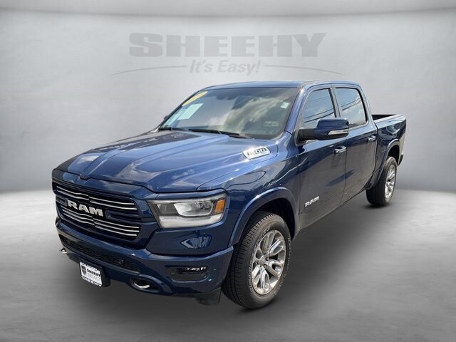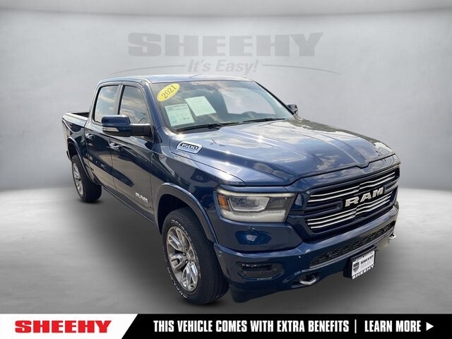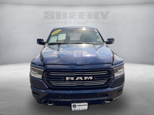 2021 Ram 1500 Laramie 4WD at Sheehy Ford of Springfield! This 1500 has an exterior color of Patriot Blue Pearlcoat with Black Leather interior. This preowned Ram 1500 is equipped with amazing options like: .