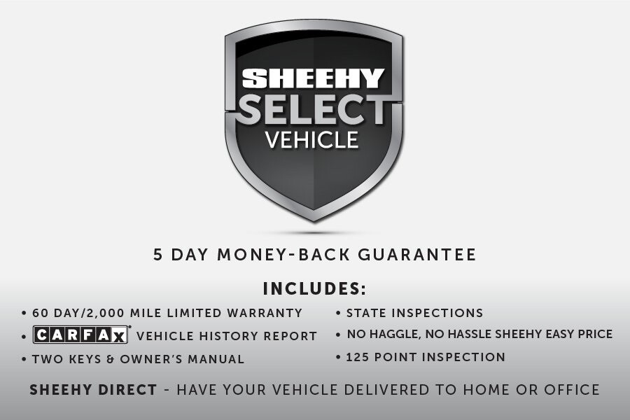 All our Sheehy Select vehicles come with a 125-point quality inspection, 60 day/2,000 mile warranty, 2 keys, an owners manual, a CarFax vehicle history report, upfront clear Sheehy-Its Easy Pricing and a 5 day/300 mile money back guarantee! And all our Vehicles pass both MD and VA state inspections, backed by a company that has been serving the Mid-Atlantic area for 50 plus years-so you know youre getting an excellent quality vehicle!