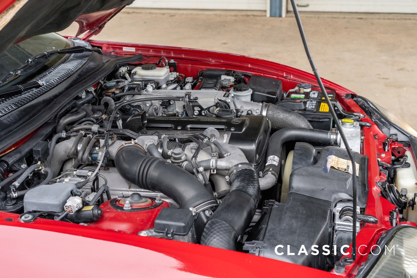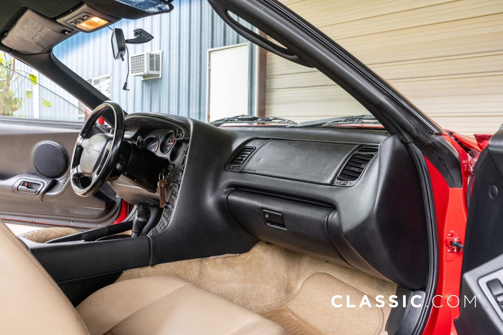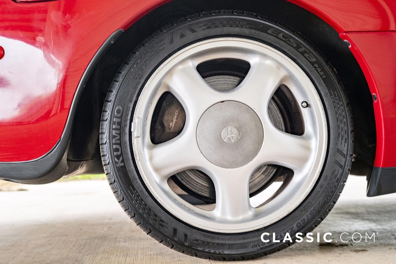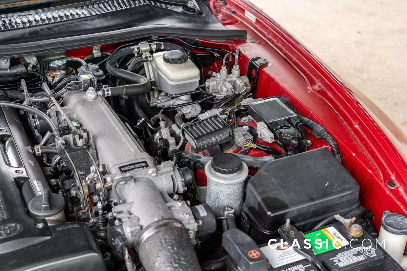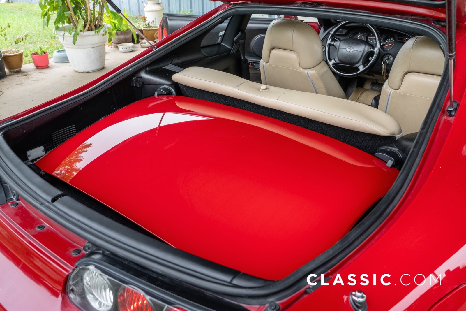 This Japanese automotive legend, a 1995 Toyota Supra is an excellent example of the modern classic that continues to gather appreciation for its power and classic looks. This vehicle shows well in its deep shade of Renaissance Red paint over the beige leather interior and targa-style removable roof panel. The Japanese sports coupe is ready to cross continents.