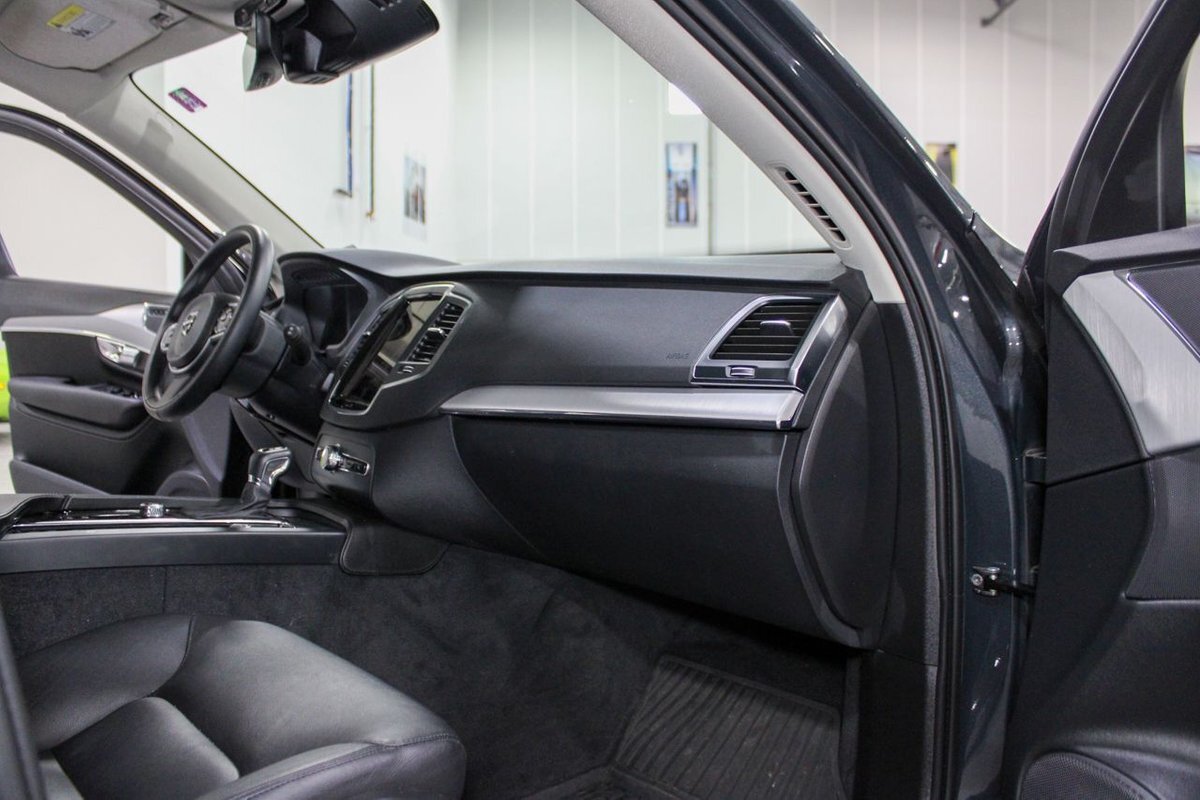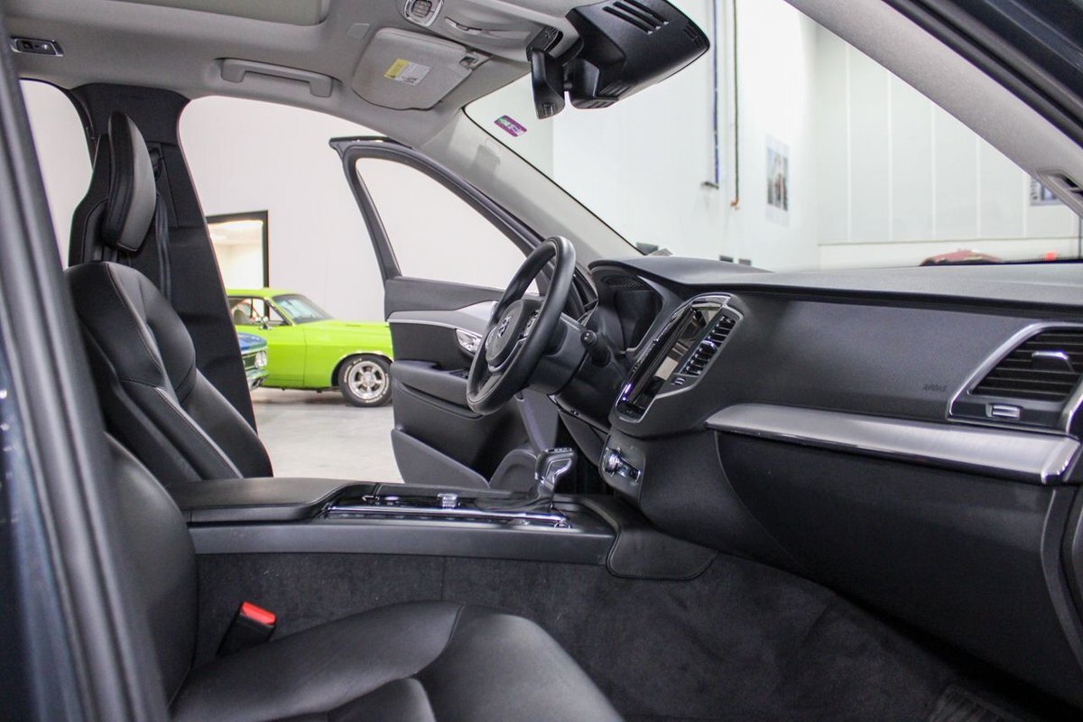 Under the hood, the XC90 T5 Momentum is powered by a 2.0-liter turbocharged engine, delivering a robust 250 horsepower and 258 lb-ft of torque. This ensures responsive acceleration and smooth performance, whether you're navigating city streets or cruising on the highway. The eight-speed automatic transmission provides seamless gear shifts, enhancing both efficiency and driving pleasure. Additionally, the all-wheel-drive system offers enhanced traction and stability, making this SUV capable in various driving conditions.