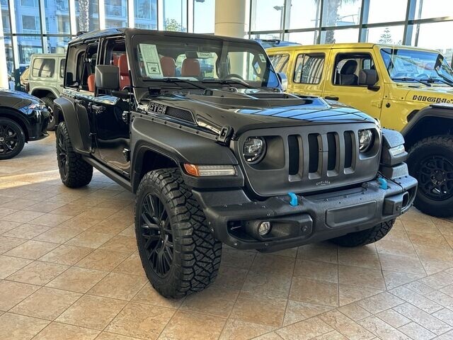 Kahn presents the Bodyguard Body kit for the 4 door Jeep Wrangler JL Features Front wide wings with integrated bolts Rear wide wings that just covers the Kahn Design JL wheels Designed to accommodate the original Jeep wheel center cap and Chelsea Truck Company hard spare wheel cover with a nylon sleeve. This wheel cover can be painted in a range of colors This iconic 4 Slot Carbon Grille for Jeep Wrangler JL Is the Signature Style of the Chelsea Truck Company. This Styling Upgrade and addition of an Iron Man Front Bumper gives the Jeep Wrangler JL a more dynamic, aggressive look. This tasteful accessory is a subtle reminder of the caliber of your vehicle The One Touch top with removable side windows and factory half doors will allow the world to see the Lightweight Vegan Leather Heritage Seats and transforms the Wrangler's interior, providing a more comfortable and refined driving experience. Optional contrast...2.0L I4 DOHC, ABS brakes, Compass, Electronic Stability Control, Front dual zone A/C, Heated door mirrors, illuminated entry, Low tire pressure warning, ParkView Rear Back-Up Camera, Passenger door bin, Remote keyless entry, Traction control. Black Clearcoat 2023 Jeep Wrangler Willys 4xe 4WD 8-Speed Automatic 2.0L I4 DOHC