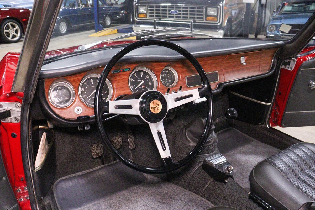 Just out of a private collection, GR Auto Gallery is excited to offer this 1967 Alfa Romeo Giulia Sprint GT Veloce for consideration. This Alfa Romeo is a 2 owner vehicle with the original owner possessing the car until 2010 to where it was acquired by its current owner. The car is powered by its dual overhead cam 1600 4 cylinder engine, fed with dual carbs, 5 speed manual transmission and rear wheel drive. It is presented in Alfa Red over grey interior. The car retains its original structure and has received some selective restorations to include paint and interior carpet and upholstery. Mechanically, the car has recently been treated to over $12000.00 dollars of refurbishment services by an Alfa specialist to include full brake system rebuild, full cylinder head rebuild, both carbs fully rebuilt, full ignition tune up, all new fluids, gaskets and linkage adjustments as required. As a result, this Giulia Sprint GT is mechanically dialed in and drives fantastic.