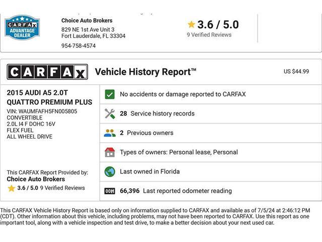 Carfax shows that this low mileage A5 has had no accidents and there are 28 service records listed, so you know that this Audi has been well cared for.