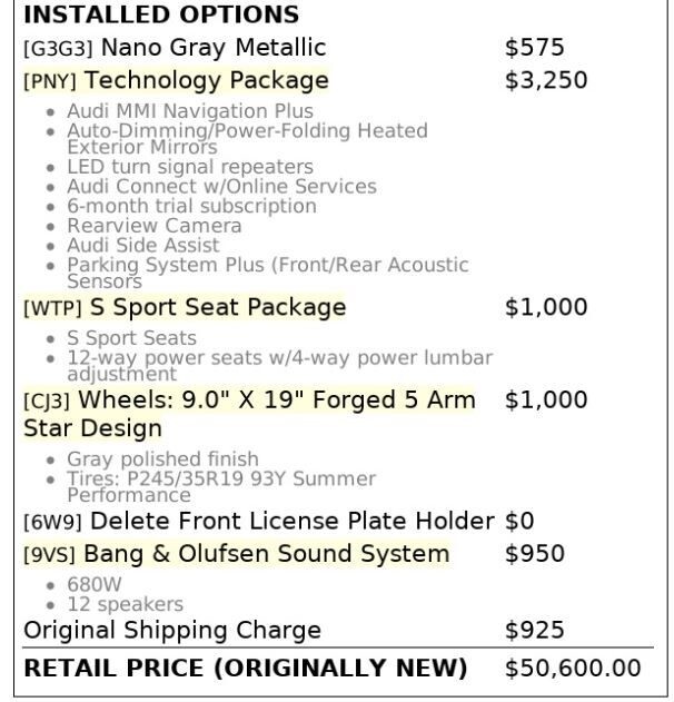 Please contact our sales representive here at Auto By Design for special pricings and options for your next car. (888) 996-6670