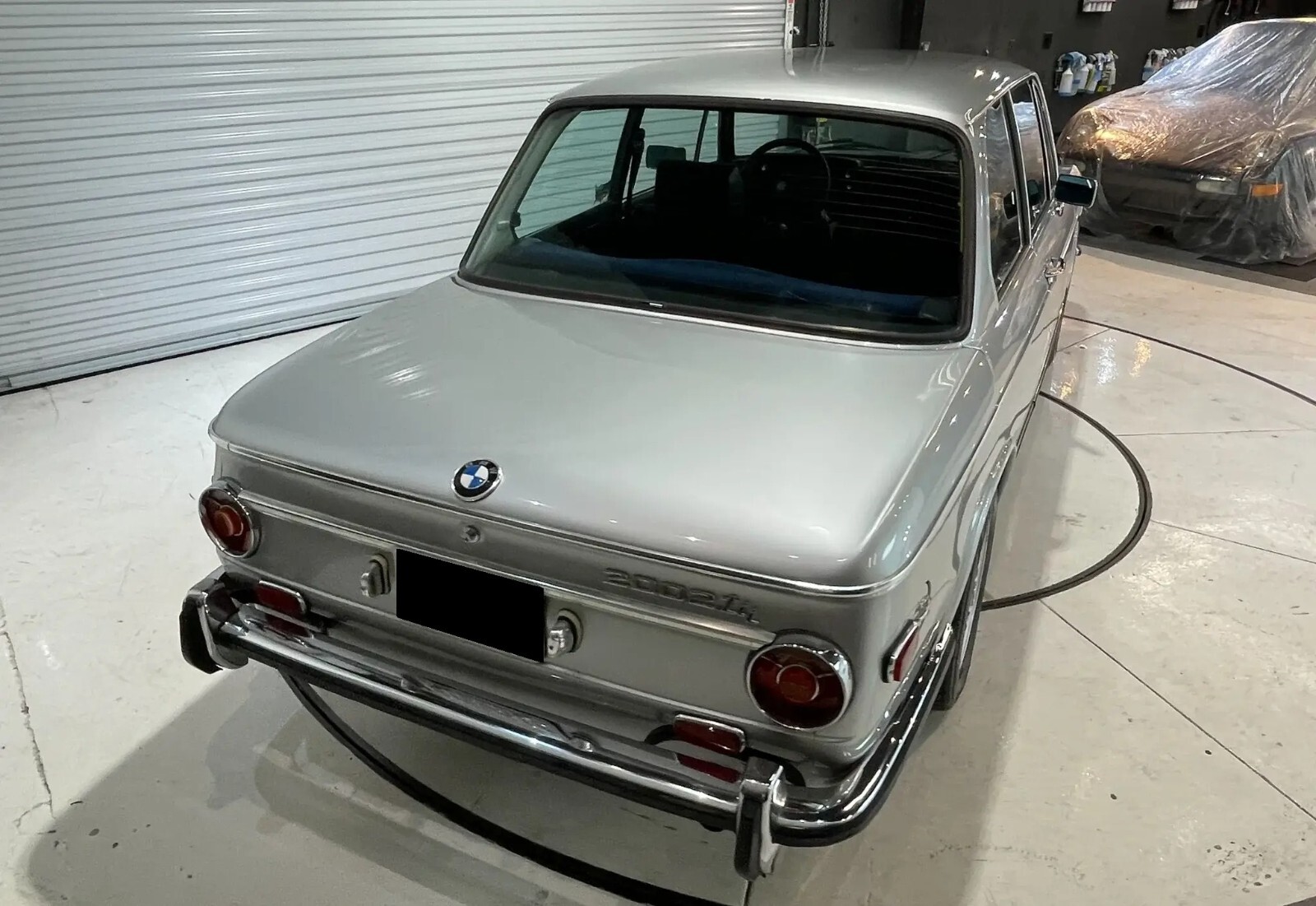 This 1973 BMW 2002tii, a classic known for its Kugelfischer mechanical fuel injection, is finished in New Polaris Metallic with a navy-blue cloth and black vinyl interior. This model is celebrated for its performance and reliability, making it a sought-after collector's item. It features a rebuilt engine, refreshed fuel system, and a factory-color repaint. The car retains its original New Polaris Metallic finish, complemented by front-mounted driving lights, dual polished flag-style mirrors, round taillights, a single polished exhaust outlet, and chrome accents on the grille, window surrounds, and bumpers with over-riders. The 14” E30 “bottlecap” wheels are fitted with Falken Azenis tires, enhancing its classic look. Inside, the car features black vinyl on the dashboard, center console, seat bolsters, and upper door panels, with blue patterned cloth seat centers and matching vinyl door panel inserts. It comes equipped with a heater, rear window defroster, manual front windows, a leather-wrapped three-spoke steering wheel, pop-out rear windows, and a glove box. All gauges and accessories are reported to be fully functional. Under the hood, the 2002tii is powered by a fuel-injected 2.0L M10 inline-four engine, delivering 130 HP and 131 lb-ft of torque through a 4-speed manual gearbox. The engine has been completely rebuilt with new hoses, belts, a thermostat, and a water pump. The fuel system, including injectors and fuel tank, has been inspected and cleaned.Send me a text message for walk around video 6ONETWO7569830.