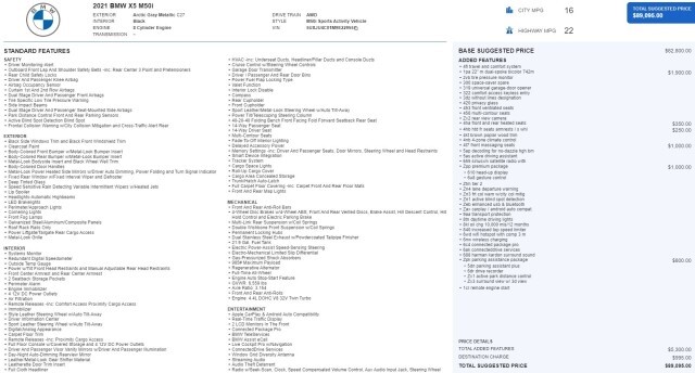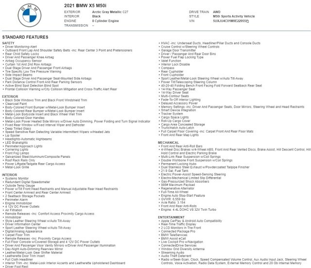 $89,095 ORIGINAL MSRP!! BMW X5 M50i PREMIUM PACKAGE!! 523 HORSEPOWER!! 1-OWNER!! NAVIGATION, HEADS-UP DISPLAY WITH GESTURE CONTROL, PARKING ASSISTANCE PACKAGE, PARK DISTANCE CONTROL WITH SURROUND & 3D VIEW, REMOTE START, HEATED & COOLED FRONT WITH HEATED ARM RESTS, HEATED STEERING WHEEL WITH PADDLE SHIFTERS, MASSAGING MULTI-CONTOUR FRONT SEATS, 22 M-DUAL SPOKE GLOSS BLACK WHEELS, COMFORT ACCESS WITH PUSH BUTTON START, LANE DEPARTURE WARNING, ACTIVE BLIND SPOT WARNING, FRONT COLLISION WARNING, ACTIVE DRIVING ASSISTANT, APPLE CARPLAY & ANDROID AUTO, HARMAN/KARDON AUDIO, WIRELESS CHARGING PAD, PANORAMIC SUNROOF, EXCELLENT DEALER SERVICE HISTORY!! SPARK PLUGS JUST REPLACED @ 43K MILES!! This vehicle will be reviewed by an independent certified mechanic in accordance with PA state inspection regulations. If for any reason this vehicle does not pass inspection it will be noted. !!PLEASE CONTACT OUR SALES TEAM AT 877-864-0274 WITH ANY QUESTIONS!! We are pleased to show you another great opportunity! Sky Motor Cars is in the wholesale business and that represents the majority of what we do. When we have a vehicle this nice we present it to the public. Our turn time is quick and depending on auction schedules we may end listings early and take the vehicle to a dealer-only auction. Do not hesitate if you are interested! We have supplied many detailed photos to give you an accurate sense of just how nice this one is! !!THE BALANCE OF THE FACTORY WARRANTY APPLIES!! !!A VARIETY OF EXTENDED WARRANTY OPTIONS ARE AVAILABLE!! !!NATIONWIDE SHIPPING & FINANCING ARE AVAILABLE!! This is a previously enjoyed vehicle so there MAY be a few light scratches and small chips around the vehicle. Please study the photos provided. Anything unusual or significant will be shown in the pictures. PLEASE NOTE THAT UNLESS SPECIFIED OUR VEHICLES ARE NOT MATTE-FINISHED. THE PICTURES OFTEN SHOW THE REFLECTION OF OUR PHOTO BOOTH CURTAINS IN SHINY PAINT AND THAT CAN MAKE THE FINISH APPEAR DULL. Also, note there are many shadows cast on the vehicle due to the conditions in which the photos were taken. If you are unclear of anything please contact us PRIOR to purchasing!