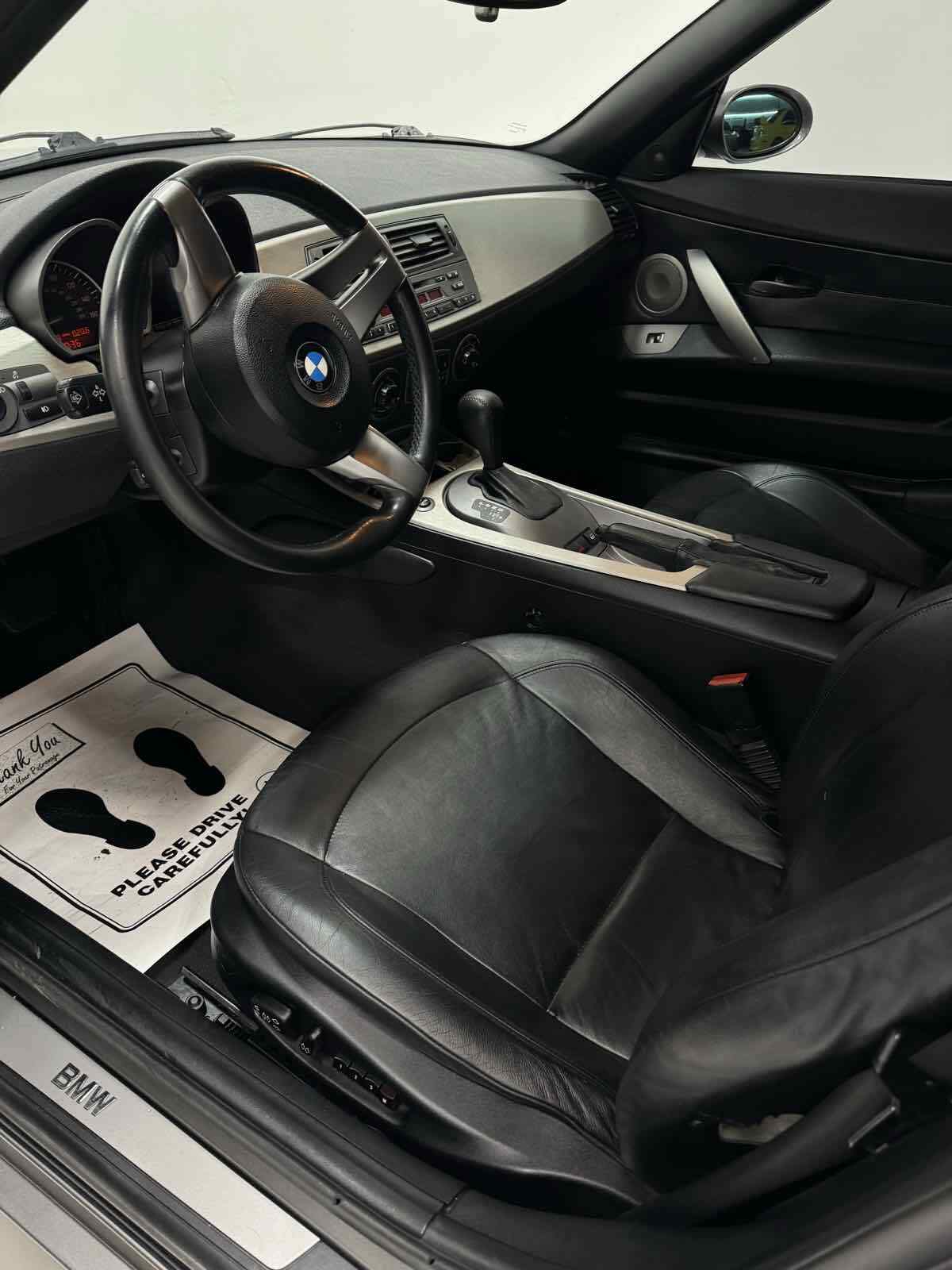Our great-looking Accident Free 2003 BMW Z4 2.5i Roadster in Sterling Gray Metallic! Powered by a 2.5 Liter 6 Cylinder producing 184hp while paired with a responsive 5 Speed Automatic transmission. This Rear Wheel Drive will give you nearly 28mpg on the highway. It's beautifully balanced with speed-sensitive steering and multi-link rear suspension. Just drop the top on this Z4 - crank up the premium audio - and enjoy the life-affirming ride! It provides 4 seasons of fun with its insulated canvas top with a glass rear window. Gorgeous inside and out with sculpted curves and plentiful amenities such as a leather steering wheel - keyless entry - heated front seats - rain-sensing wipers - and more - it is truly made to please. Drive confidently in this BMW with airbags - rollover protection bars - adaptive brake lights - and stability/traction control. For pure driving enjoyment with the benefit of a drop-top - it doesn't get much better than this Z4. Save this Page and Call for Availability. We Know You Will Enjoy Your Test Drive Towards Ownership!