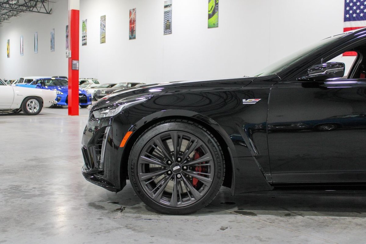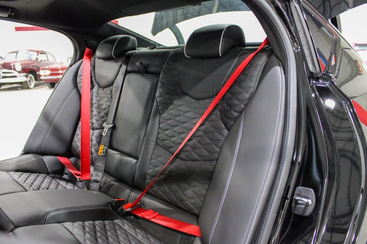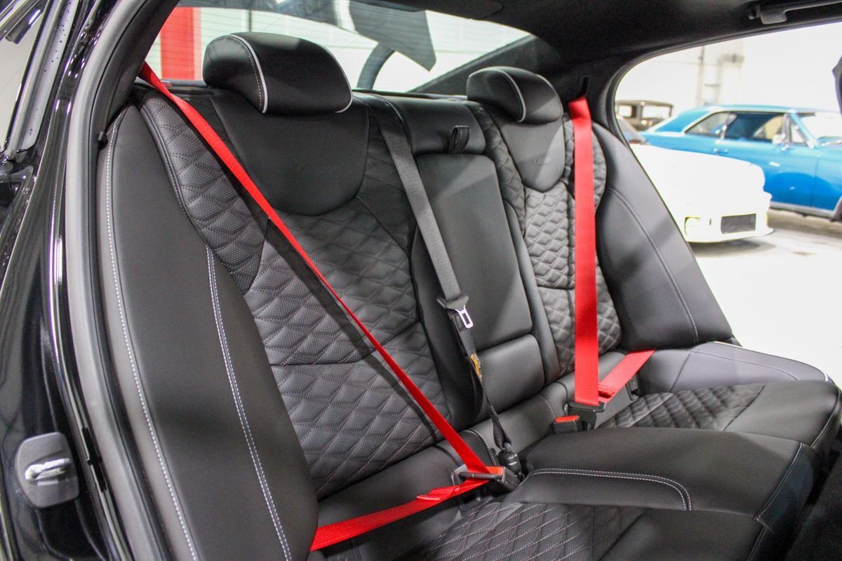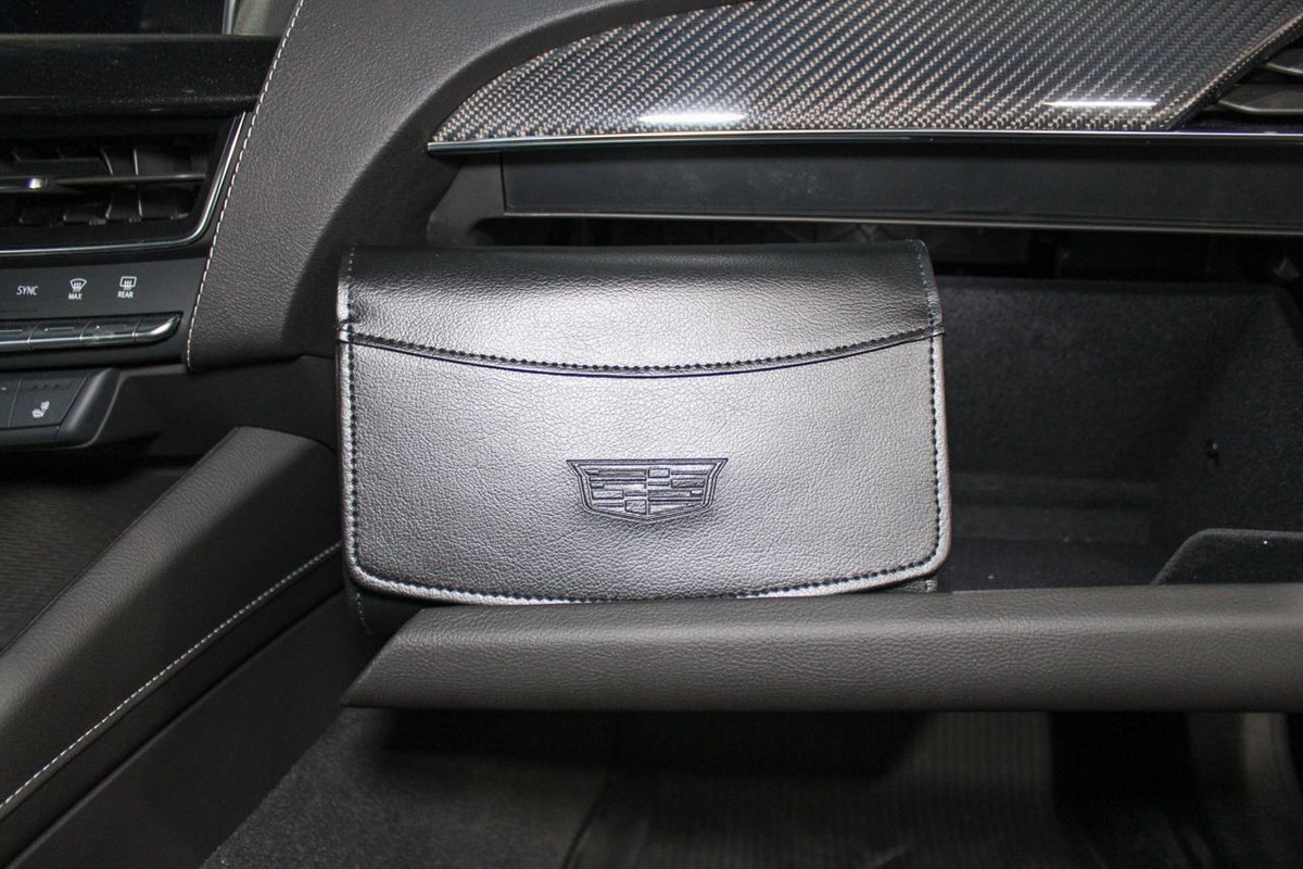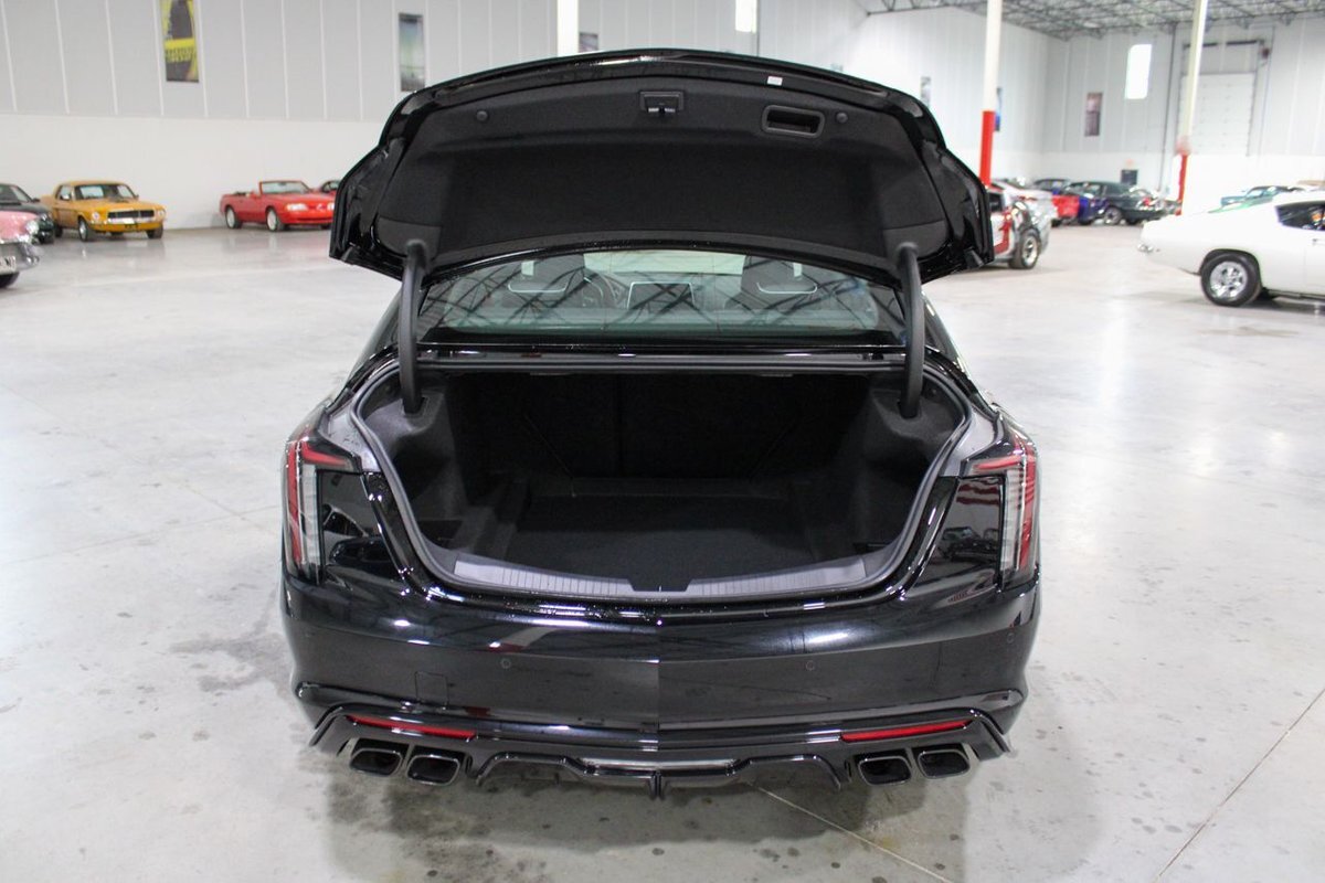Adding to its aesthetic appeal are the 19-inch alloy wheels with satin graphite dark finishes, perfectly complementing the Jet Black exterior. The red brake calipers not only enhance the performance but also provide a striking visual contrast, hinting at the car's formidable stopping power. Inside, the CT5-V Blackwing offers a luxurious and driver-focused cockpit. Premium materials, including leather and carbon fiber accents, create a sophisticated ambiance. The high-performance front seats are both heated and ventilated, providing maximum comfort and support during spirited drives. The torch red seat belts add a splash of bold color to the interior, emphasizing the car's sporty character.