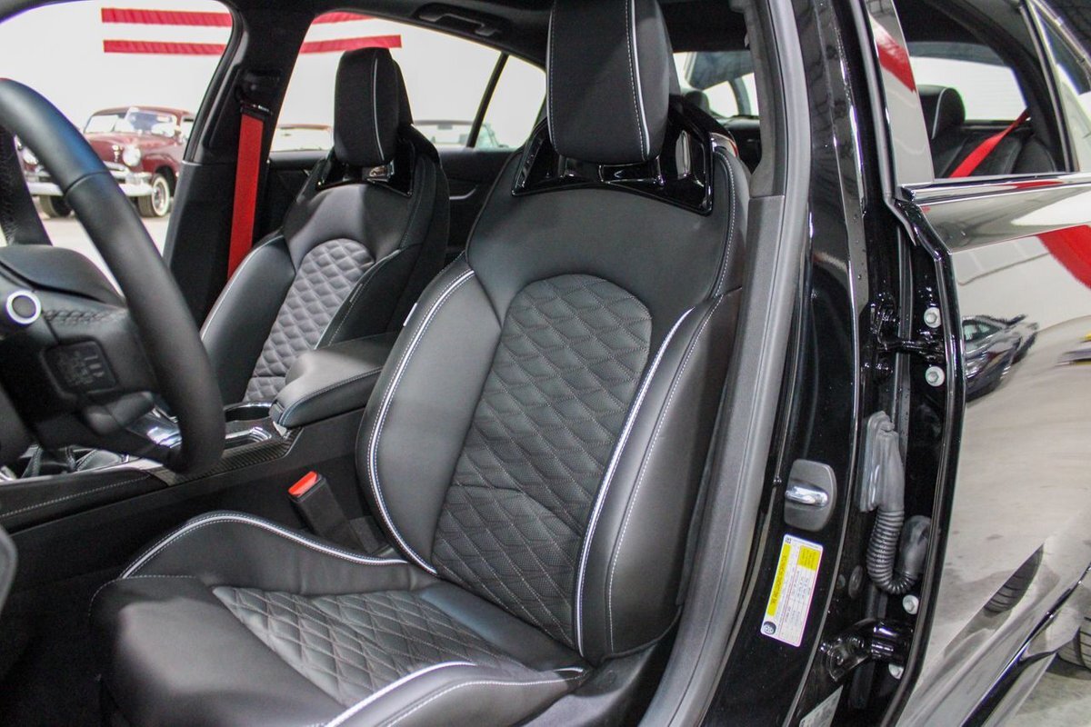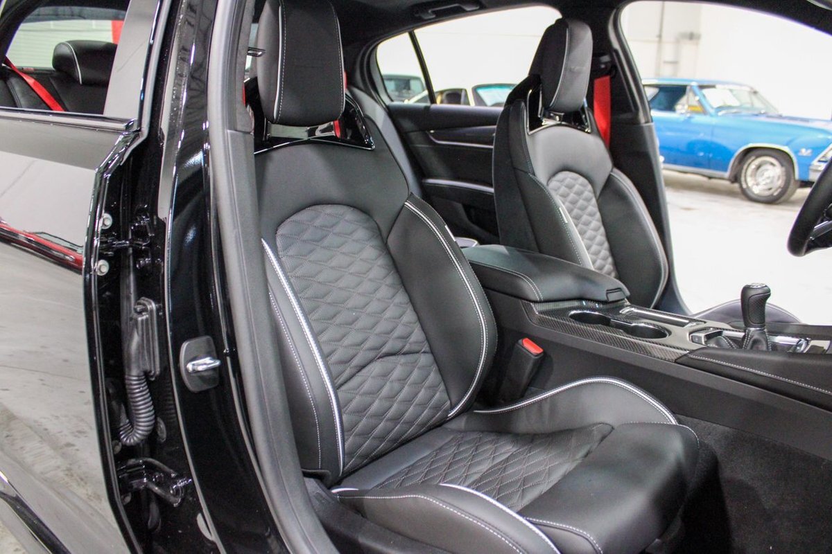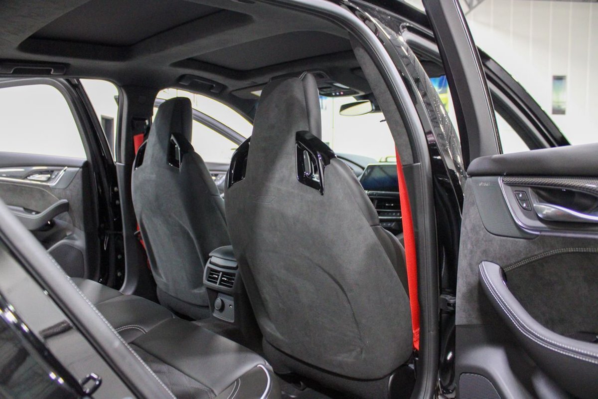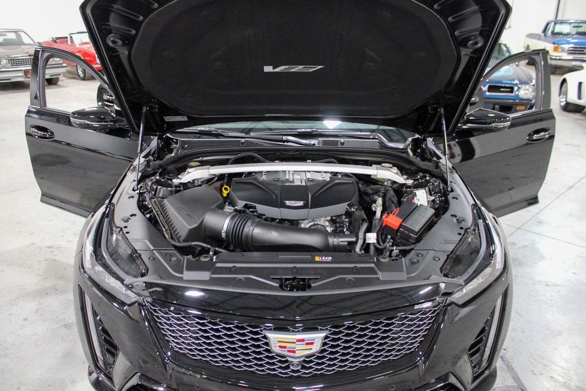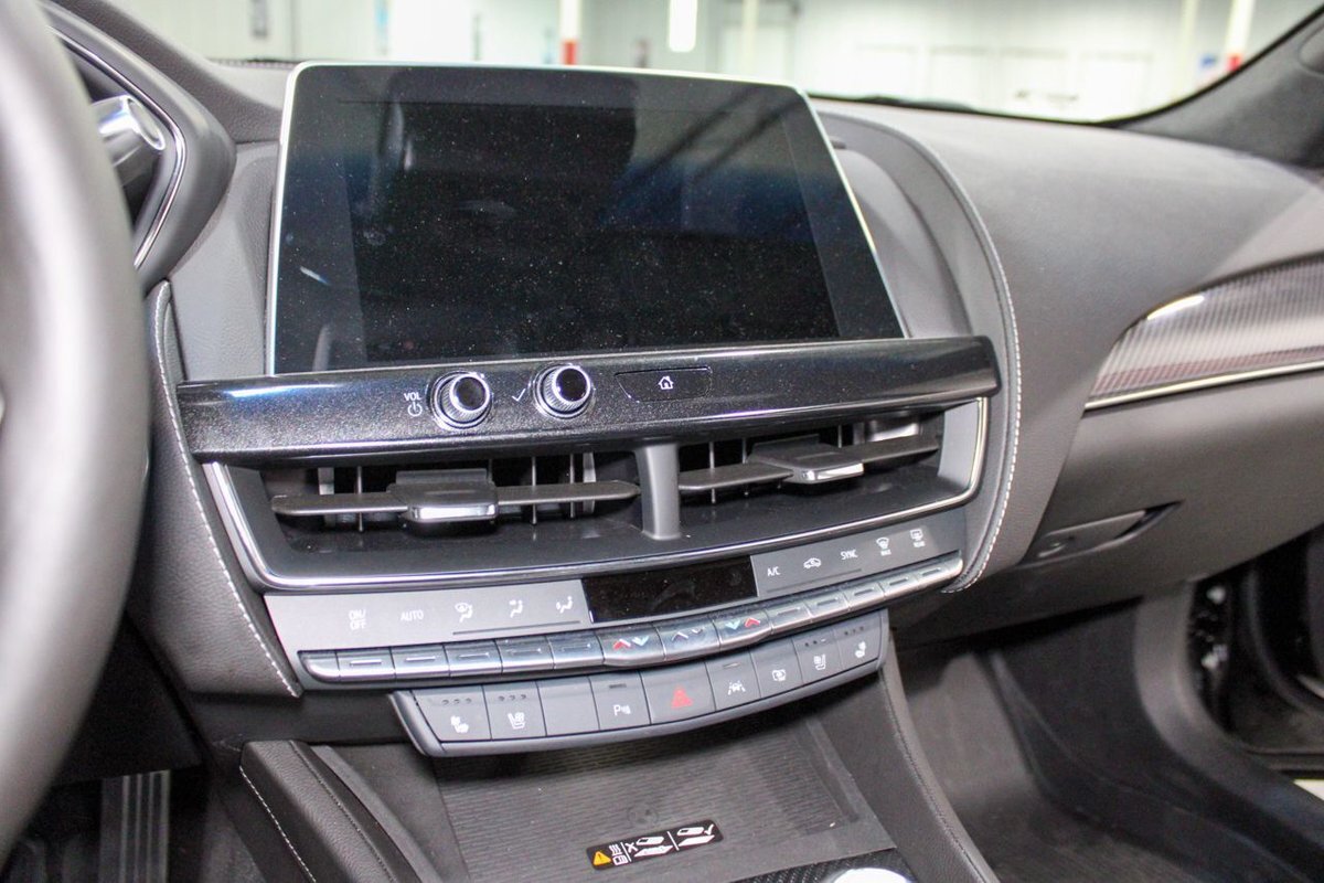 Adding to its aesthetic appeal are the 19-inch alloy wheels with satin graphite dark finishes, perfectly complementing the Jet Black exterior. The red brake calipers not only enhance the performance but also provide a striking visual contrast, hinting at the car's formidable stopping power. Inside, the CT5-V Blackwing offers a luxurious and driver-focused cockpit. Premium materials, including leather and carbon fiber accents, create a sophisticated ambiance. The high-performance front seats are both heated and ventilated, providing maximum comfort and support during spirited drives. The torch red seat belts add a splash of bold color to the interior, emphasizing the car's sporty character.