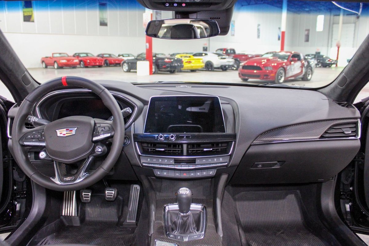 The 12-inch HD customizable driver cluster and 10-inch touchscreen infotainment system with Apple CarPlay and Android Auto keep you connected and entertained. Safety and technology are at the forefront of the CT5-V Blackwing's design. It comes equipped with a comprehensive suite of advanced safety features, including Forward Collision Alert, Lane Keep Assist with Lane Departure Warning, and a Rear Camera Mirror. The available Super Cruise hands-free driver assistance feature adds an extra layer of convenience and peace of mind on long journeys.