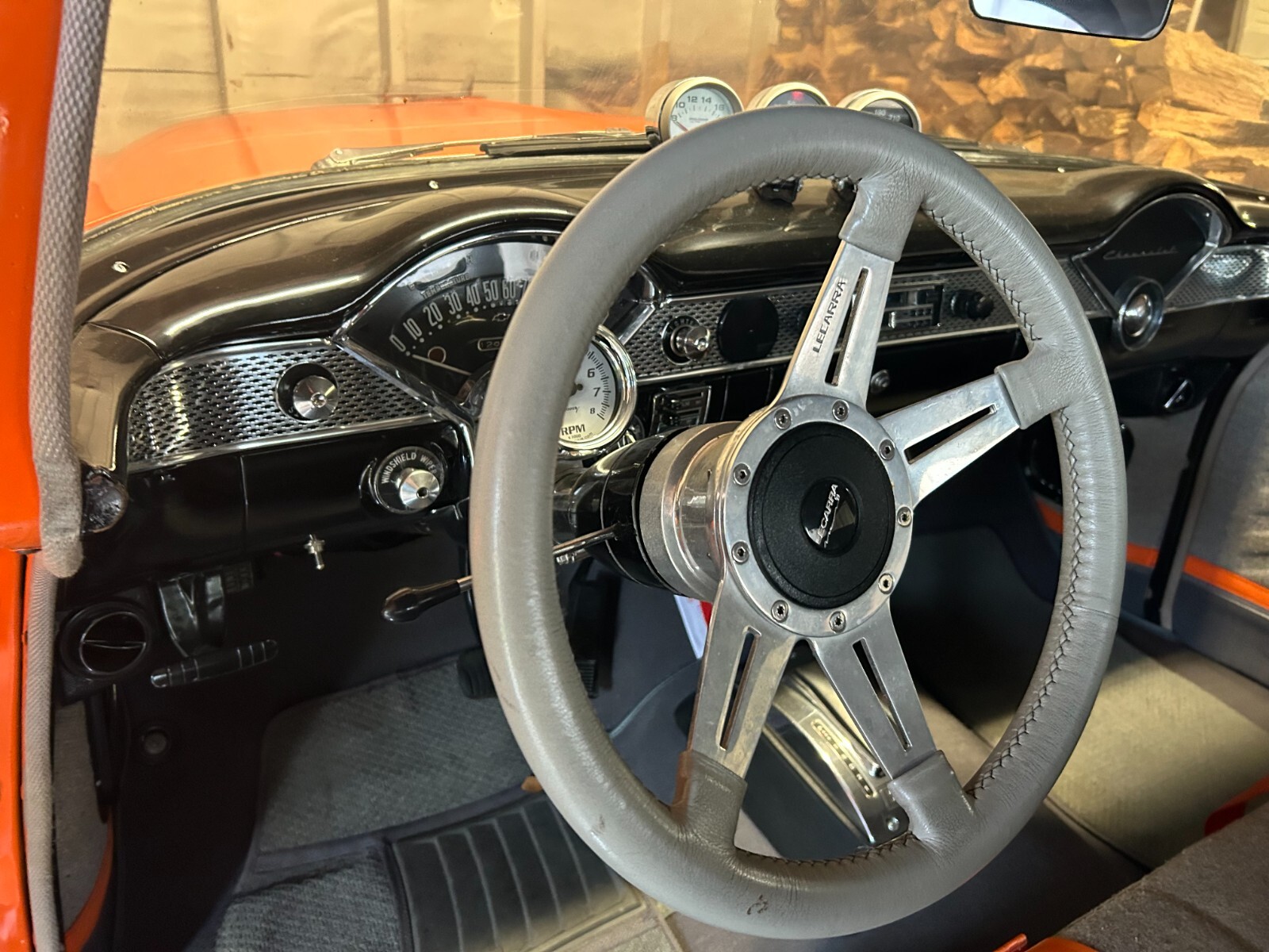 One very nice 1955 Chopped Top Chevy! This car is recently done in Orange and Gray two-tone paint and is a great drivers car! Done with a newly rebuilt 383 stroker motor with a sniper fuel injection setup. Car comes with AC, power steering and a chrome serpentine belt set up to make driving easy and fun! Motor has a hydraulic roller cam for great power when you decide to step on it! it shifts through a turbo 350 transmission with a boss hog 2800 torque converter. This car has brand new wheels and tires (less than 100 miles on them) with 20x10's in the back with a 3" offset for that real deep dish look as well as 18x8's in the front. Car is beautiful inside and out and fun to take on any type of cruise getting all the attention you can handle. Please ask any and all question you would like, I'd love to see this car go to a good home for someone to enjoy it as much as I have. Only reason I'm selling it is to fund my next project as I own a Hot Rod shop down on the gulf coast. If you would like to look us up feel free. KC's Garage and Hot Rod Shop in Mobile Alabama we are on facebook as well.